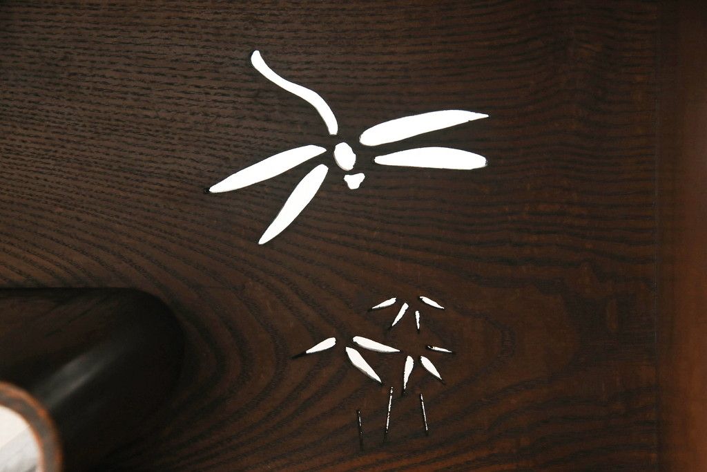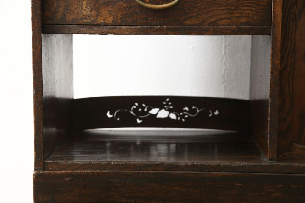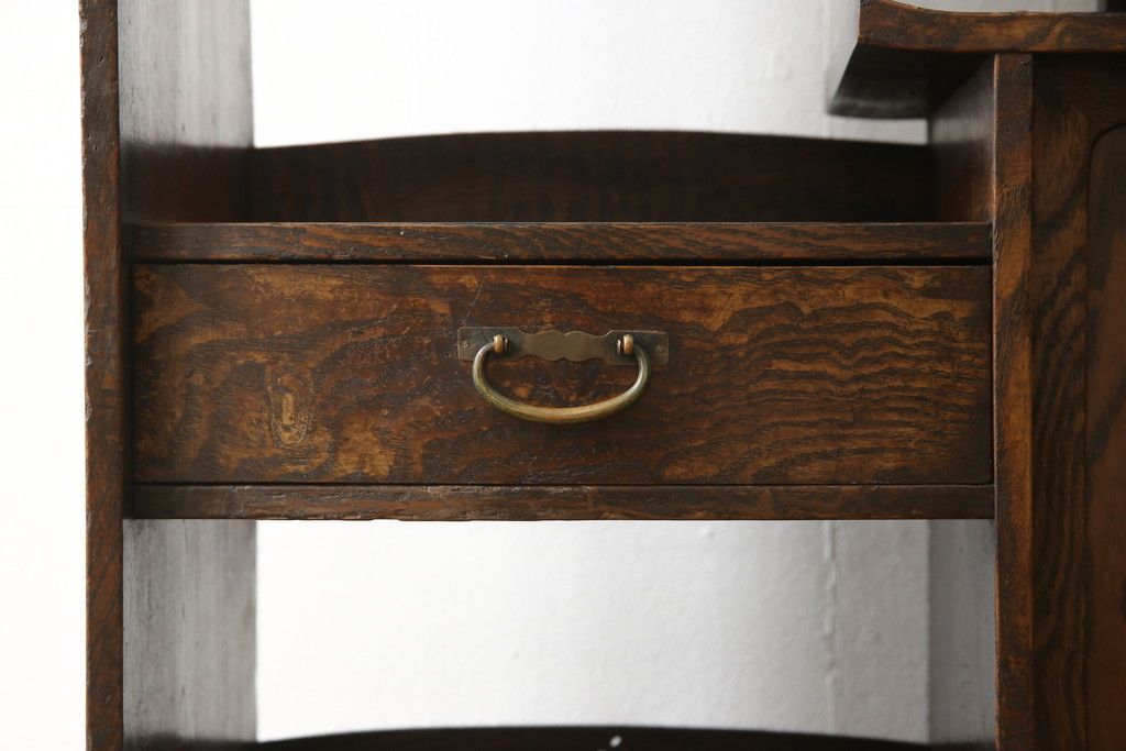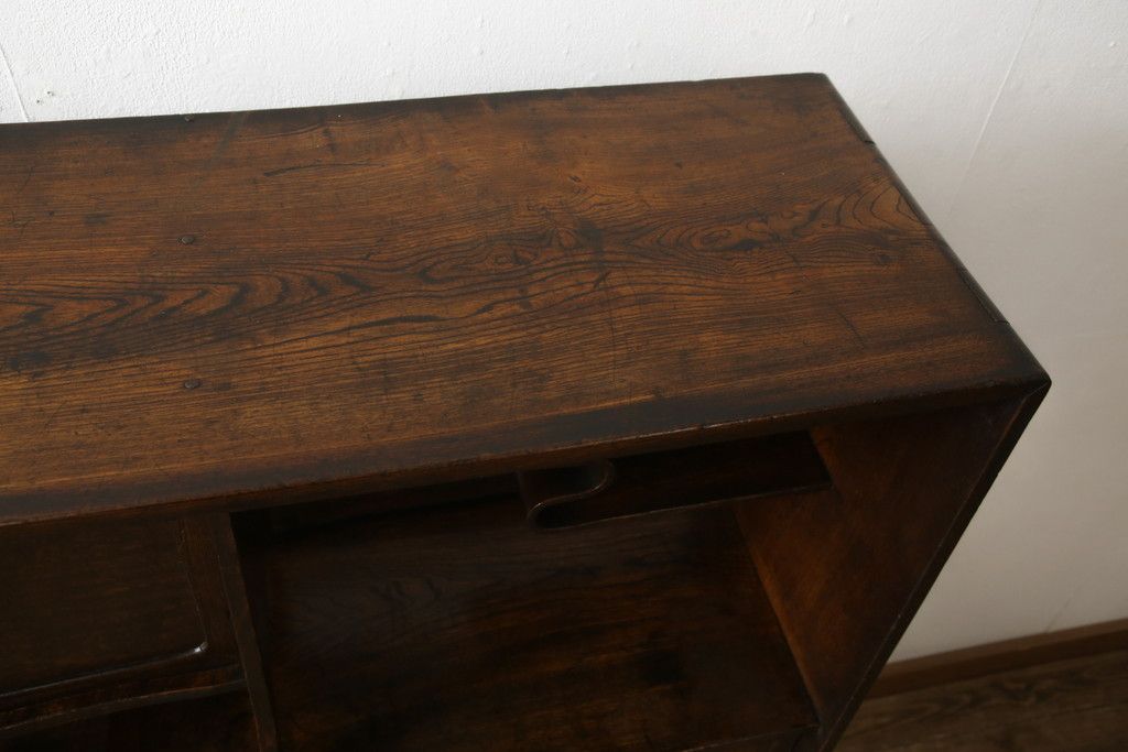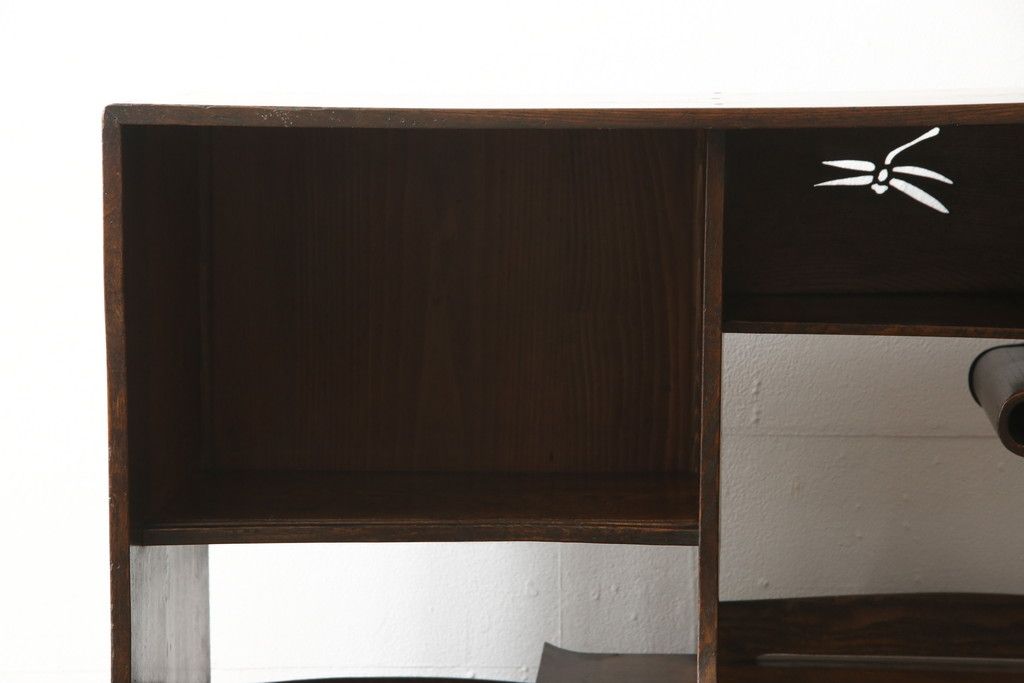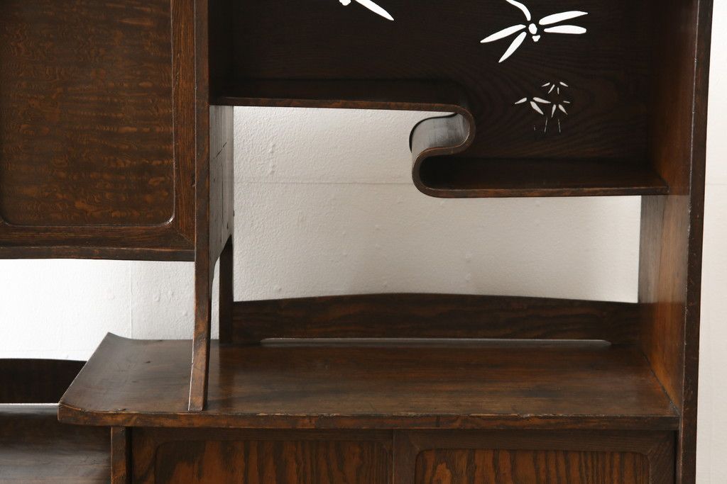 セミオーダー家具実績 > 重ね茶棚にリペア&カスタム!中段・下段引き戸内部の既存の棚板を取り外し、棚受けを取り付け、棚板を各1枚製作し取り付け。本体は現状をベースに着色。(茶箪笥、飾り棚、収納棚、戸棚)