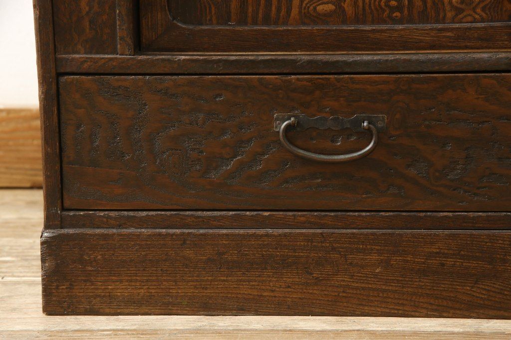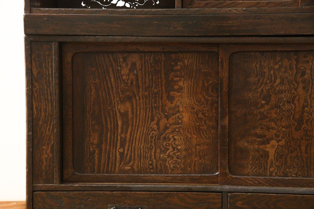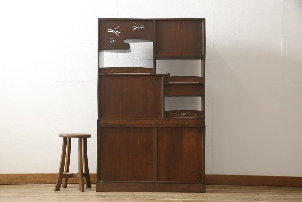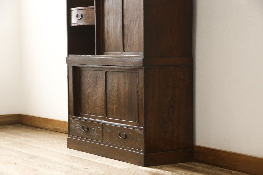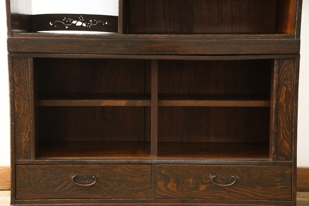 和箪笥> 茶箪笥・茶棚 > 重ね茶棚にリペア&カスタム!中段・下段引き戸内部の既存の棚板を取り外し、棚受けを取り付け、棚板を各1枚製作し取り付け。本体は現状をベースに着色。(茶箪笥、飾り棚、収納棚、戸棚)