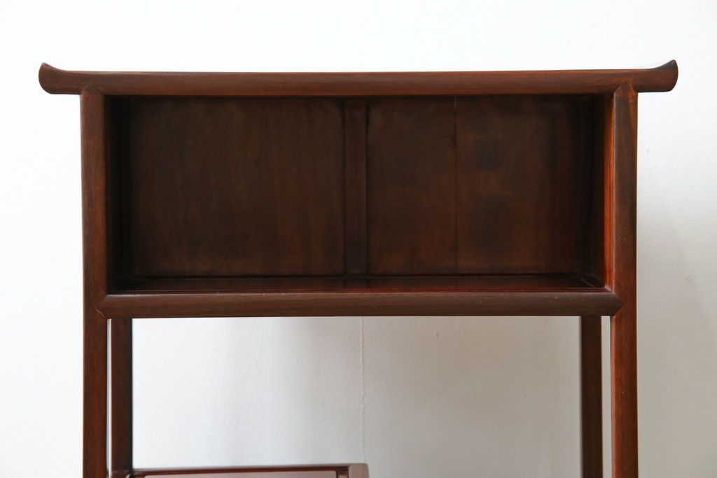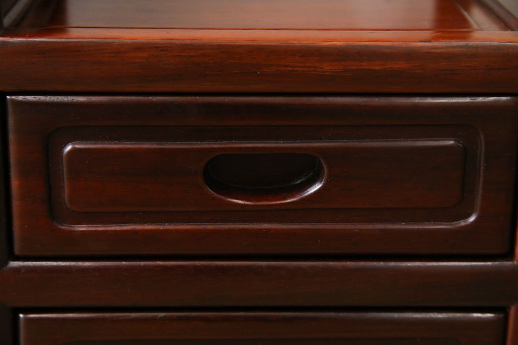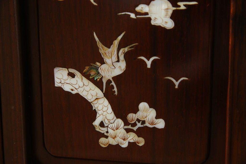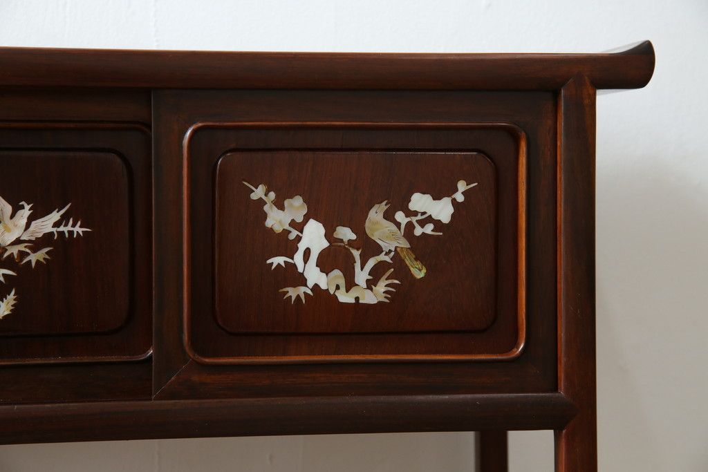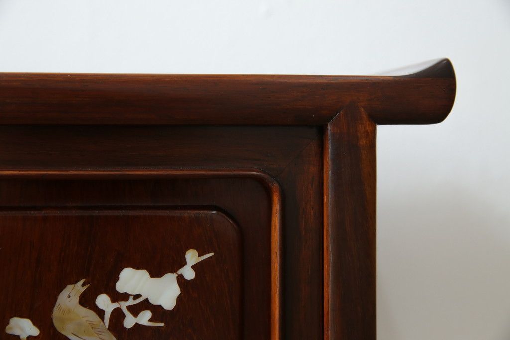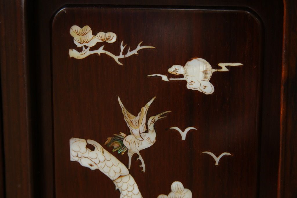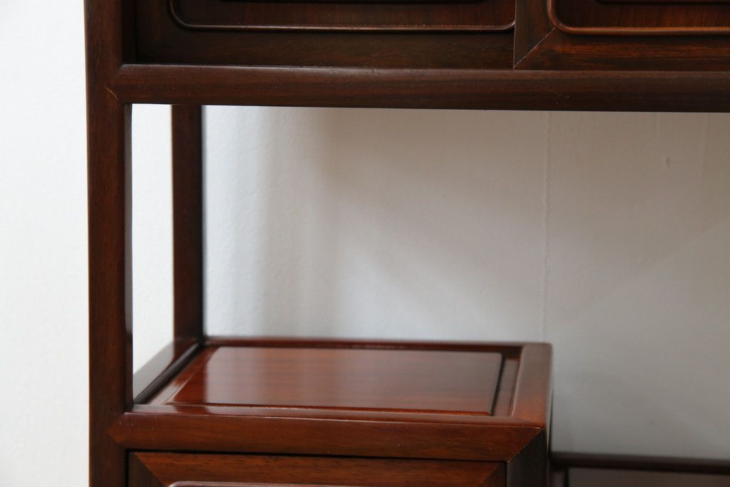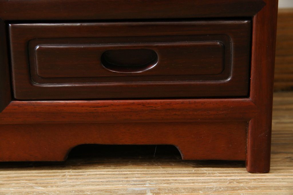 和製ビンテージ 花梨(カリン)材 螺鈿(ラデン) 象嵌入り 上品な佇まいで和の雰囲気を引き立てる小振りな茶棚(収納棚、戸棚、違い棚、ヴィンテージ)(R-078622)