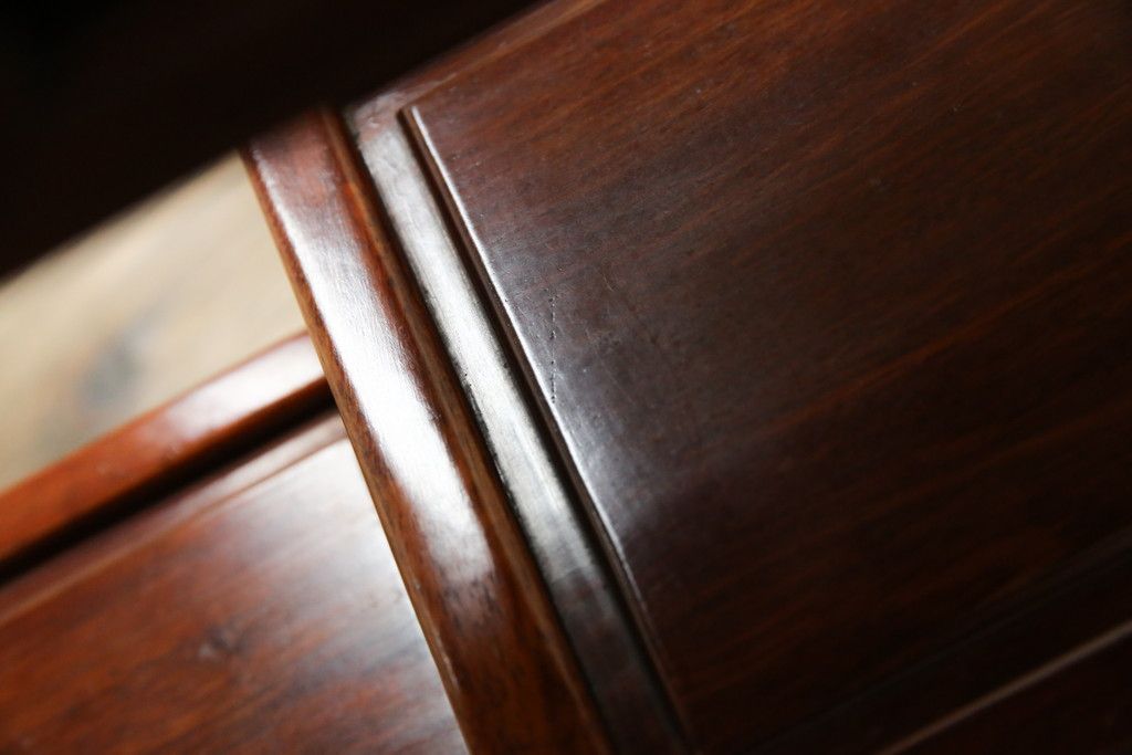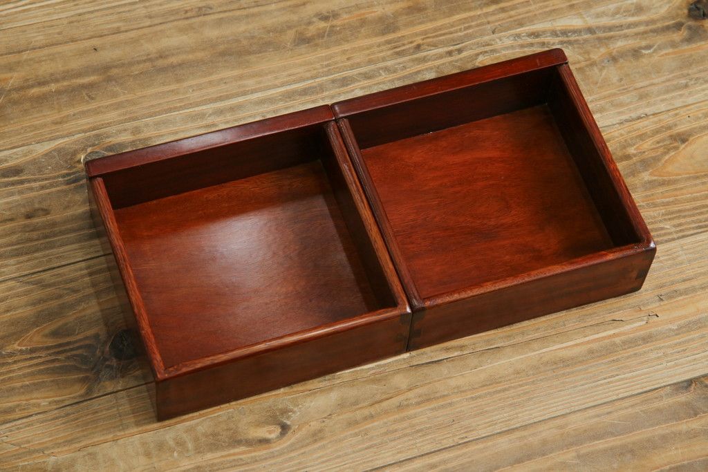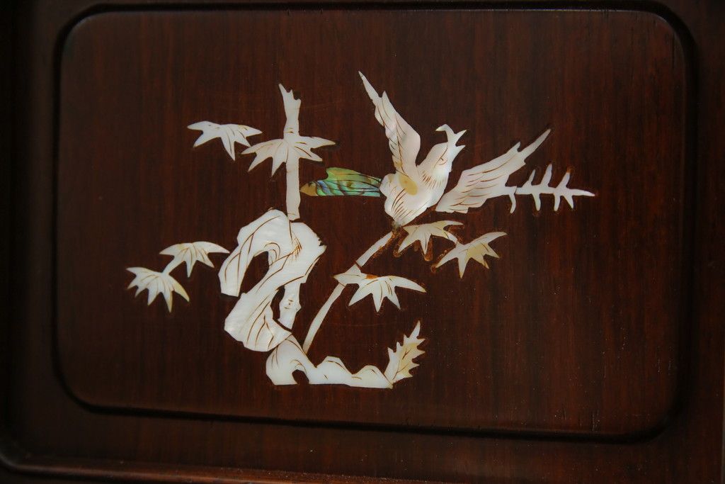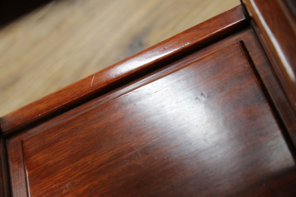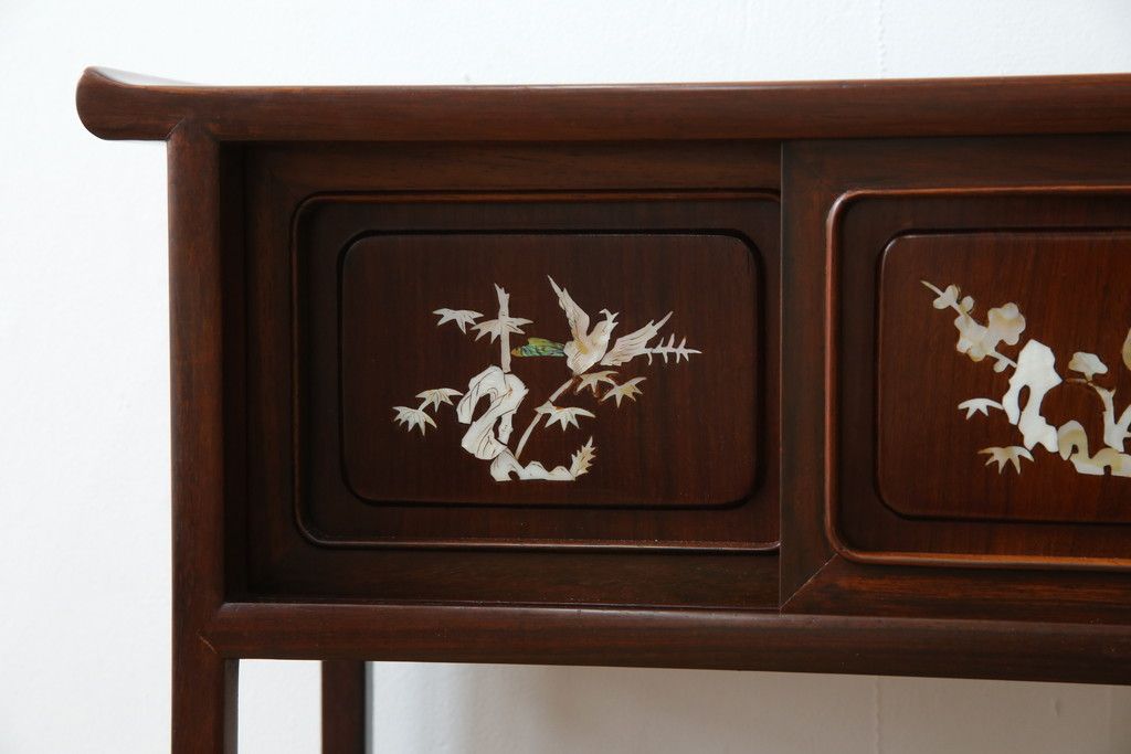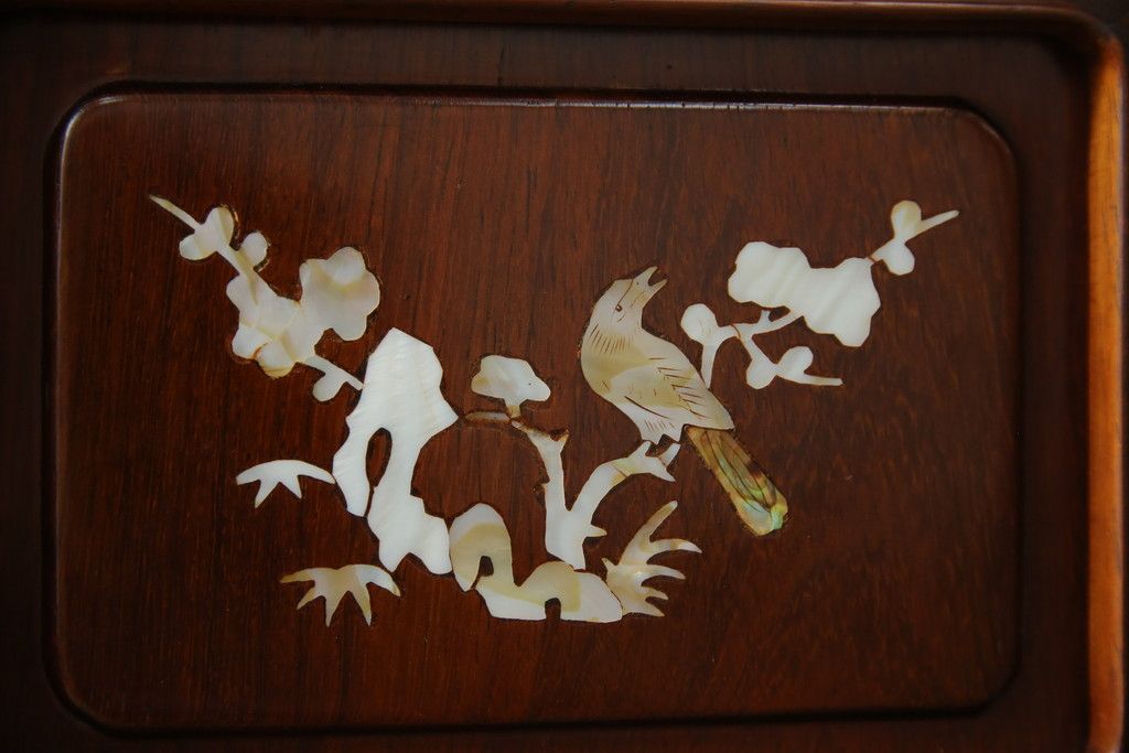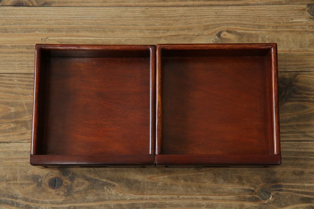 和製ビンテージ 花梨(カリン)材 螺鈿(ラデン) 象嵌入り 上品な佇まいで和の雰囲気を引き立てる小振りな茶棚(収納棚、戸棚、違い棚、ヴィンテージ)(R-078622)