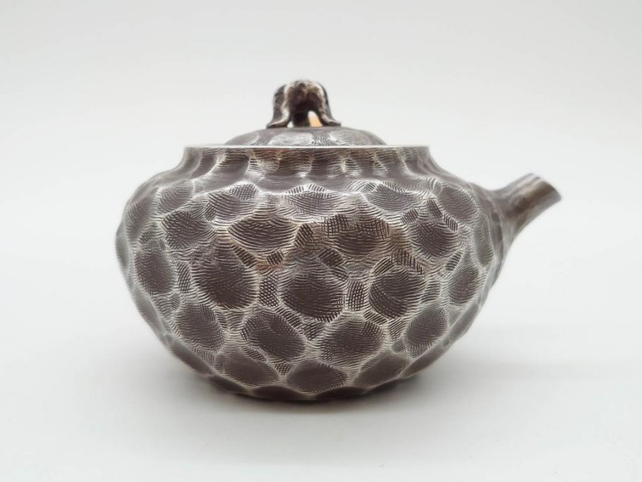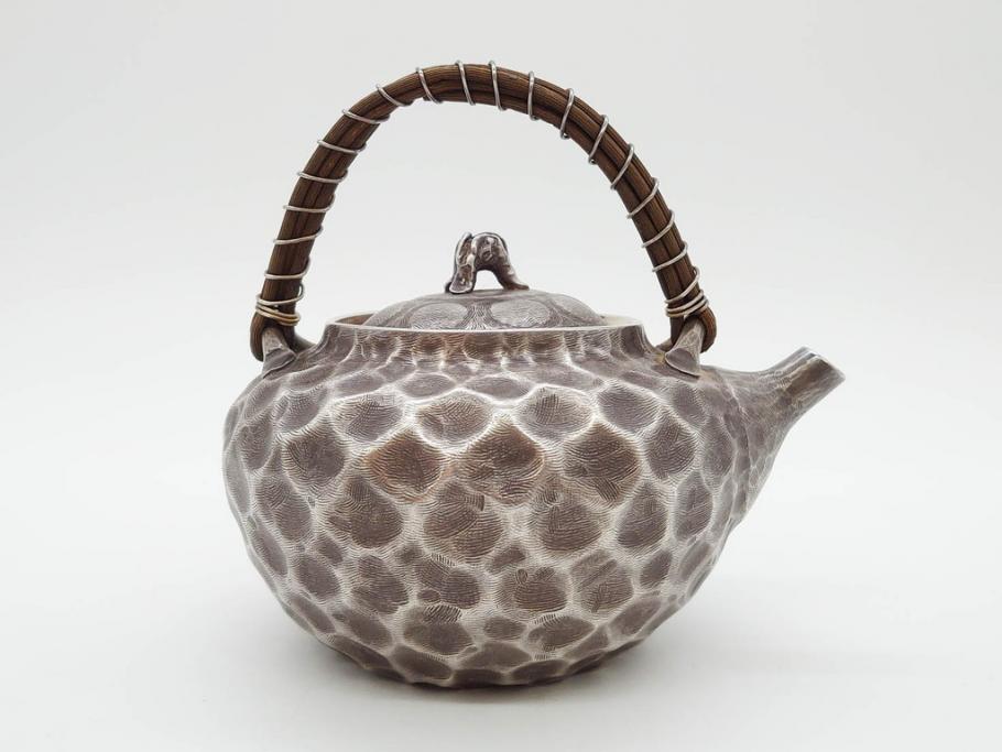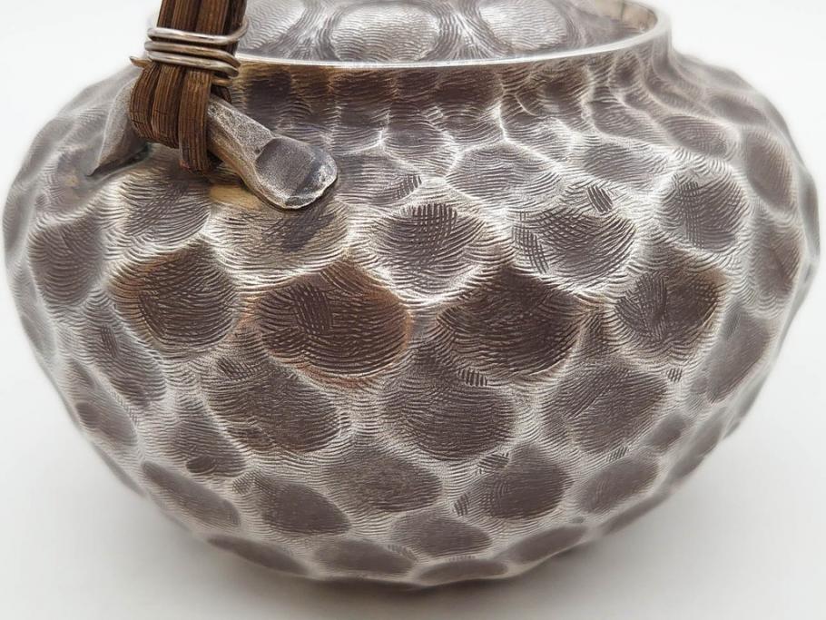 ラフジュ工房> 和食器・茶道具> 急須・湯吞み > 純銀 服部製 茶器揃 在銘作家物 合計972g 槌目模様が魅力的な重厚感のある茶器揃(銀瓶、湯瓶、煎茶道具、服部時計店、シルバー、茶道具、湯沸かし、急須、茶托、和食器、共箱付き、説明書付き)(R-078648)
