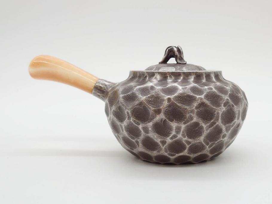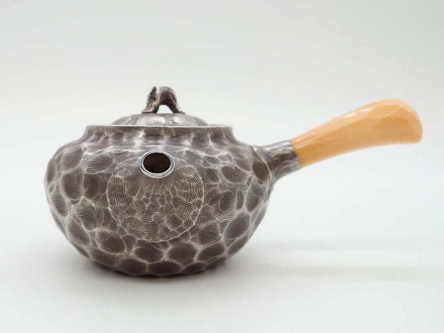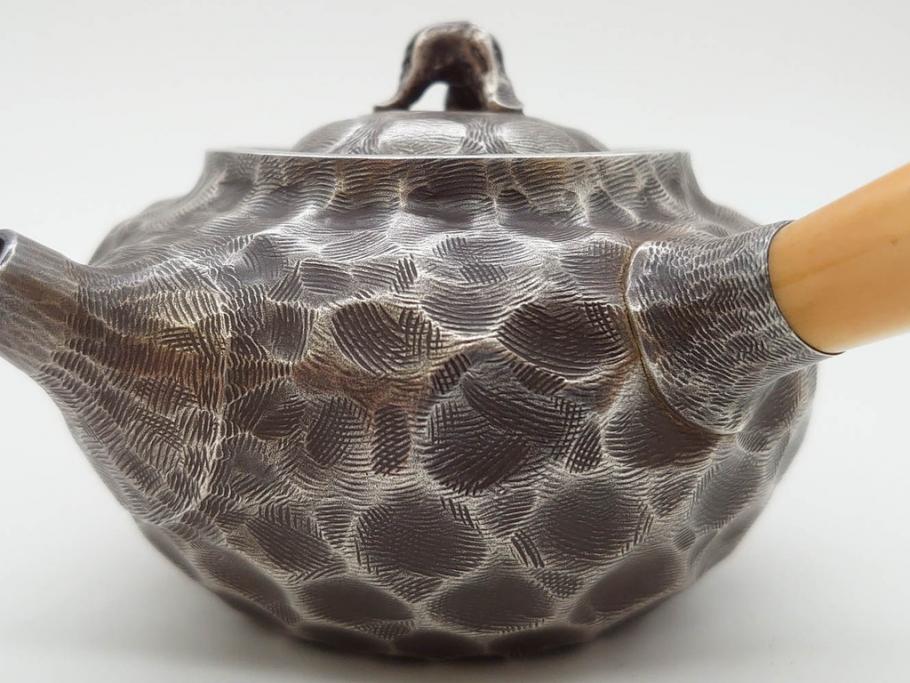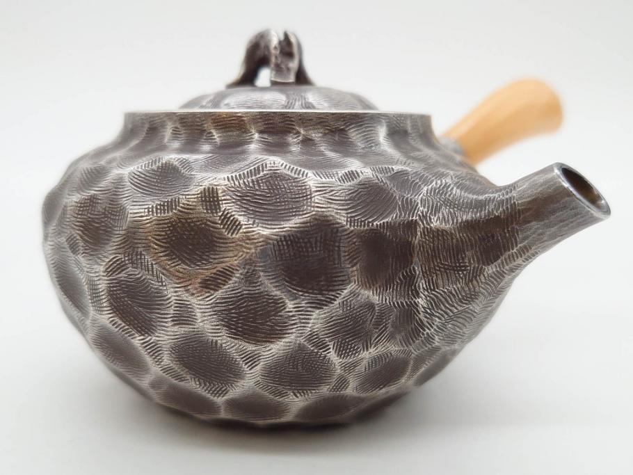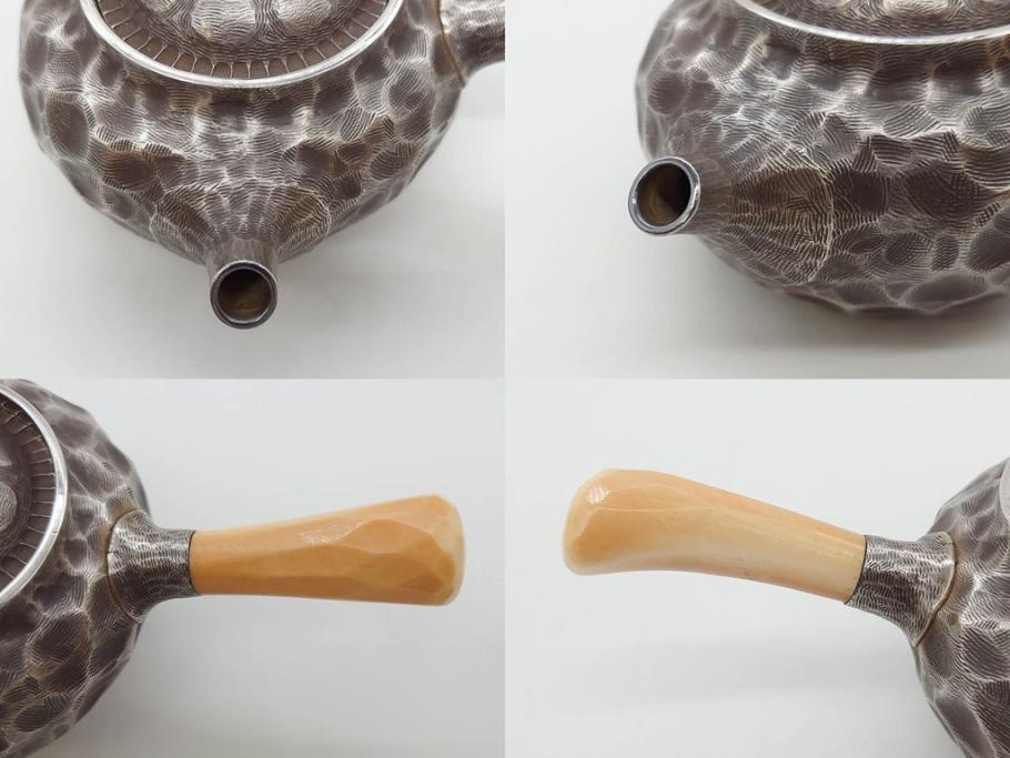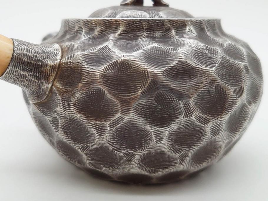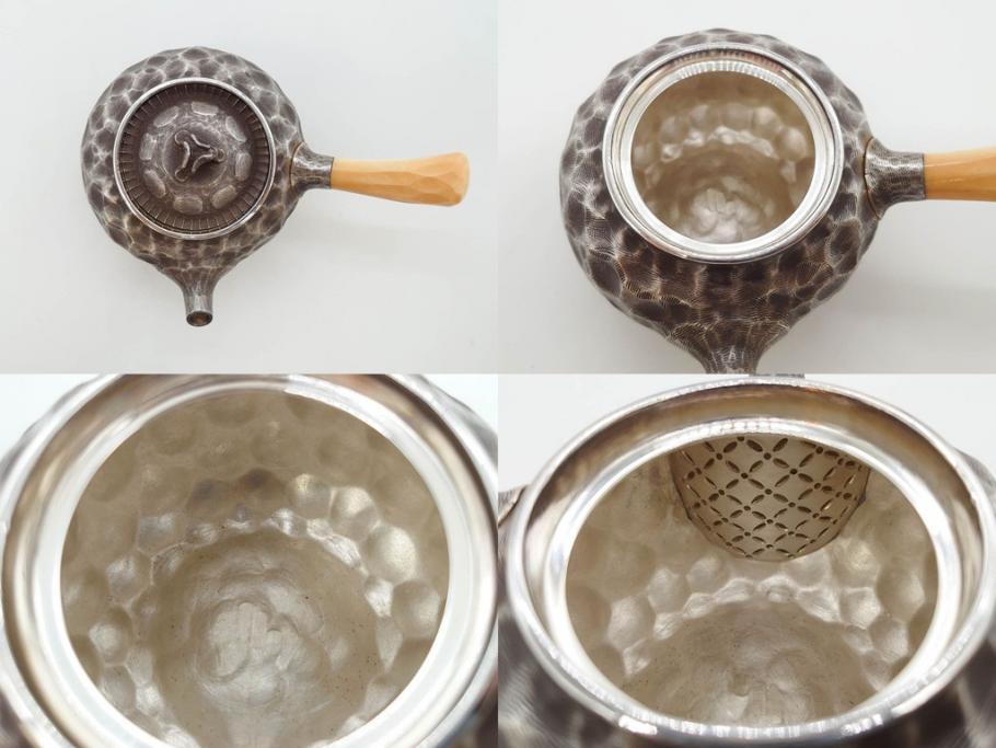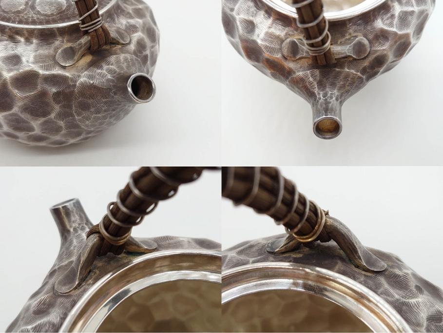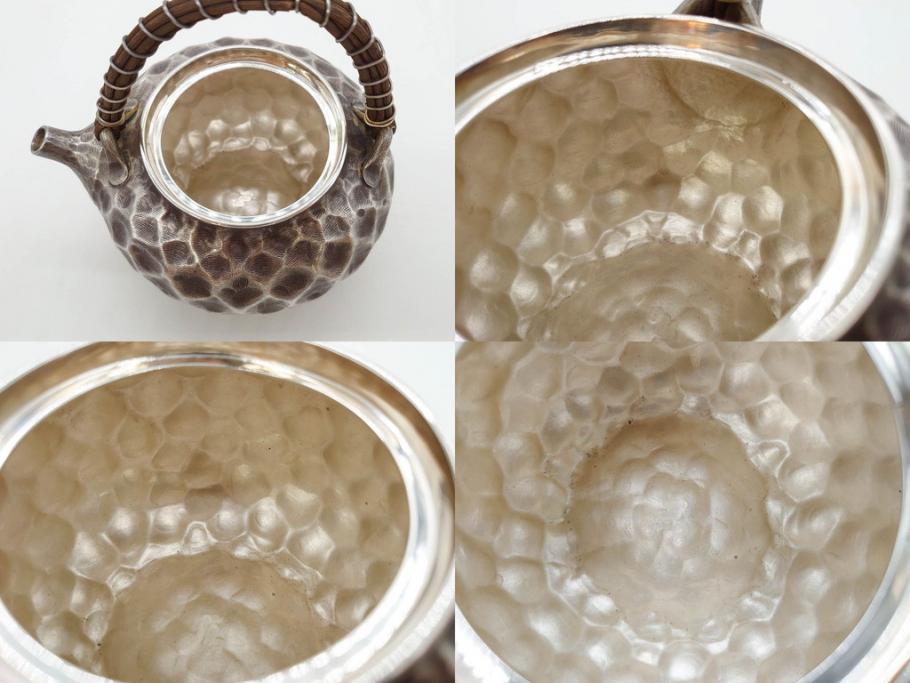ラフジュ工房> 和食器・茶道具> 茶道具・鉄瓶 > 純銀 服部製 茶器揃 在銘作家物 合計972g 槌目模様が魅力的な重厚感のある茶器揃(銀瓶、湯瓶、煎茶道具、服部時計店、シルバー、茶道具、湯沸かし、急須、茶托、和食器、共箱付き、説明書付き)(R-078648)