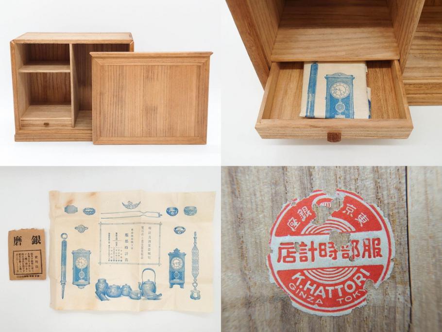純銀 服部製 茶器揃 在銘作家物 合計972g 槌目模様が魅力的な重厚感のある茶器揃(銀瓶、湯瓶、煎茶道具、服部時計店、シルバー、茶道具、湯沸かし、急須、茶托、和食器、共箱付き、説明書付き)(R-078648)