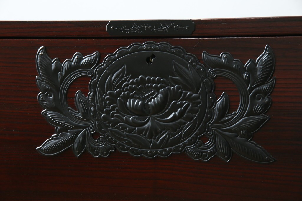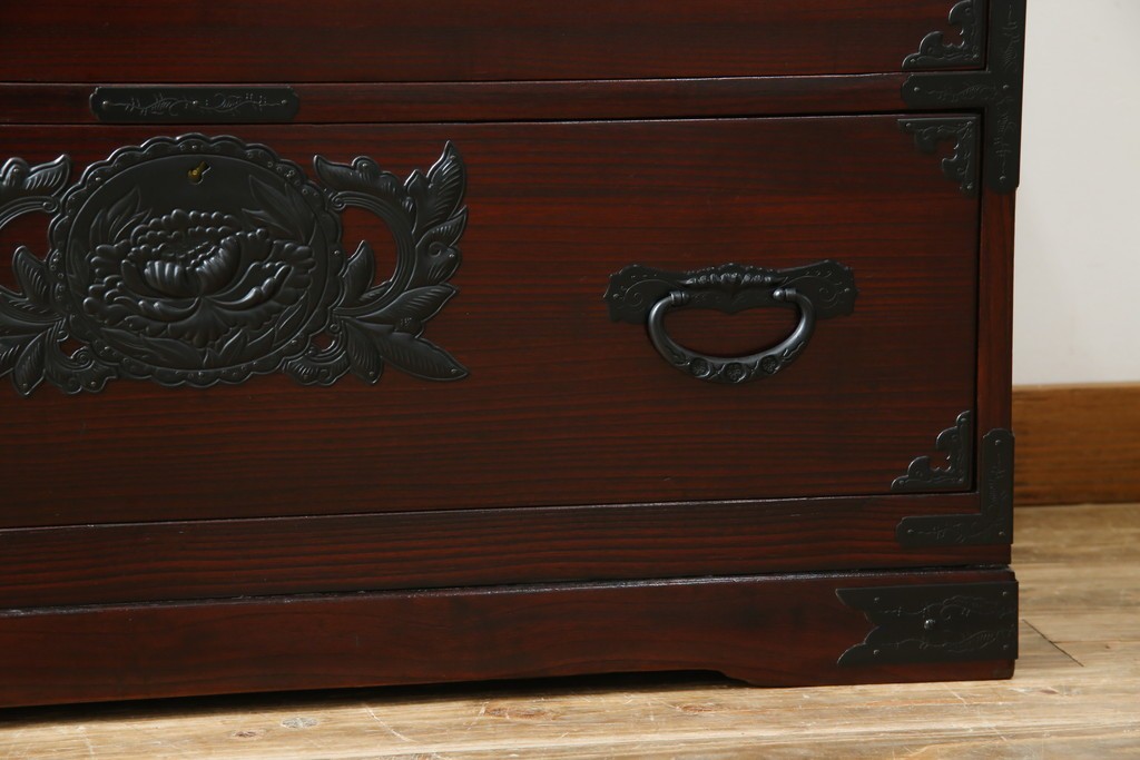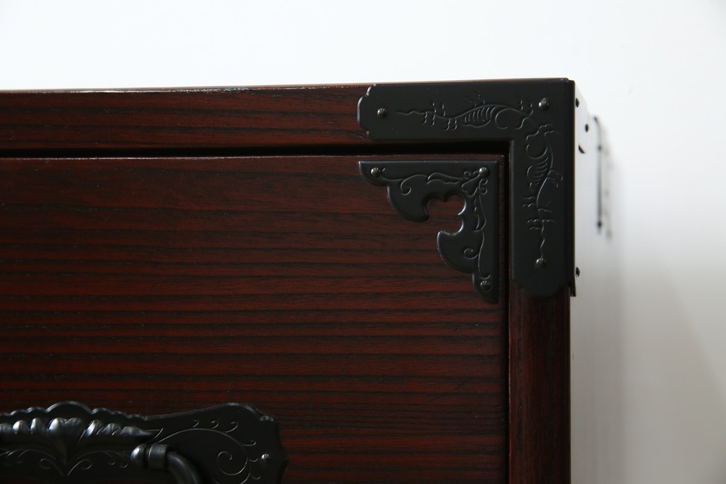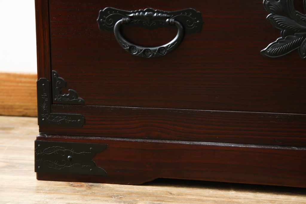 民芸家具 > 和製ヴィンテージ 美品!! 欅産業社にて仙台箪笥にリメイク済み 落ち着いた色味と美しい金具が目を惹く漆塗りの衣装箪笥ローチェスト (R-078655)