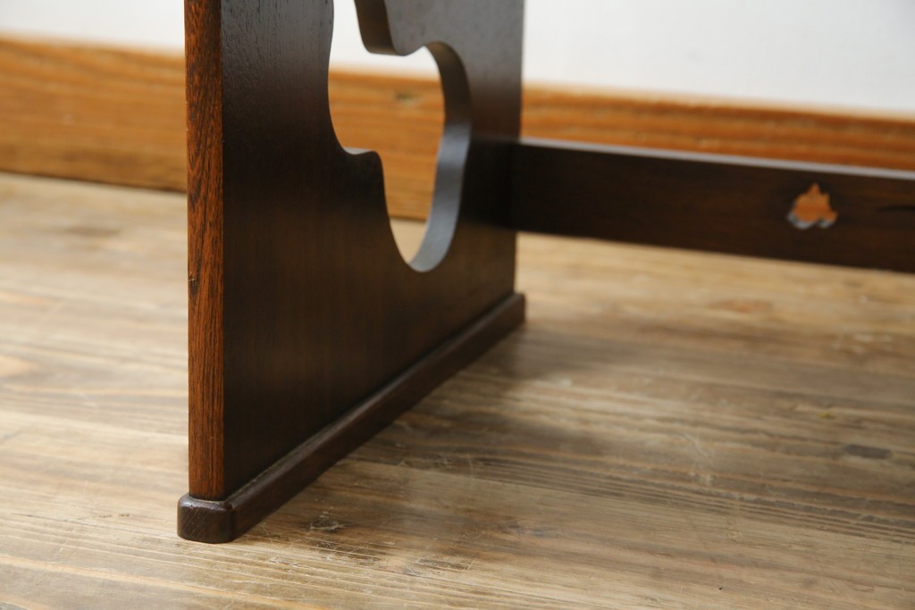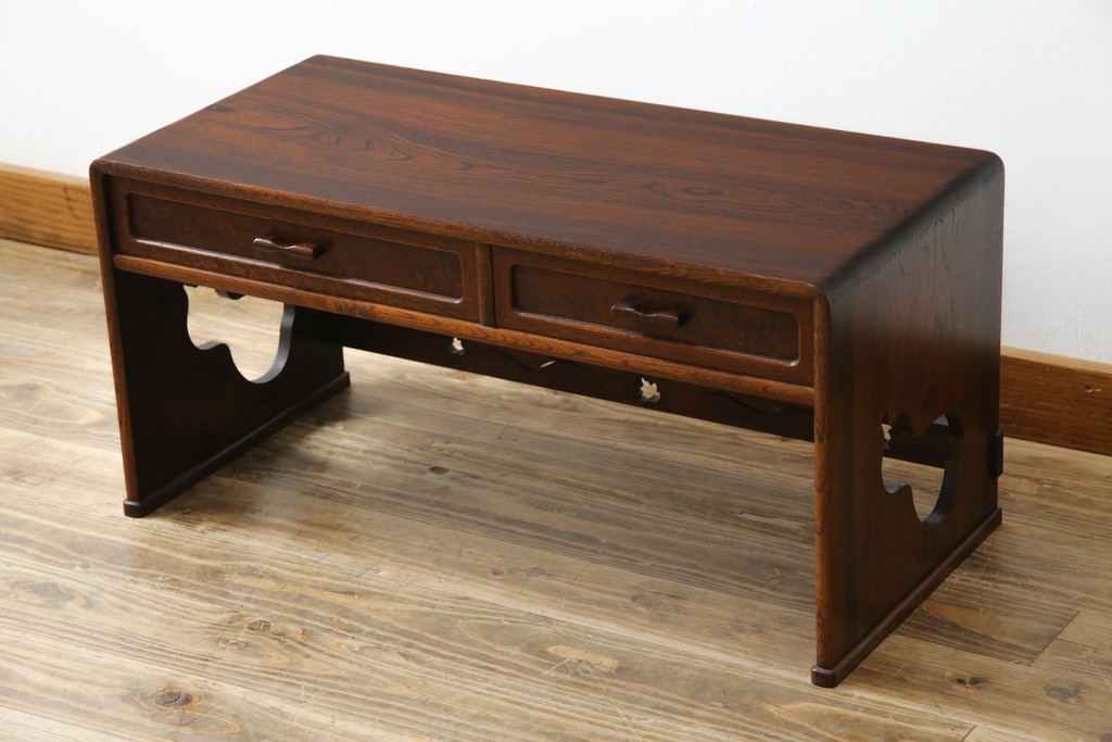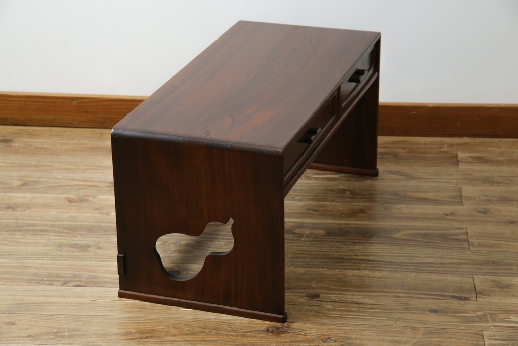 テーブル> センターテーブル・ローテーブル > 中古 美品 国産工芸家具 栓材 内部桐材 ひょうたんの透かし彫りが目を惹く文机(座机)(R-078720)