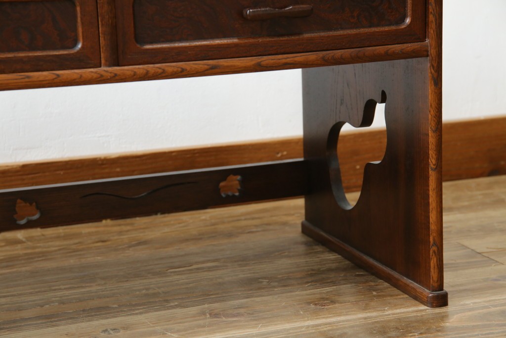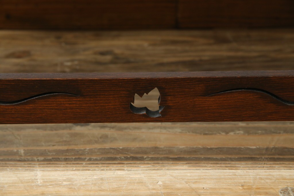 デスク> ワークデスク > 中古 美品 国産工芸家具 栓材 内部桐材 ひょうたんの透かし彫りが目を惹く文机(座机)(R-078720)