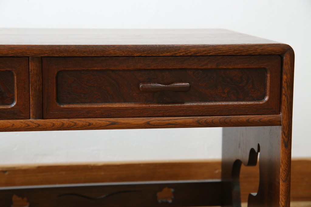 テーブル > 中古 美品 国産工芸家具 栓材 内部桐材 ひょうたんの透かし彫りが目を惹く文机(座机)(R-078720)