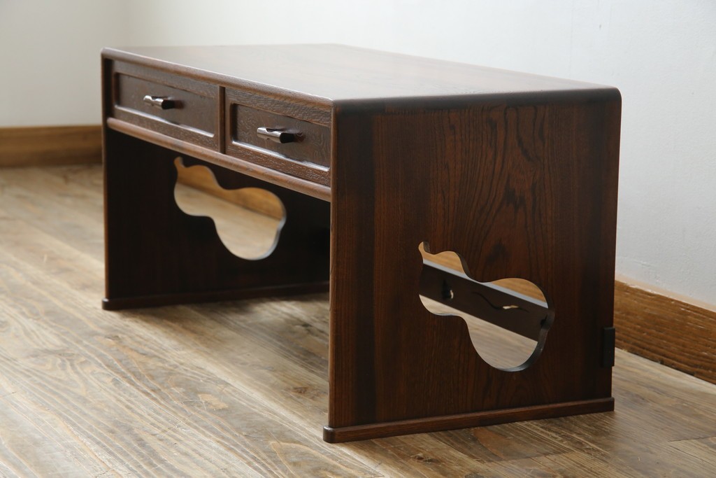 テーブル> 座卓 > 中古 美品 国産工芸家具 栓材 内部桐材 ひょうたんの透かし彫りが目を惹く文机(座机)(R-078720)