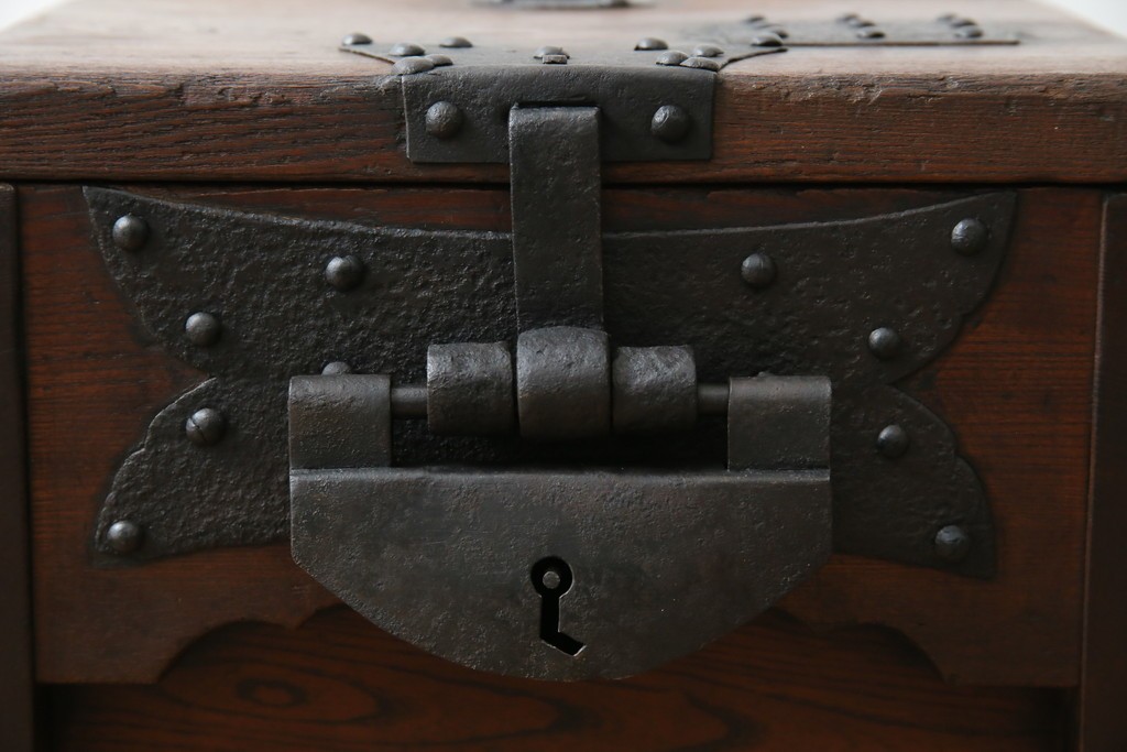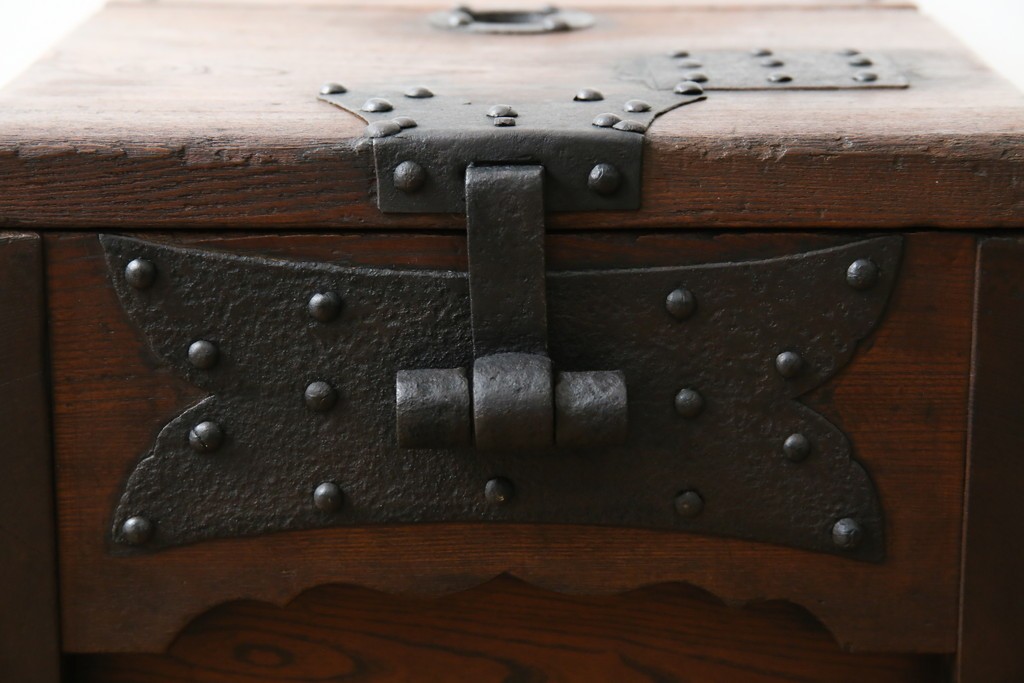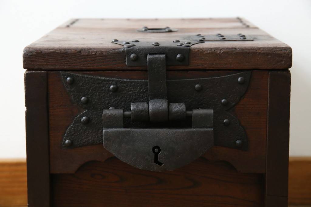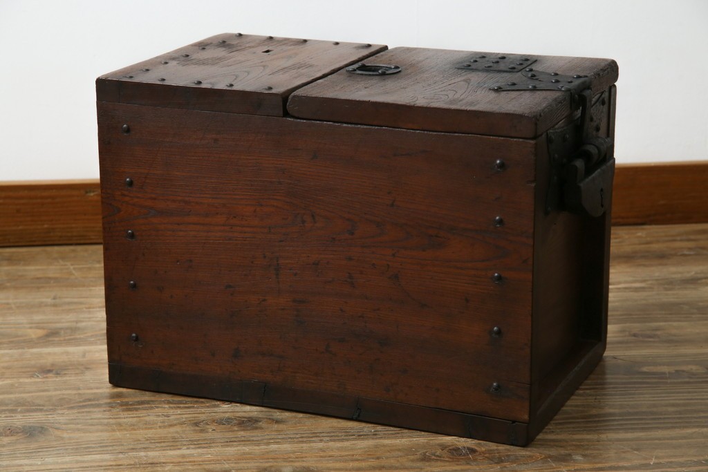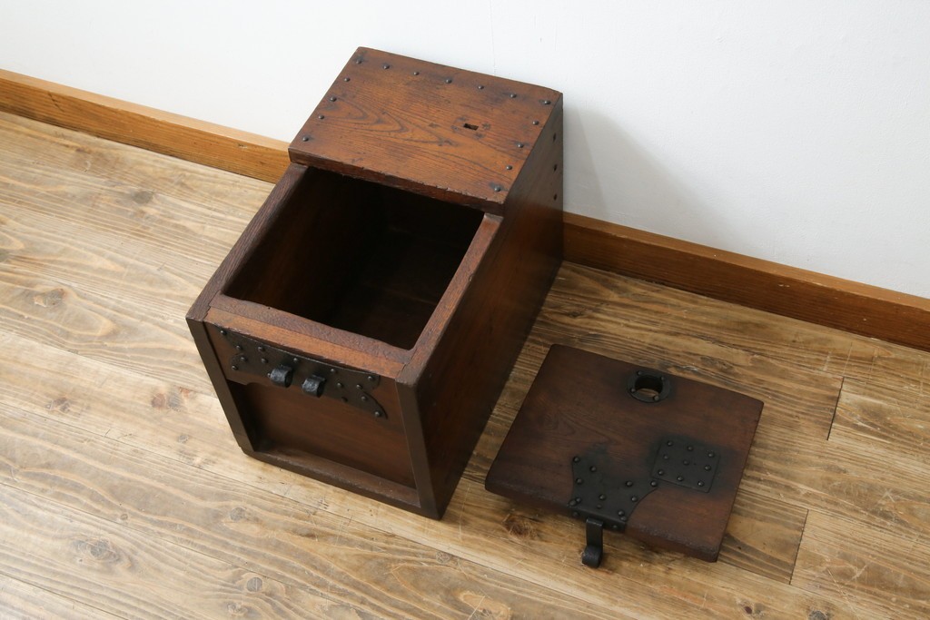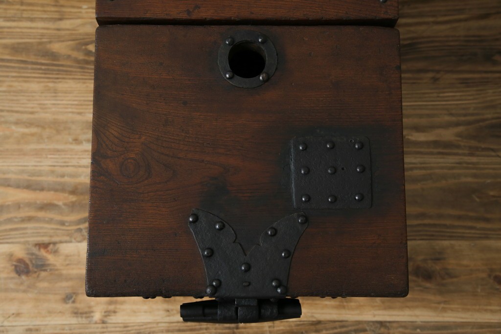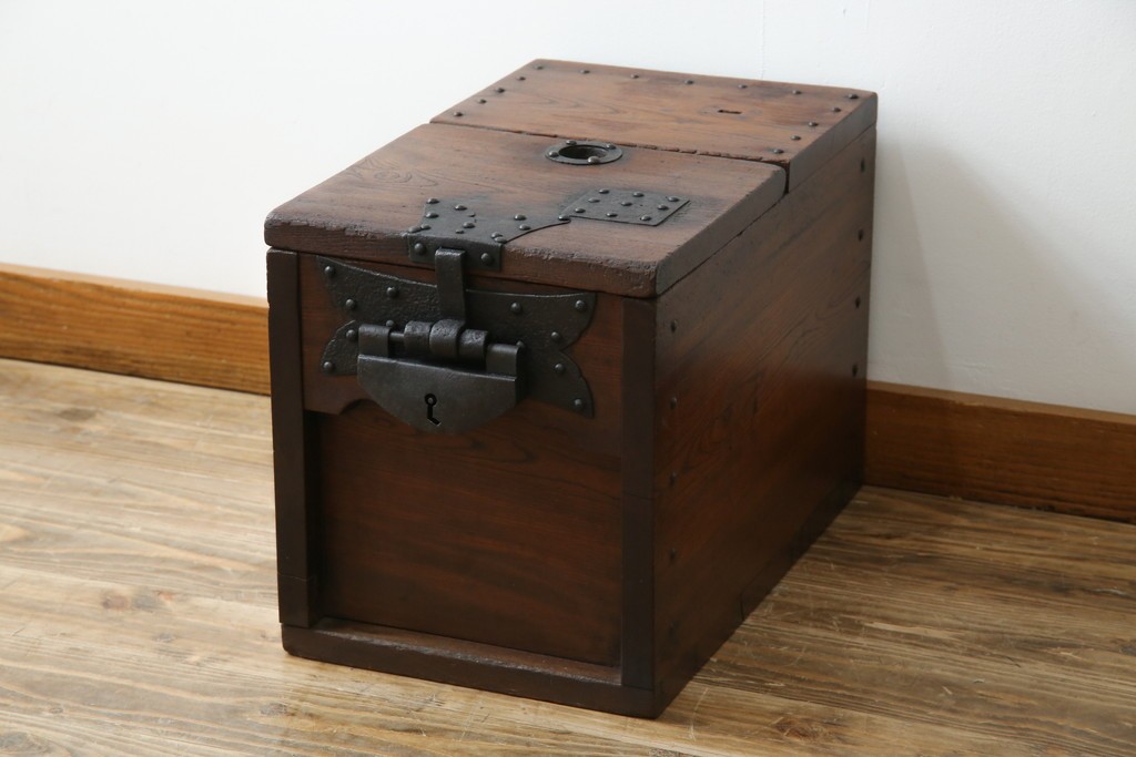 小物収納・トランク > 和製アンティーク 欅(ケヤキ)材 使い込まれた風合いが味わい深い銭箱(銭函)(R-078799)