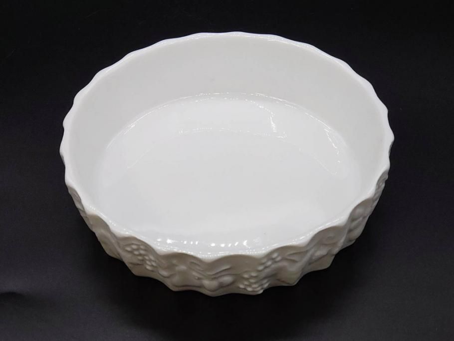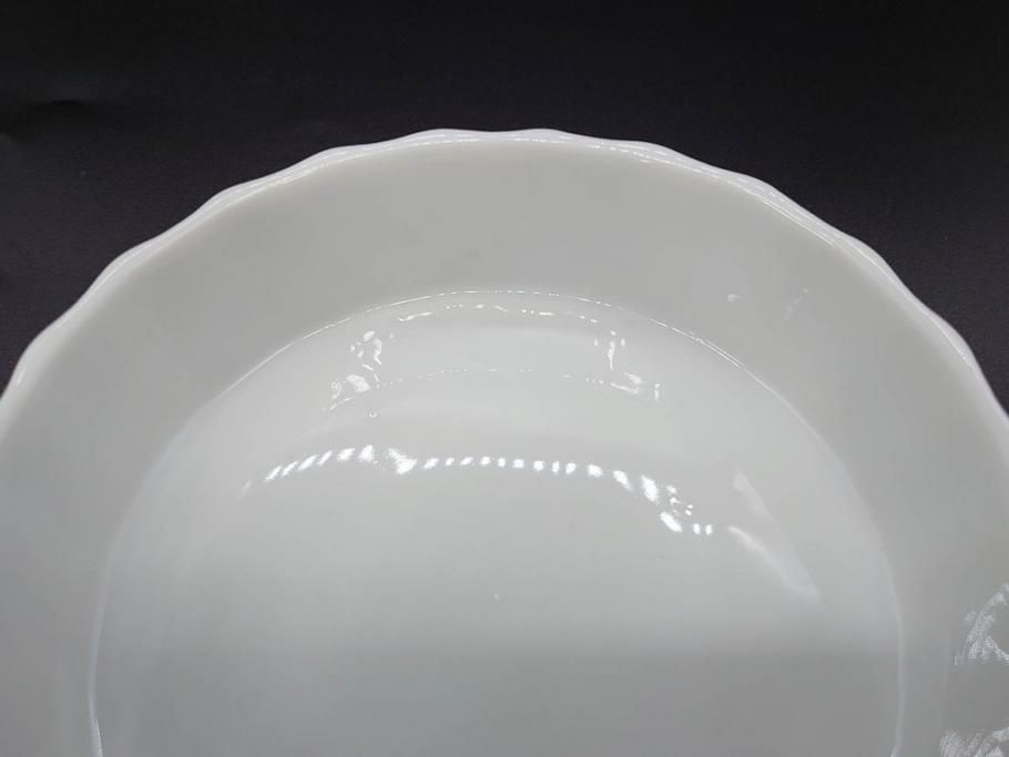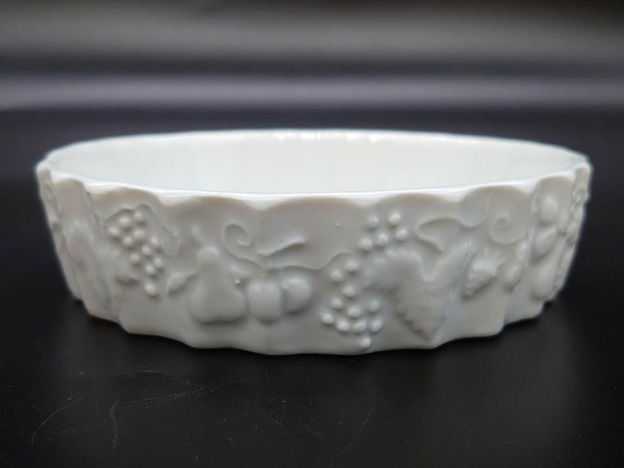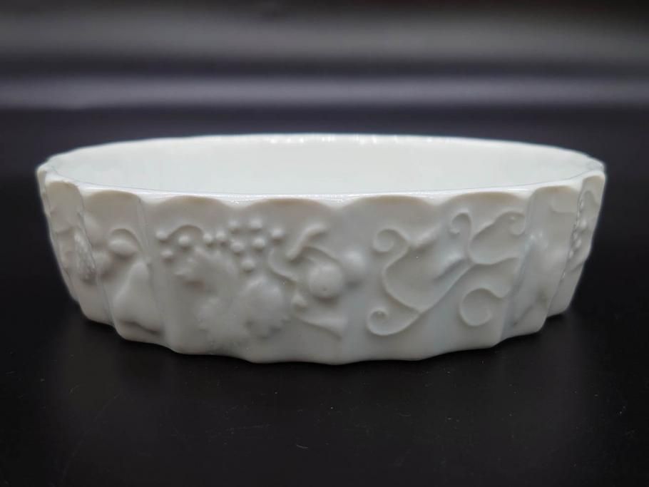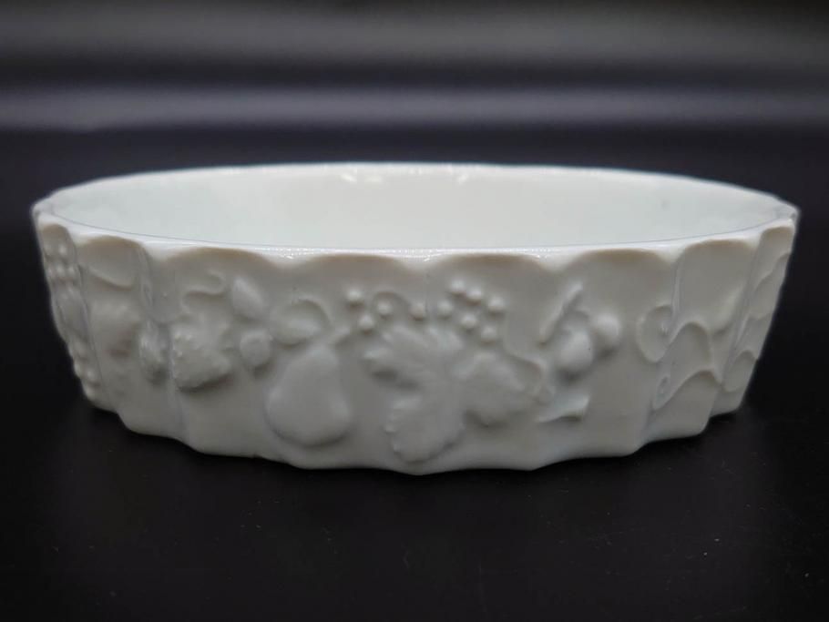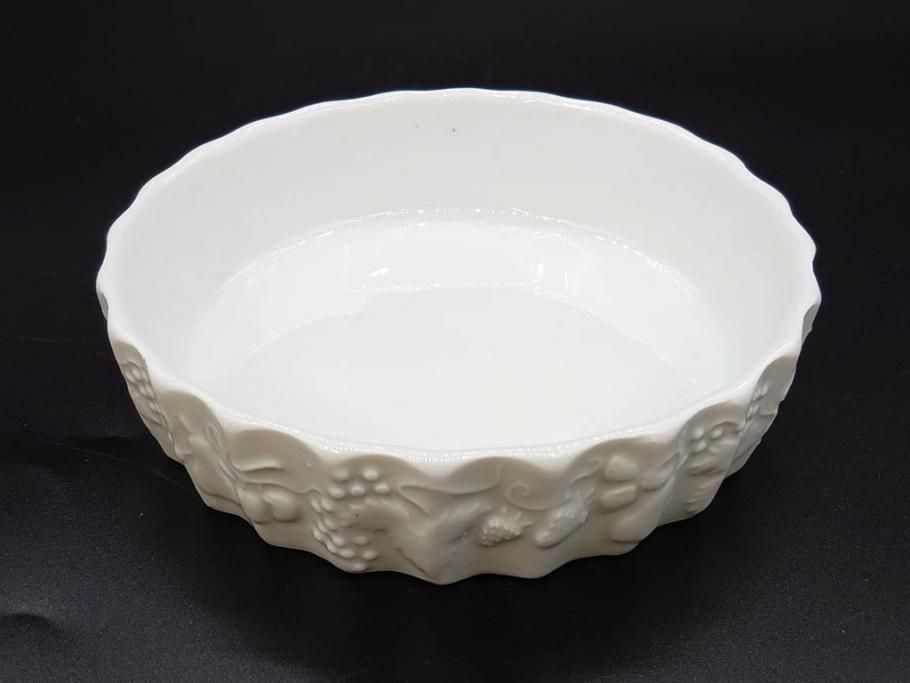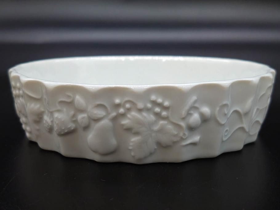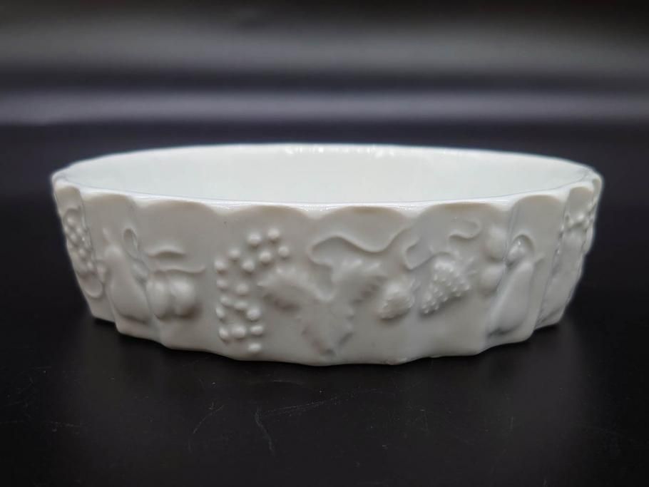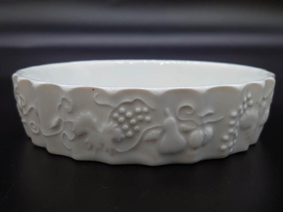 ビンテージ フランス Philippe Deshoulieres(フィリップデズリエ) LIMOGES(リモージュ) 側面に施されたフルーツの模様が可愛らしいグラタン皿6枚セット(ヴィンテージ、果物、いちご、葡萄、洋ナシ、白磁、プレート、中皿、深皿、洋食器)(R-078885)