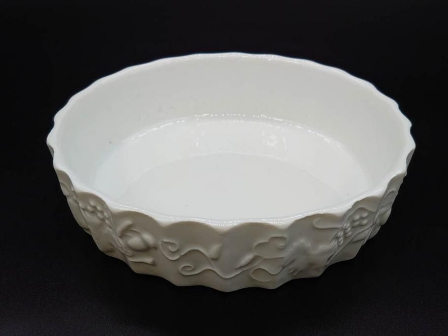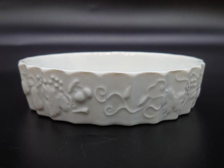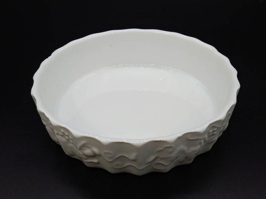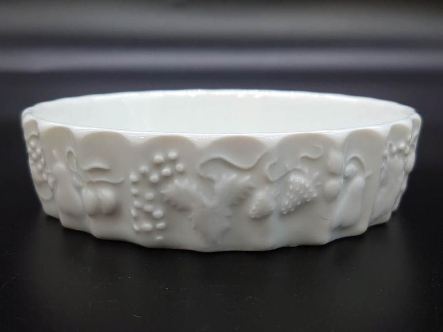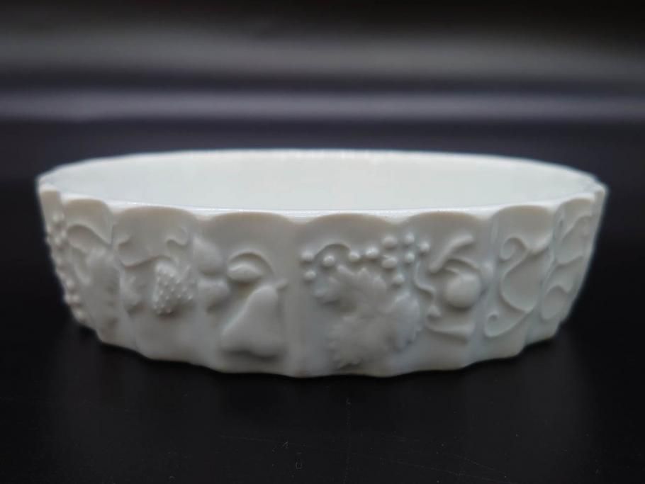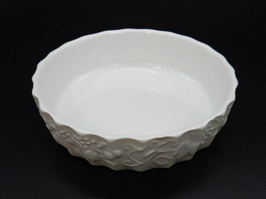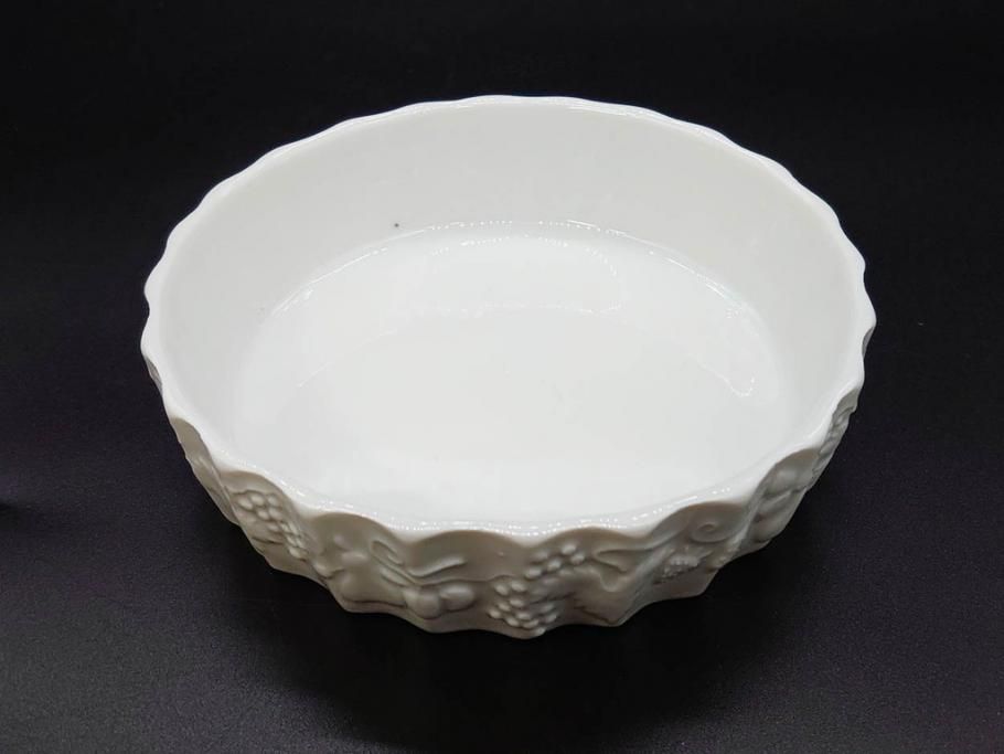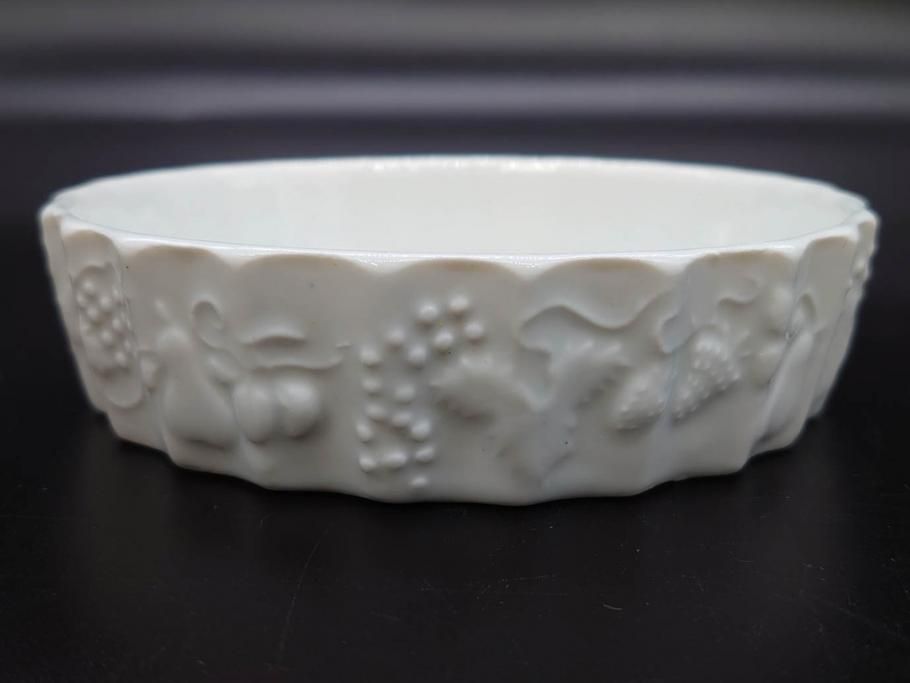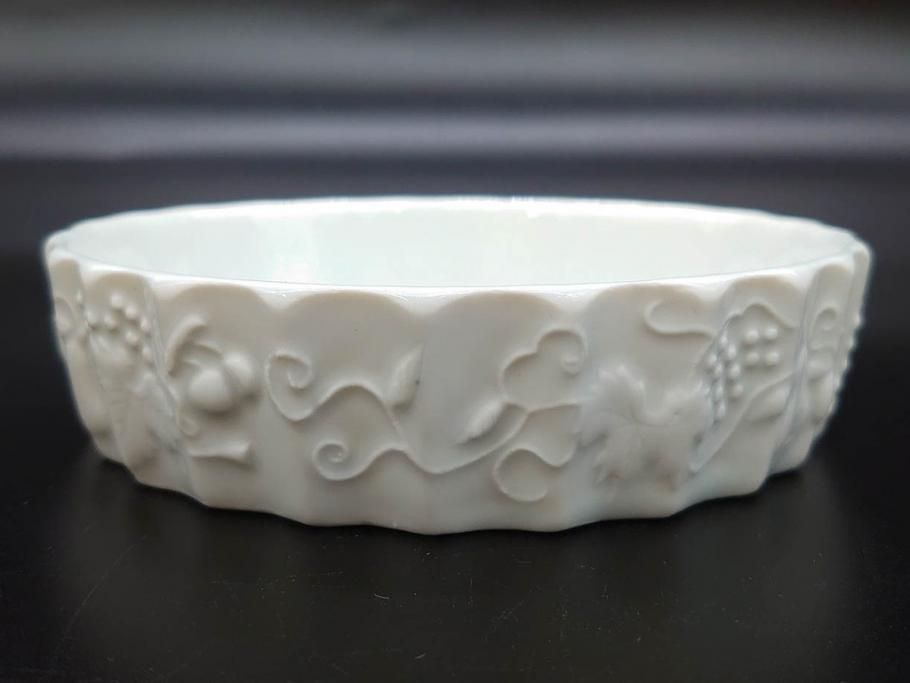 ビンテージ フランス Philippe Deshoulieres(フィリップデズリエ) LIMOGES(リモージュ) 側面に施されたフルーツの模様が可愛らしいグラタン皿6枚セット(ヴィンテージ、果物、いちご、葡萄、洋ナシ、白磁、プレート、中皿、深皿、洋食器)(R-078885)