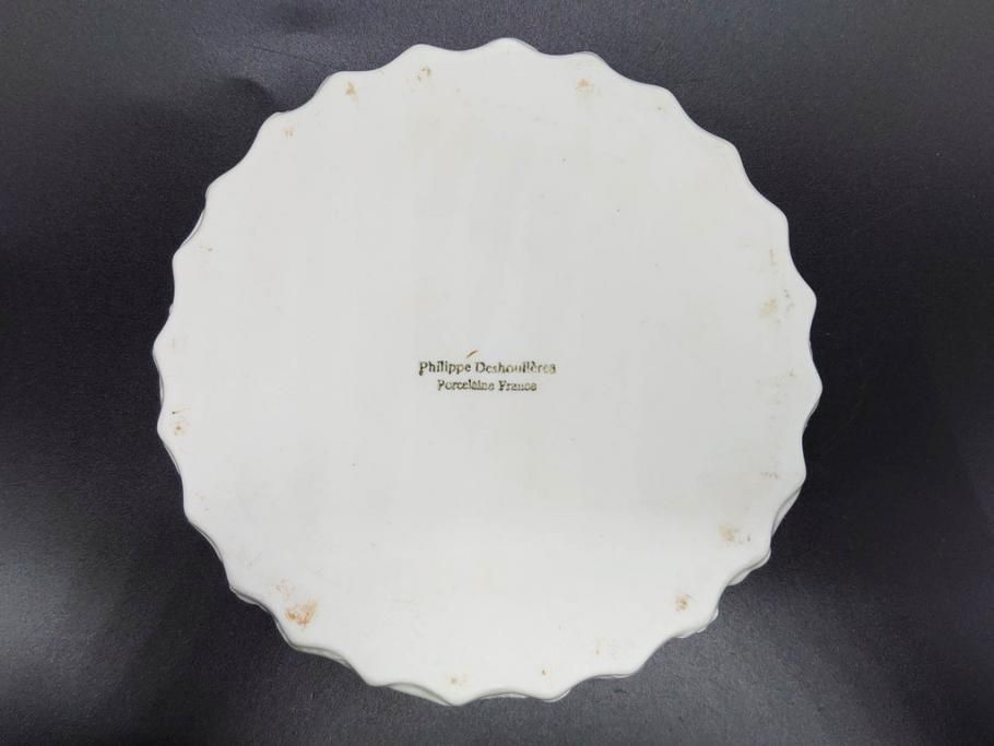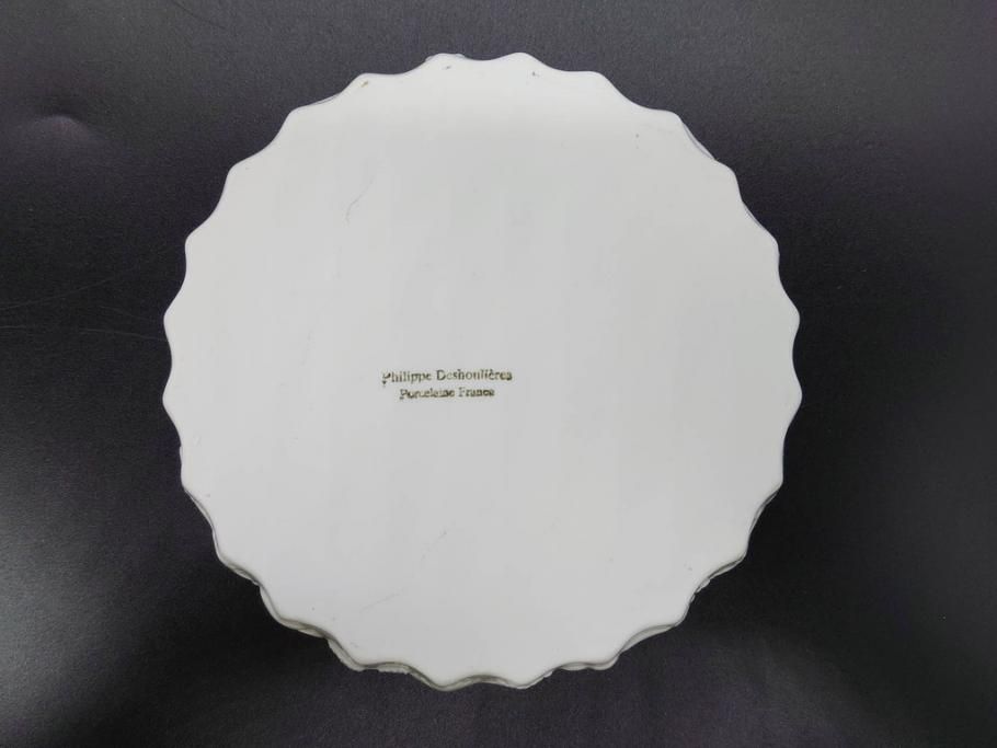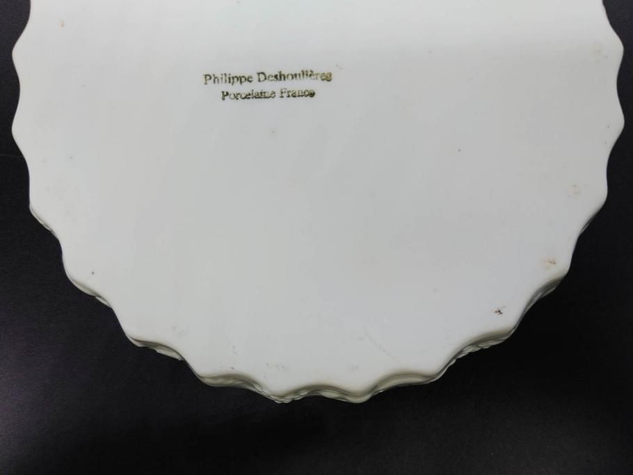ラフジュ工房> 洋食器・キッチン用品> 皿・プレート > ビンテージ フランス Philippe Deshoulieres(フィリップデズリエ) LIMOGES(リモージュ) 側面に施されたフルーツの模様が可愛らしいグラタン皿6枚セット(ヴィンテージ、果物、いちご、葡萄、洋ナシ、白磁、プレート、中皿、深皿、洋食器)(R-078885)