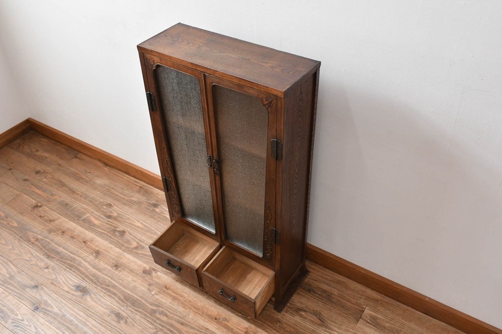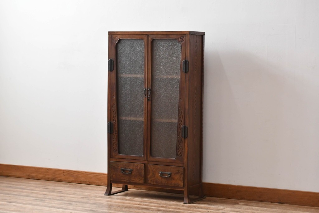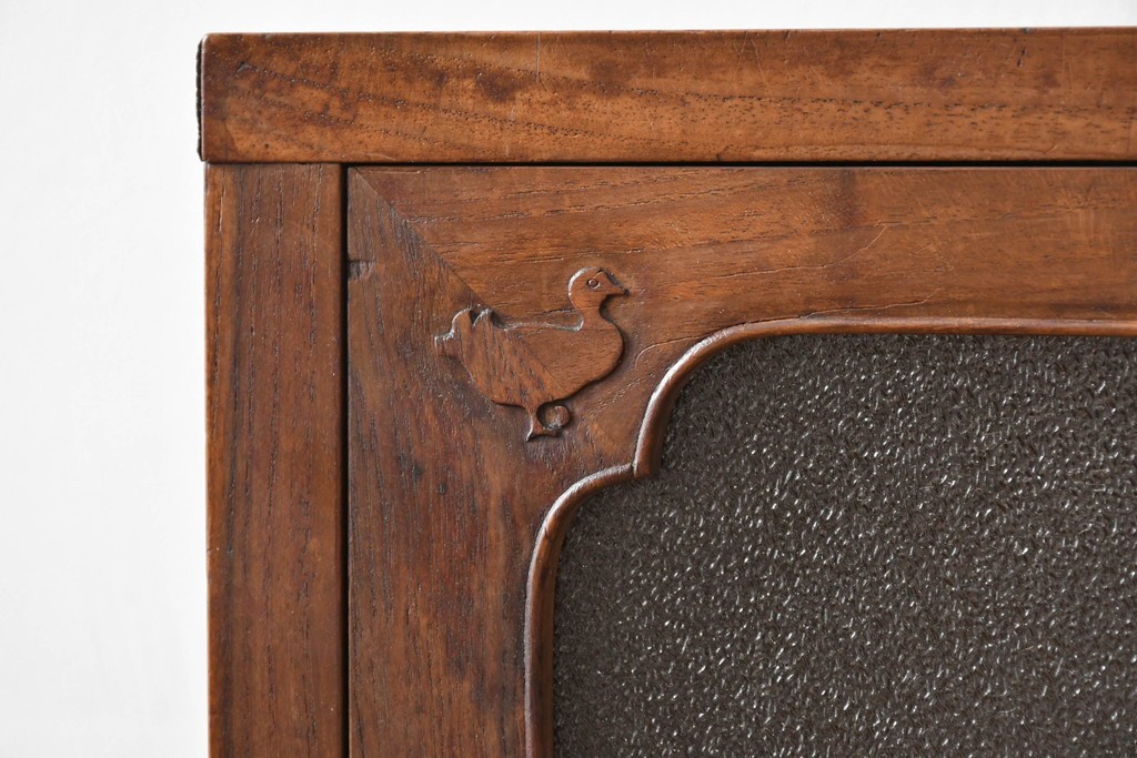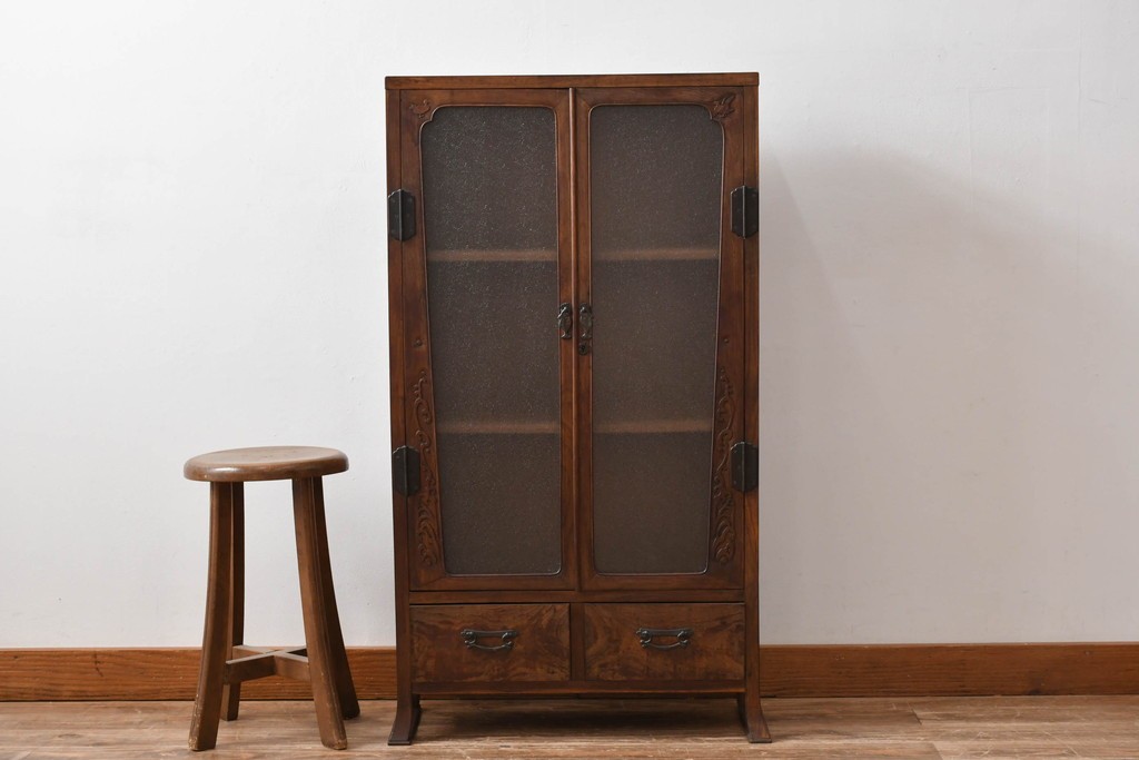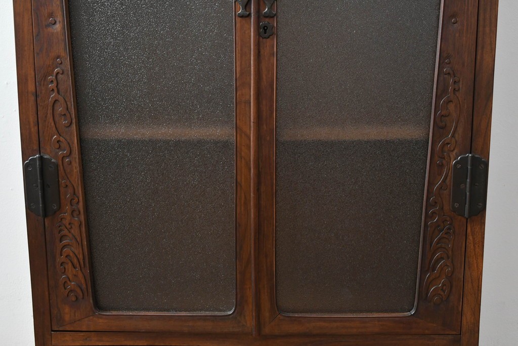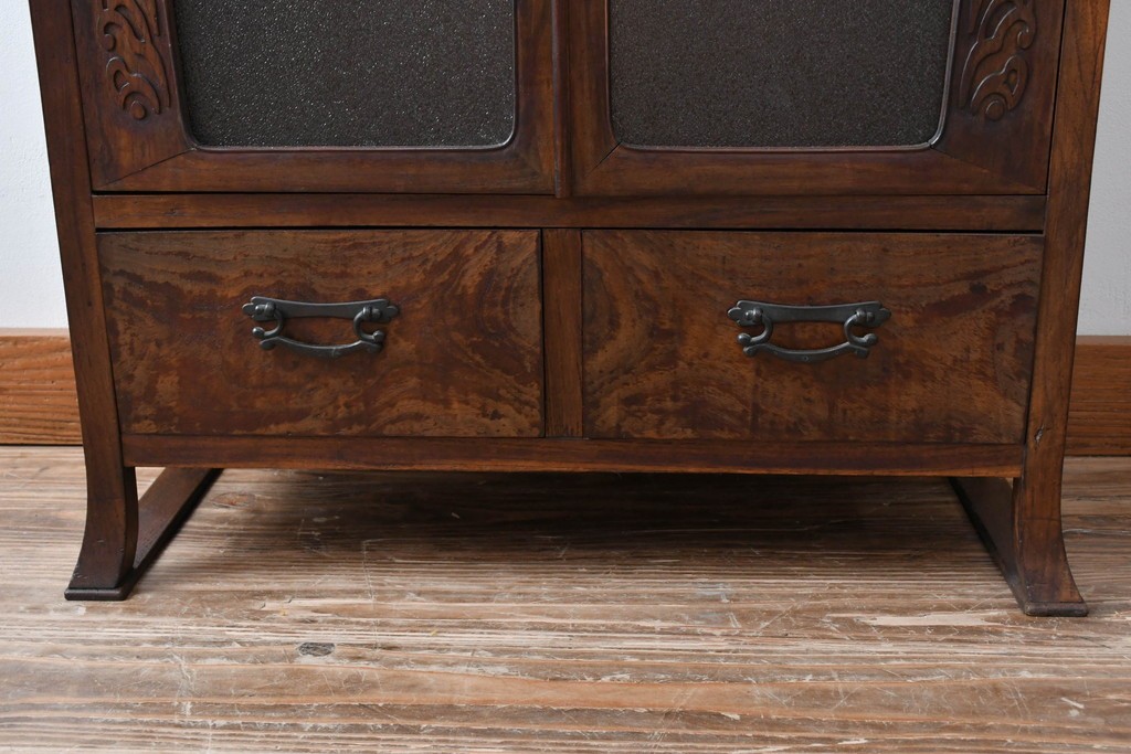民芸家具 > 和製ビンテージ 指物工芸家具 李朝デザイン 前面桑(クワ)材 天板・側面キハダ材 可愛らしい装飾が遊び心をくすぐる小振りな収納棚 (R-078975)