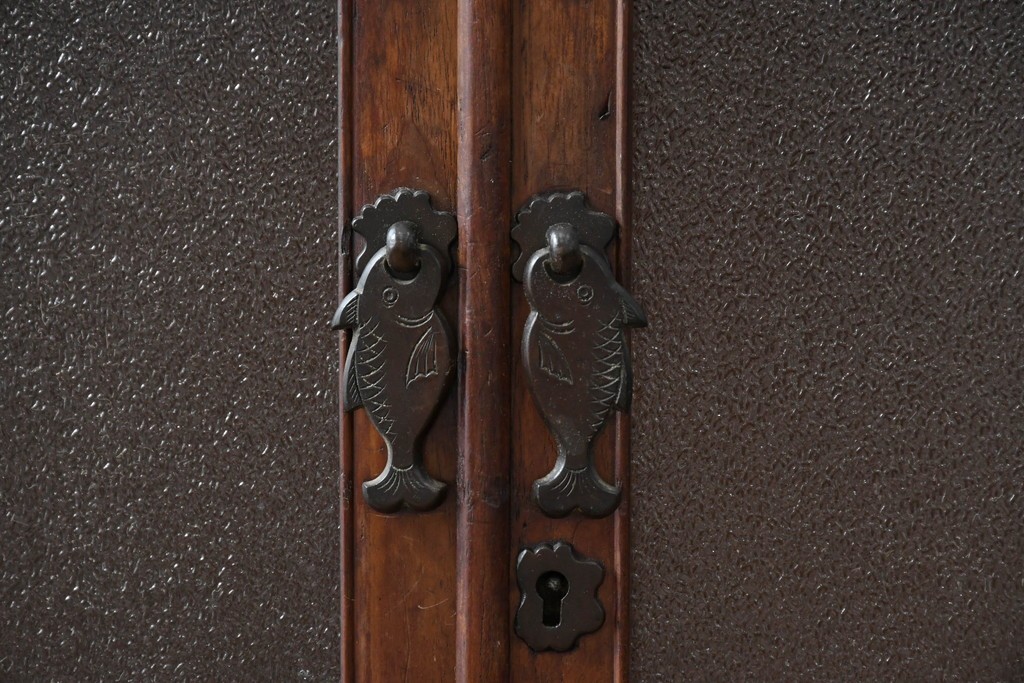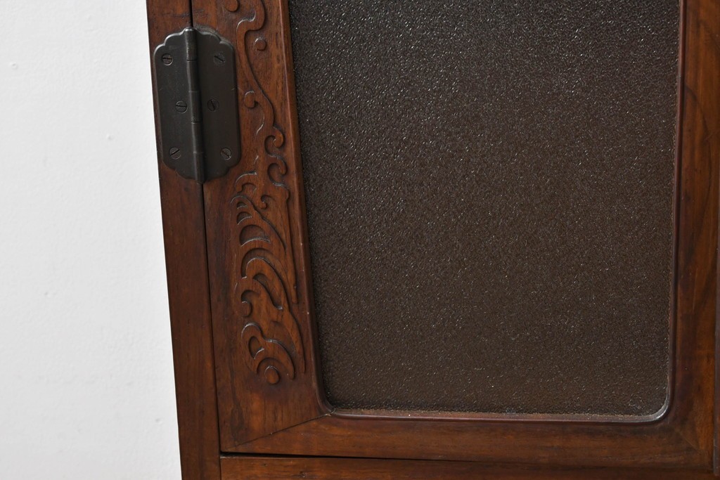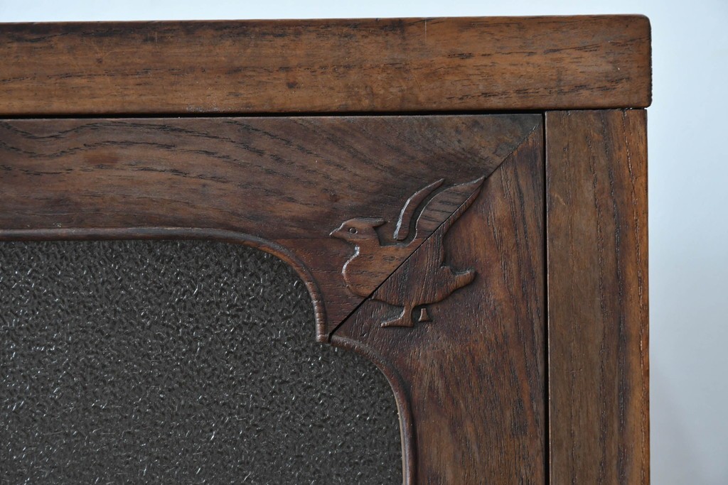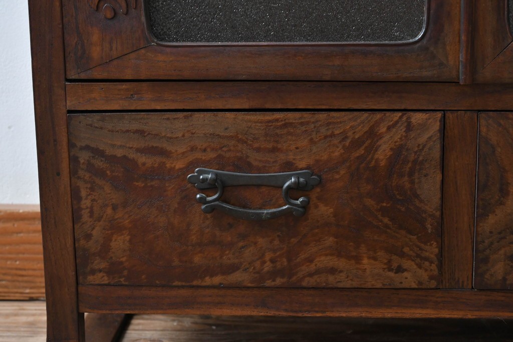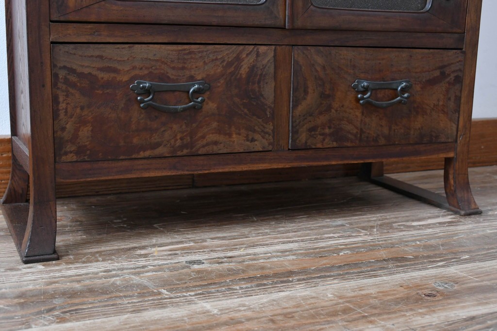 キャビネット・戸棚 > 和製ビンテージ 指物工芸家具 李朝デザイン 前面桑(クワ)材 天板・側面キハダ材 可愛らしい装飾が遊び心をくすぐる小振りな収納棚 (R-078975)