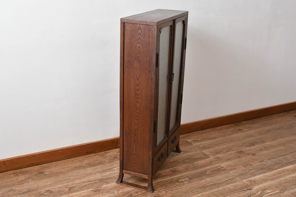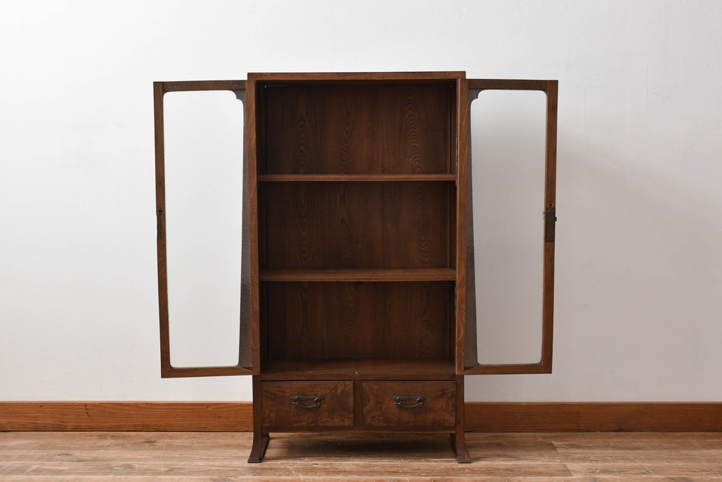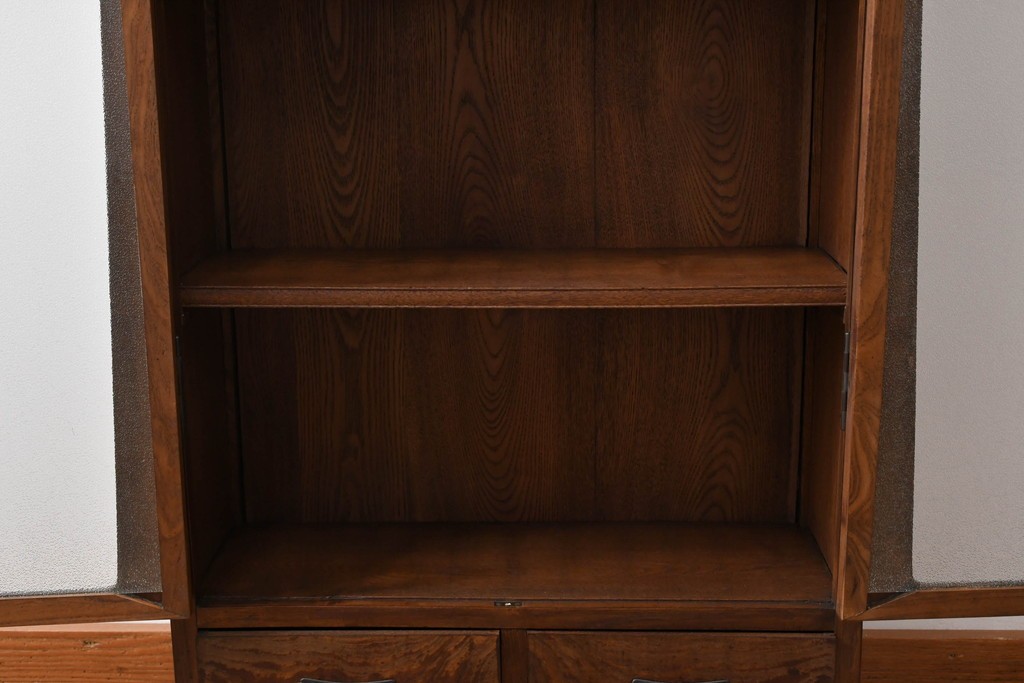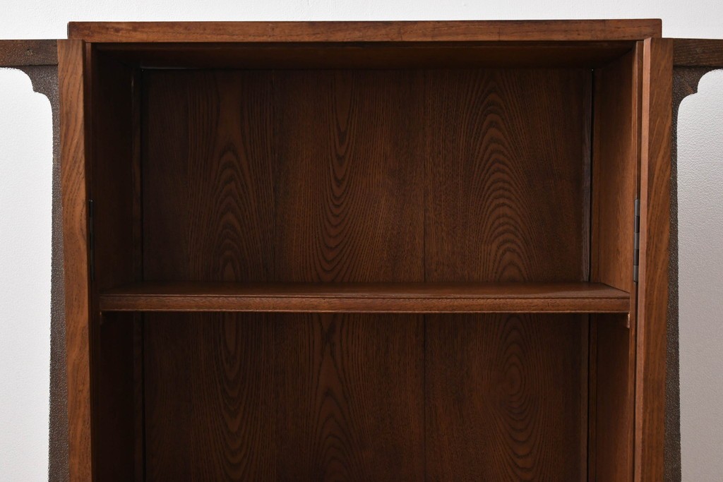 キャビネット・戸棚> 本箱 > 和製ビンテージ 指物工芸家具 李朝デザイン 前面桑(クワ)材 天板・側面キハダ材 可愛らしい装飾が遊び心をくすぐる小振りな収納棚 (R-078975)