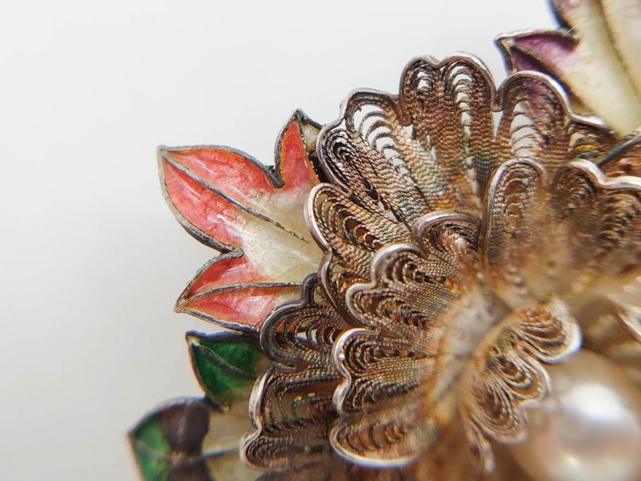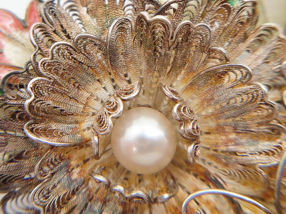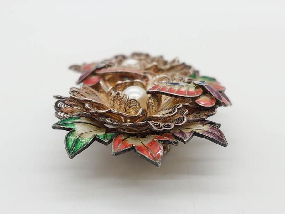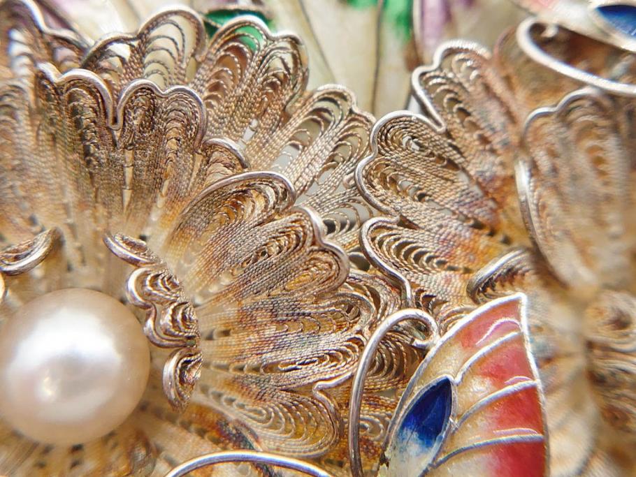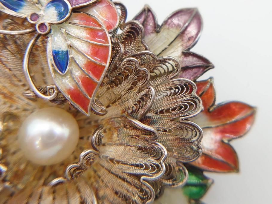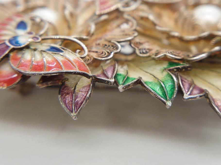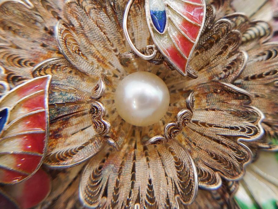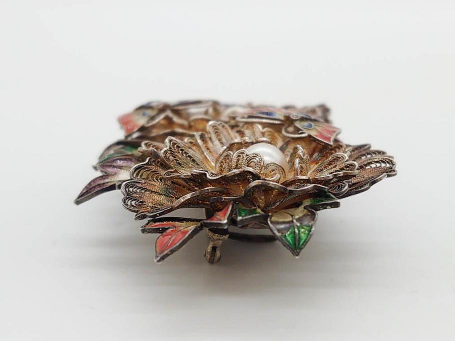 ラフジュ工房> アクセサリー > 希少 アンティーク 金工 舞妓用 パール(真珠) 鮮やかな蝶と繊細な花の細工が目を引く豪華な帯留(ぽっちり、帯留め、着物道具、和装小物、アクセサリー、ブローチ、ケース付き)(R-078991)