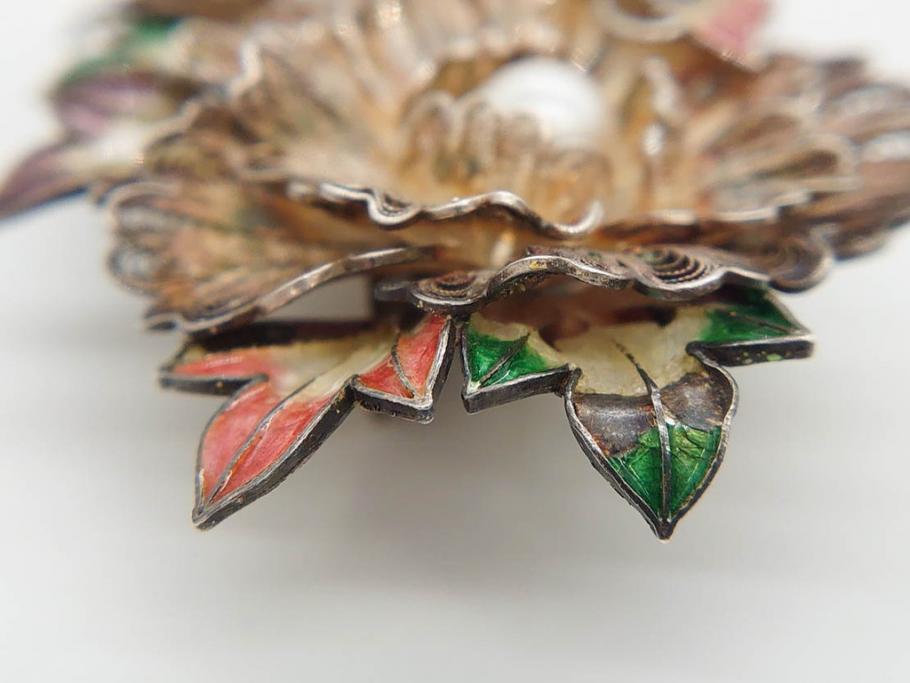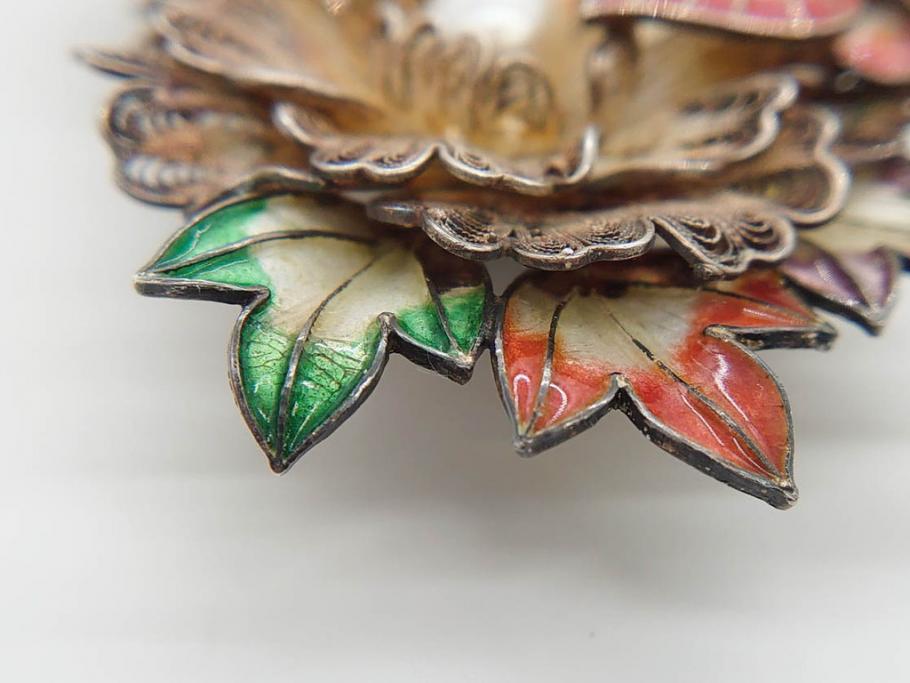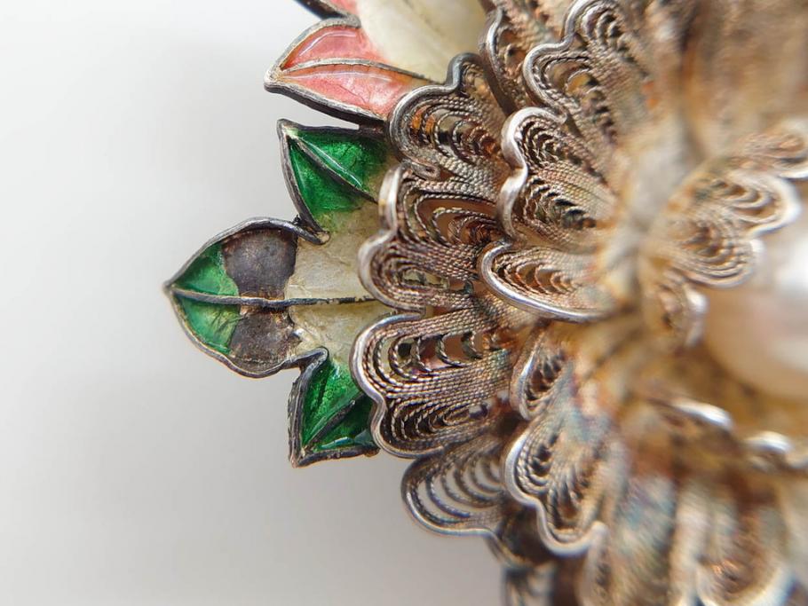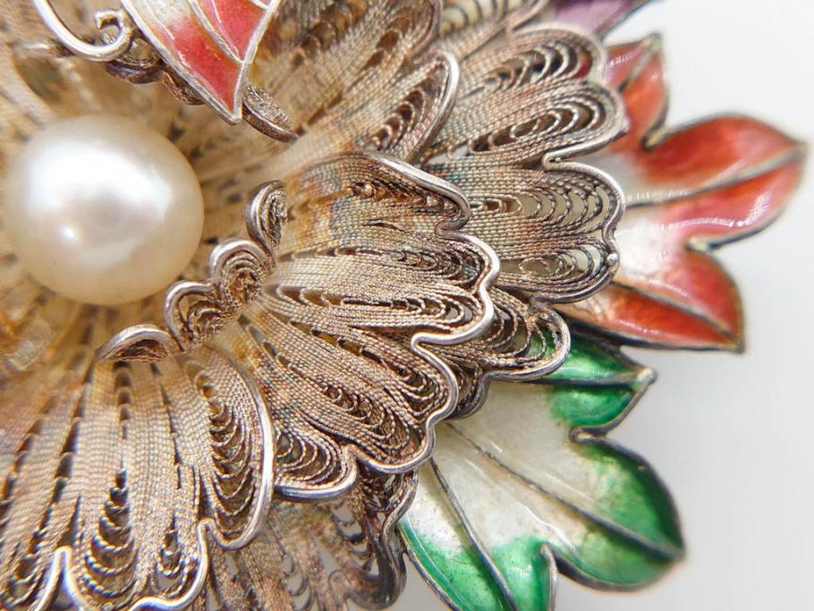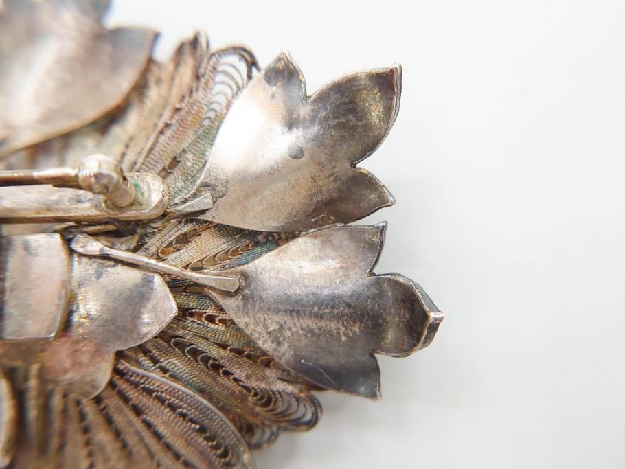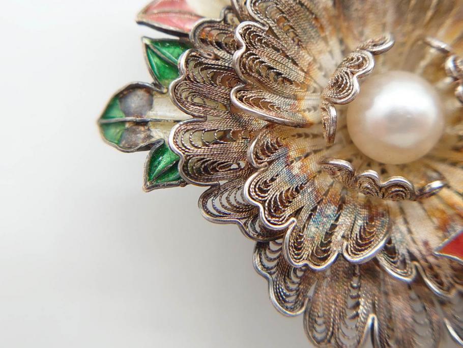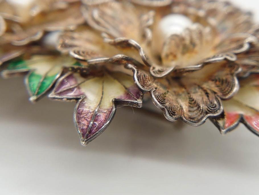 ラフジュ工房> アクセサリー > 希少 アンティーク 金工 舞妓用 パール(真珠) 鮮やかな蝶と繊細な花の細工が目を引く豪華な帯留(ぽっちり、帯留め、着物道具、和装小物、アクセサリー、ブローチ、ケース付き)(R-078991)