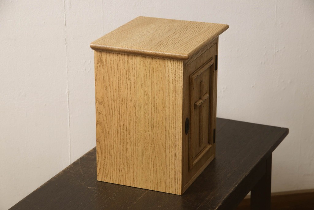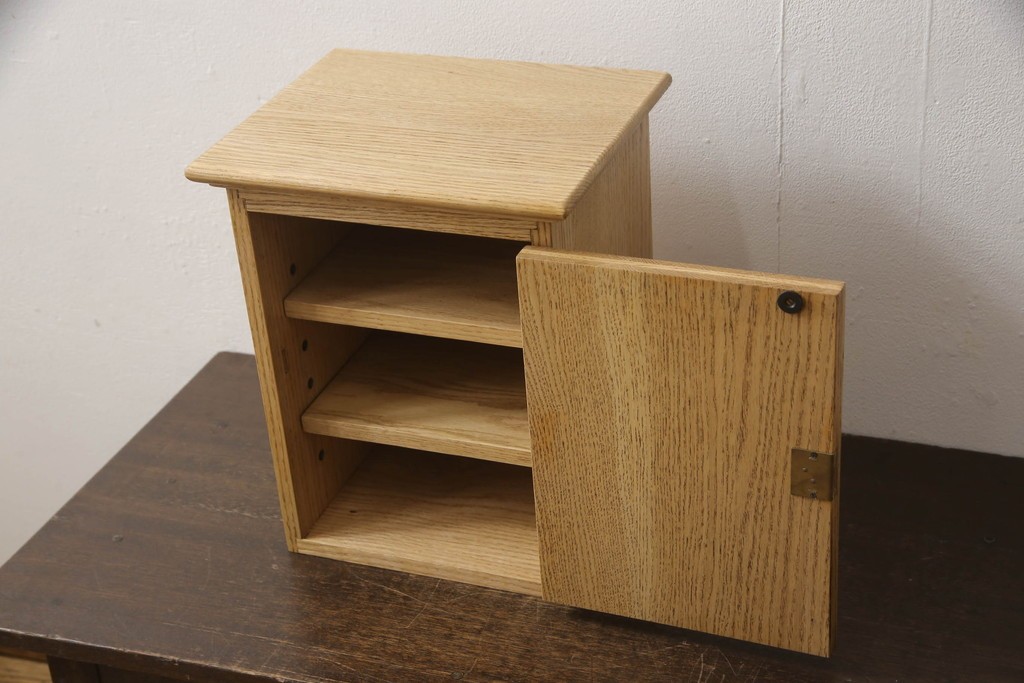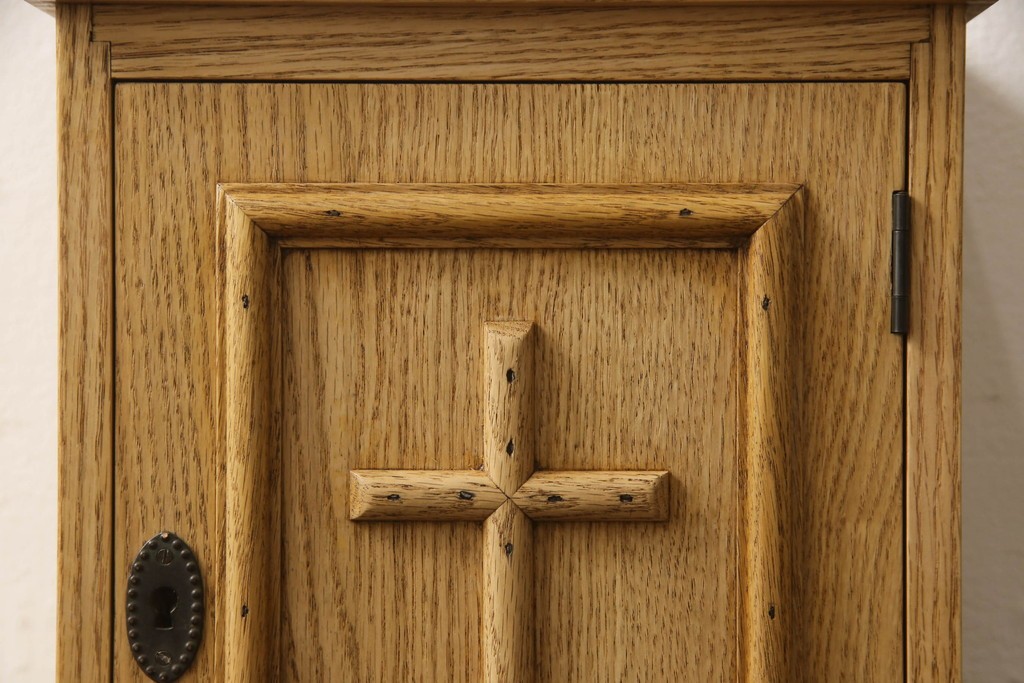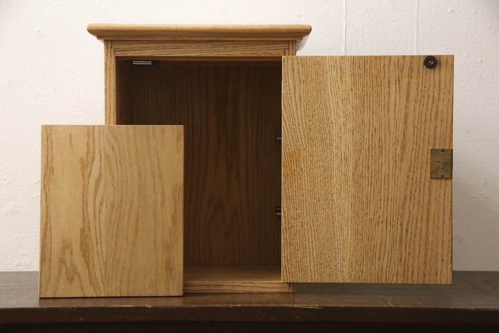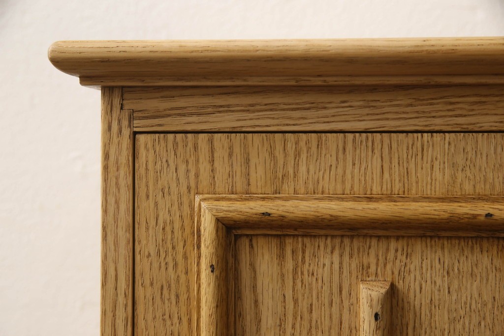 キャビネット・戸棚> サイドキャビネット > キャビネットを新規製作!オーク材を使用し、ご希望のサイズ、デザインにて製作。支給の鍵を取り付け、内部は棚板2枚の仕様。仕上げはアンティーク加工。(収納棚、戸棚、サイドボード)