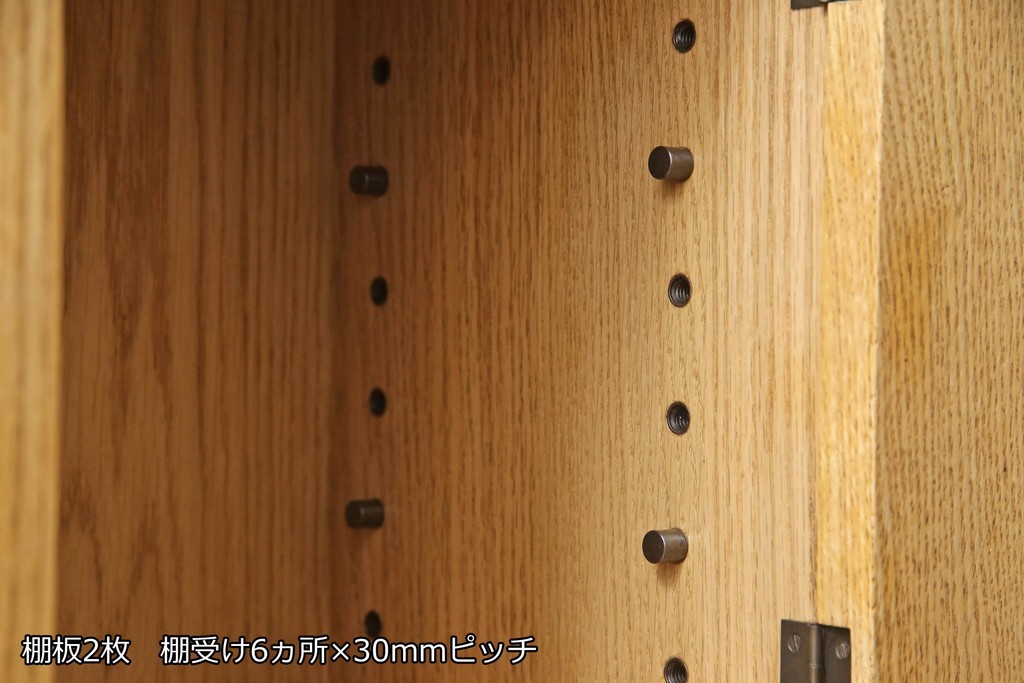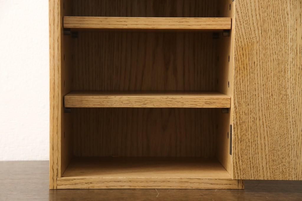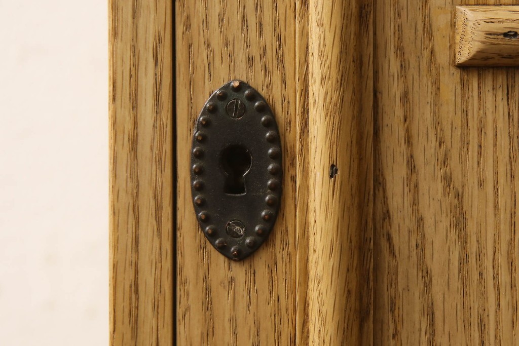 フルオーダー家具実績 > キャビネットを新規製作!オーク材を使用し、ご希望のサイズ、デザインにて製作。支給の鍵を取り付け、内部は棚板2枚の仕様。仕上げはアンティーク加工。(収納棚、戸棚、サイドボード)