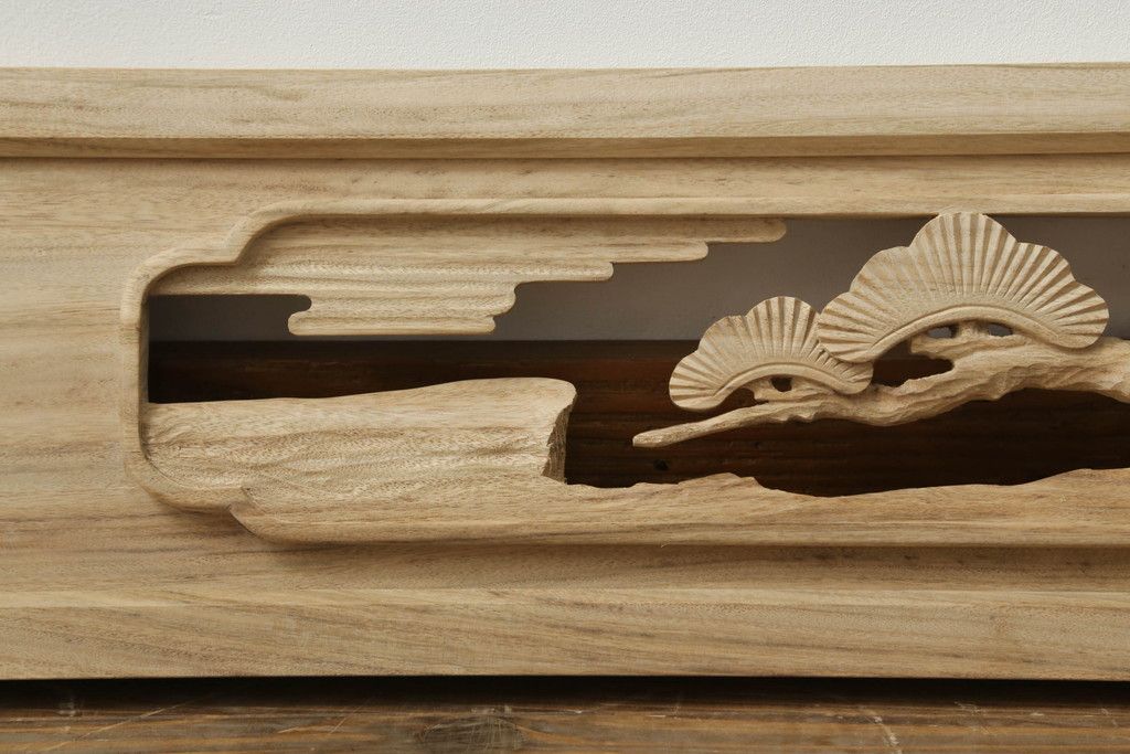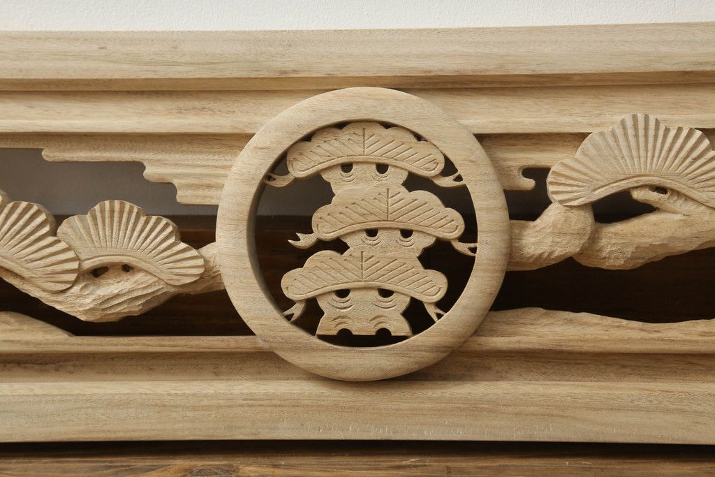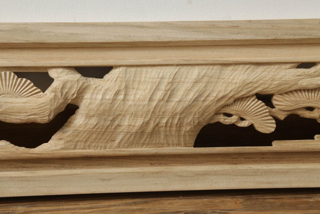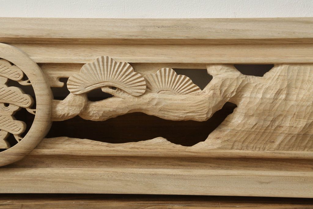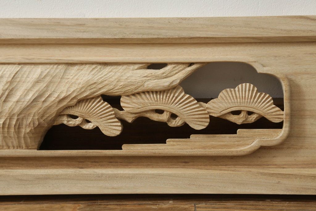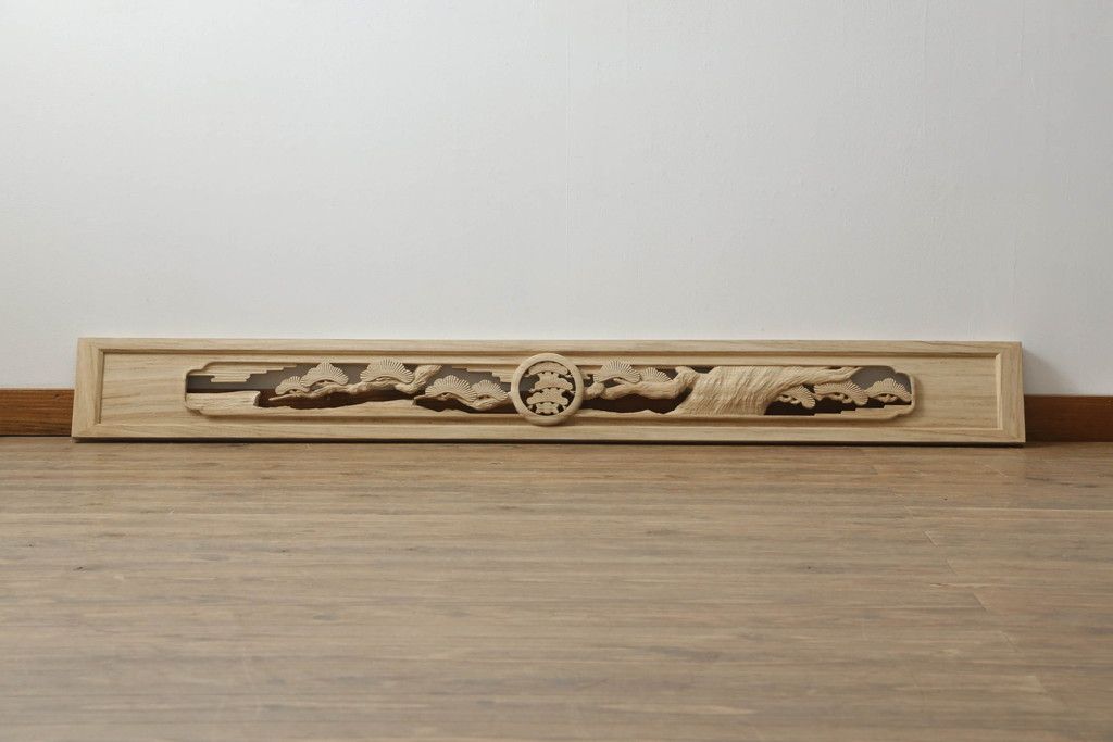 フルオーダー家具実績 > 欄間を新規製作!ご希望のサイズで、デザインは中央に家紋、まわりに松の彫刻。色味は提供いただいた画像に近しい色味で着色。(明かり取り、明り取り、建具)