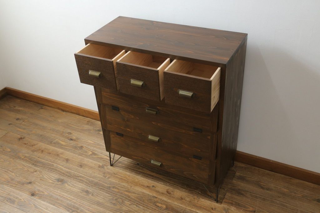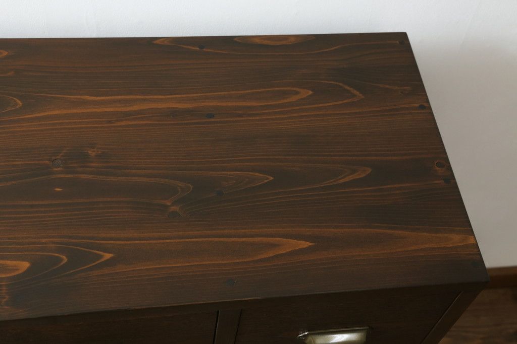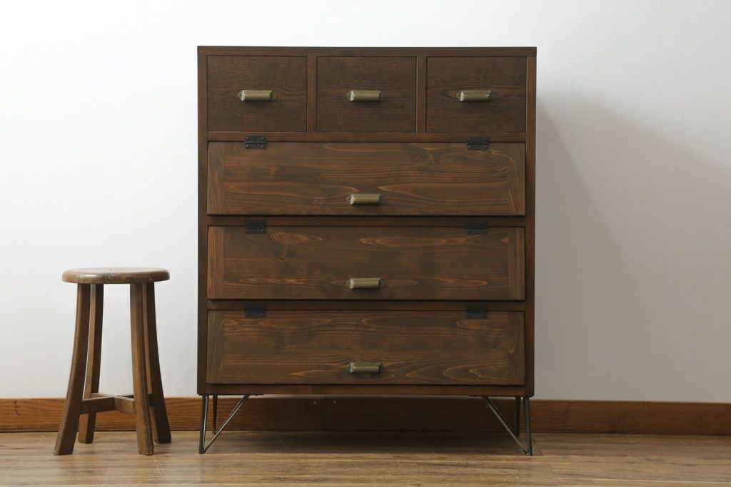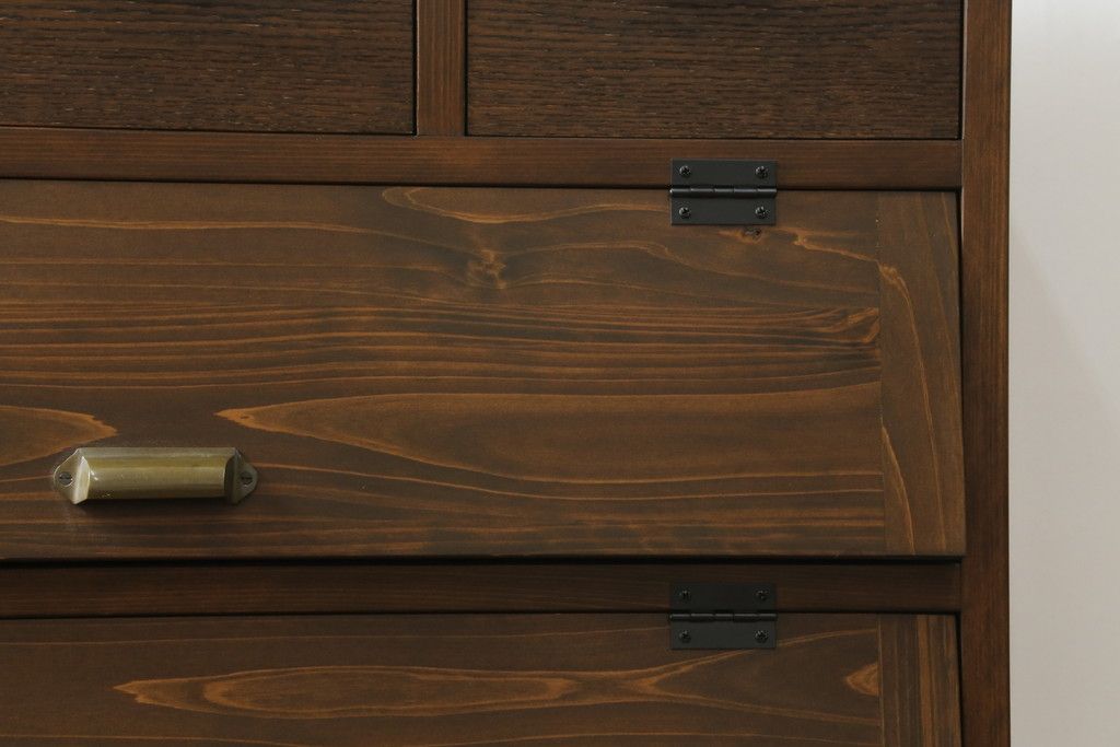 ワードローブ・ロッカー > パタパタ収納棚を新規製作!当店のオーダー家具を参考に、一番上に3杯の引き出し、パタパタ収納部は3段の仕様にて。(戸棚、キャビネット、サイドボード、ロッカー)