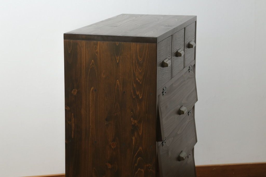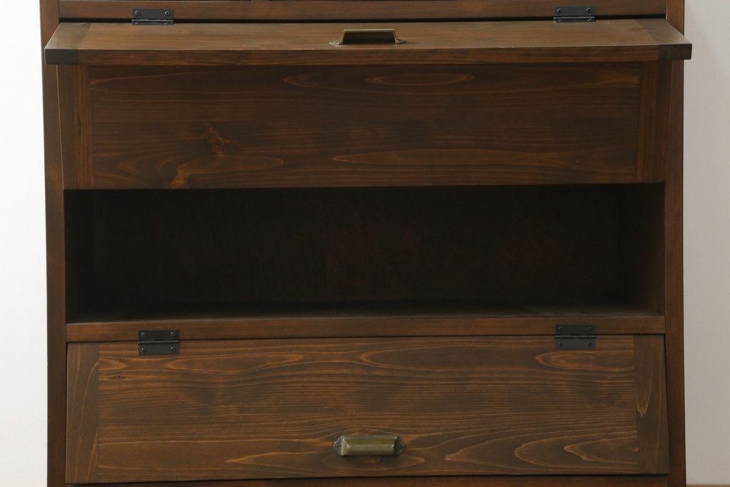 キャビネット・戸棚> サイドキャビネット > パタパタ収納棚を新規製作!当店のオーダー家具を参考に、一番上に3杯の引き出し、パタパタ収納部は3段の仕様にて。(戸棚、キャビネット、サイドボード、ロッカー)