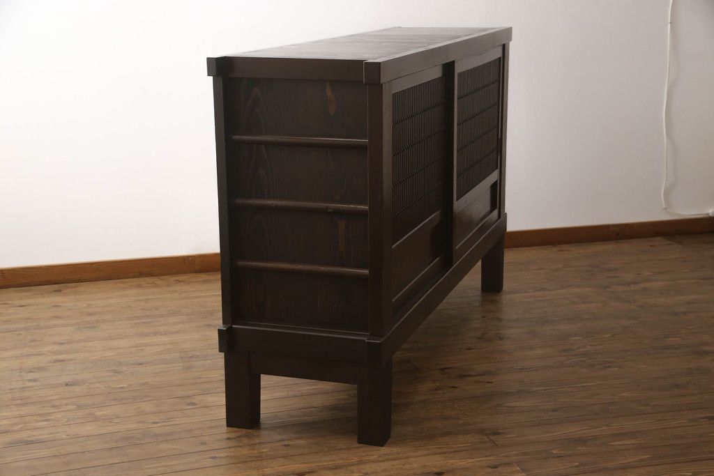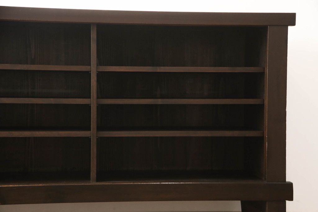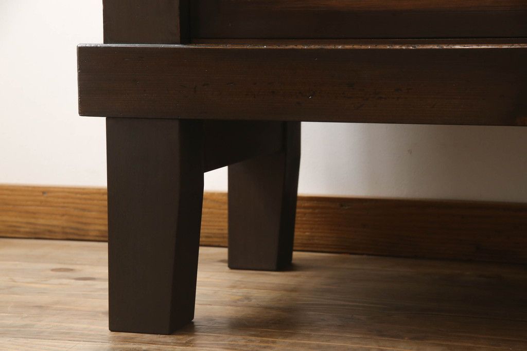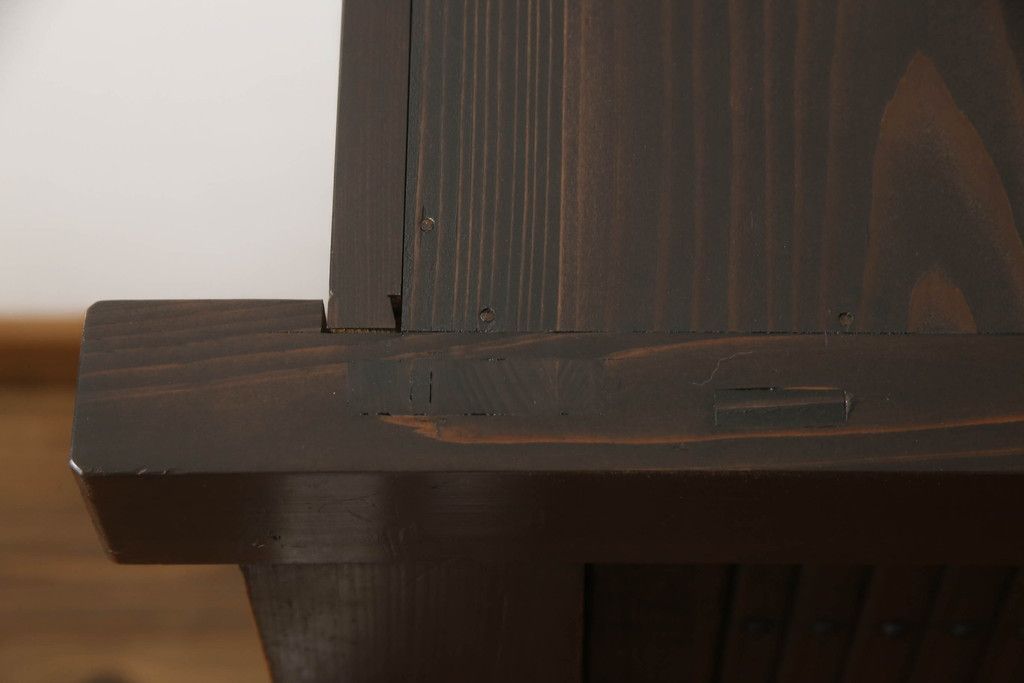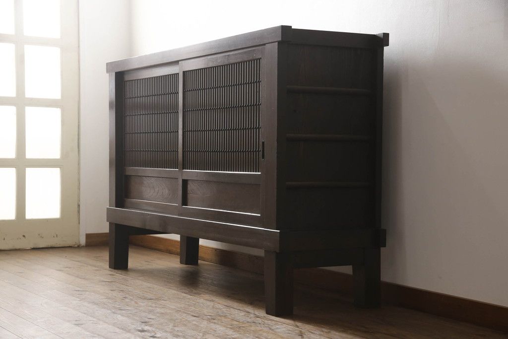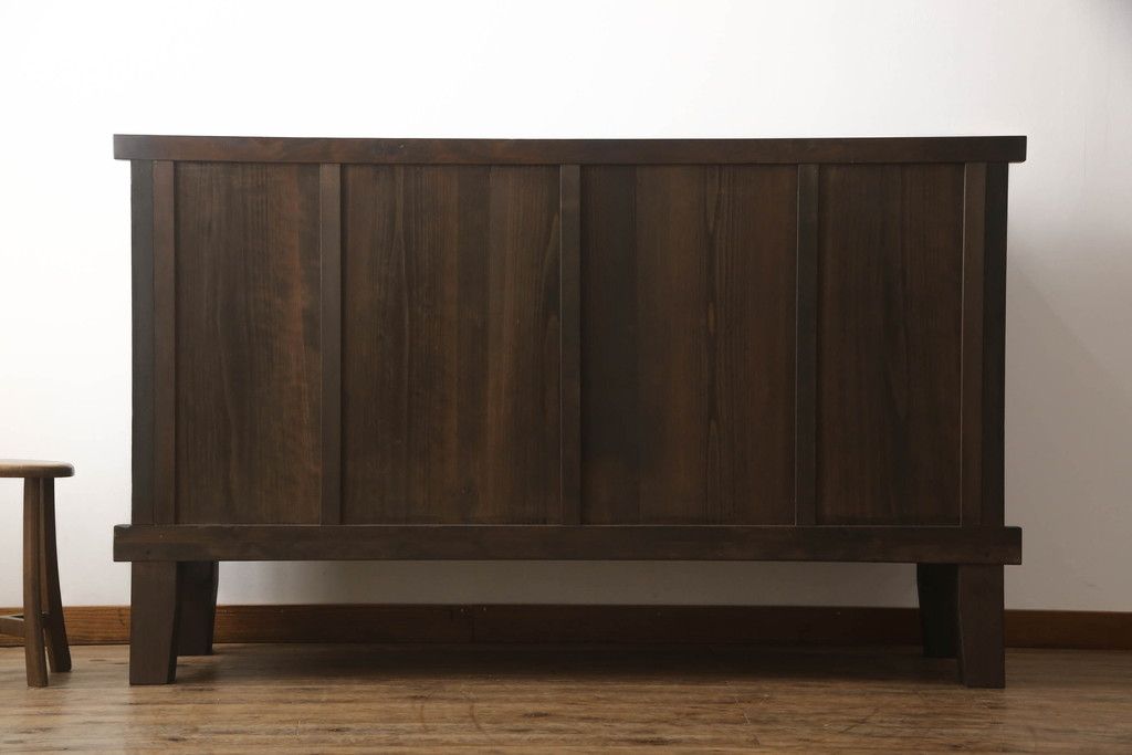 和箪笥> 水屋箪笥 > 水屋箪笥サイドボードをリペア&カスタム!前回購入いただいた脚とデザインの同じものを取り付け、棚内部は元からある棚を取り外し、中央で分割して新しく棚を取り付け。色味は現状の色味をベースに仕上げ。新規製作部分は本体に色合わせ。(収納棚、戸棚、キャビネット)