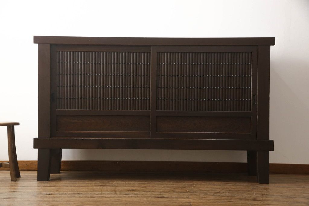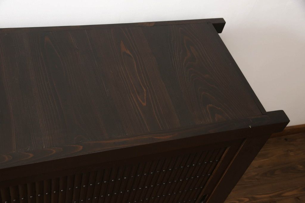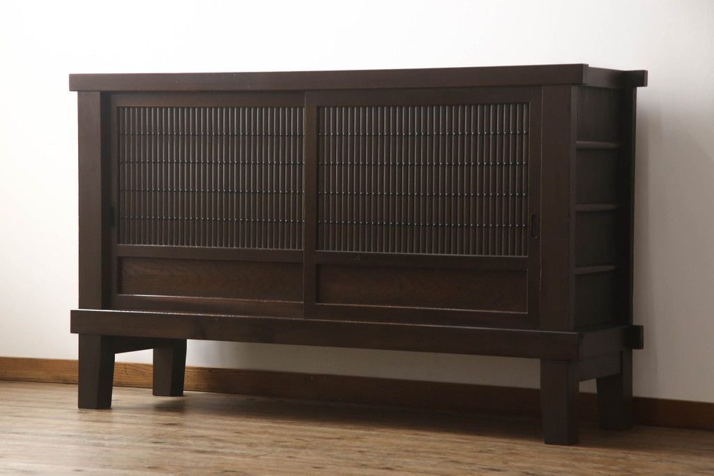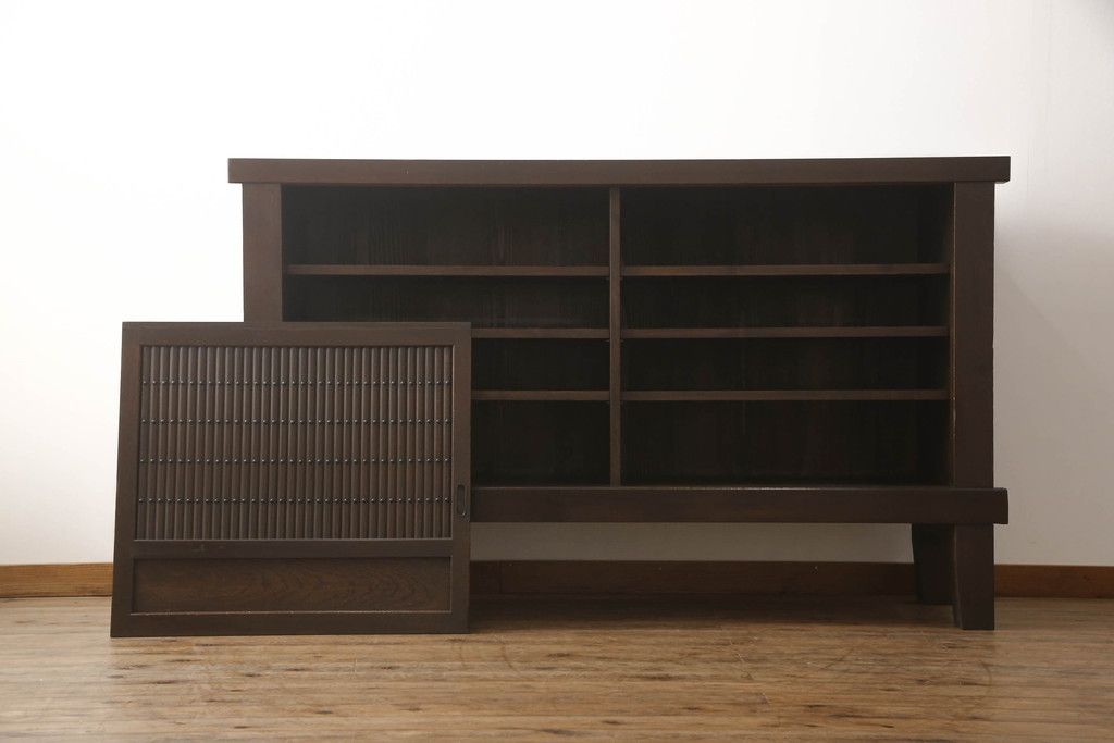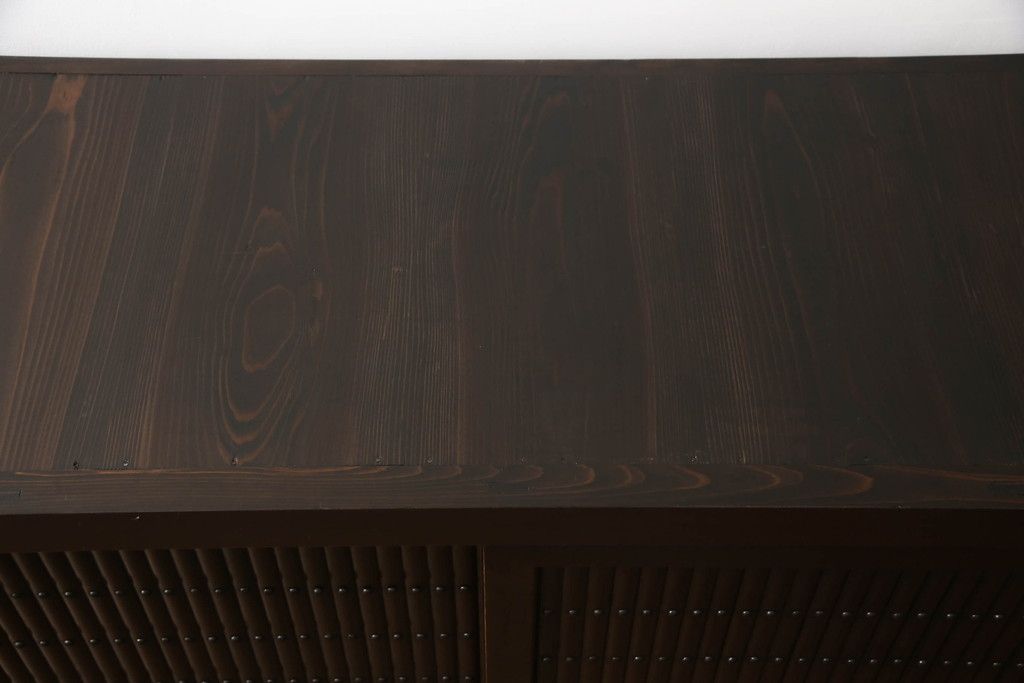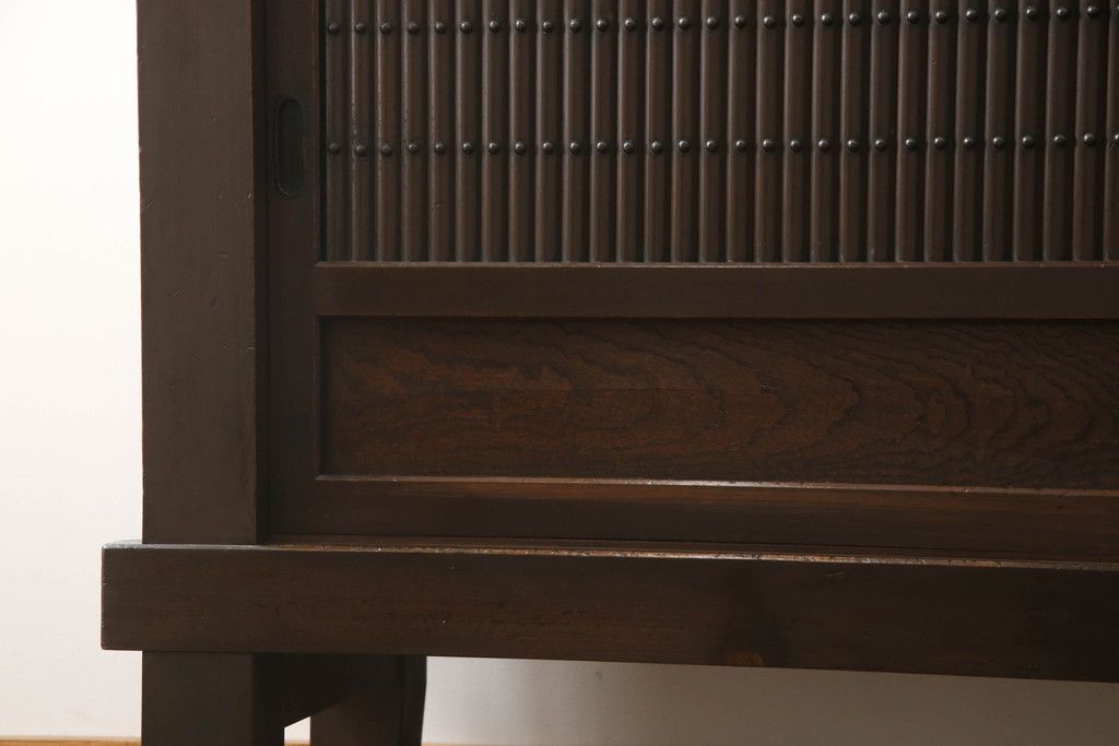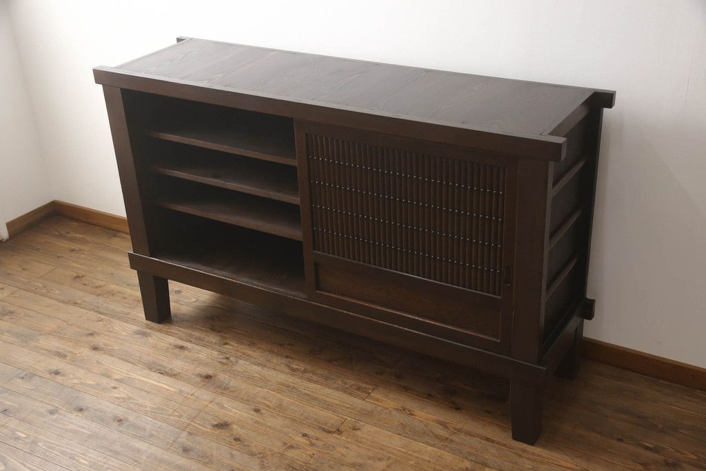和箪笥> 水屋箪笥 > 水屋箪笥サイドボードをリペア&カスタム!前回購入いただいた脚とデザインの同じものを取り付け、棚内部は元からある棚を取り外し、中央で分割して新しく棚を取り付け。色味は現状の色味をベースに仕上げ。新規製作部分は本体に色合わせ。(収納棚、戸棚、キャビネット)