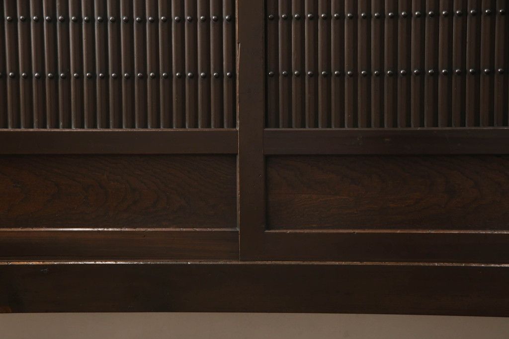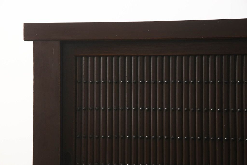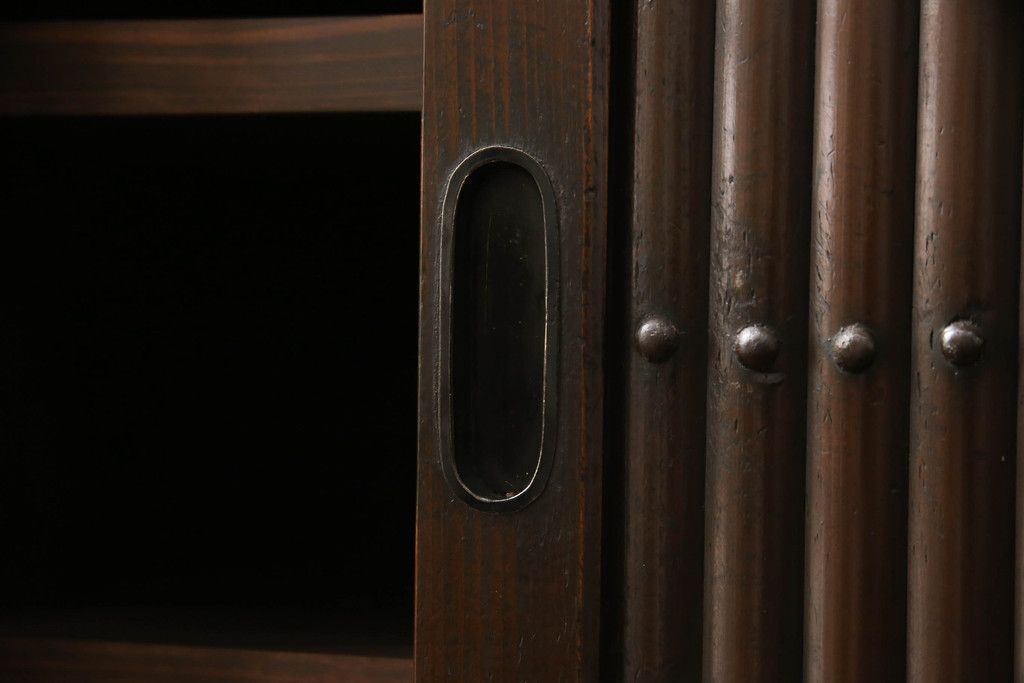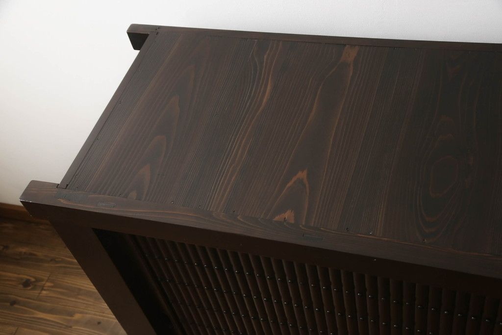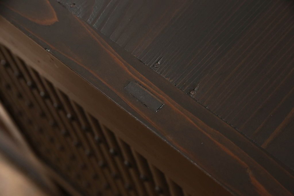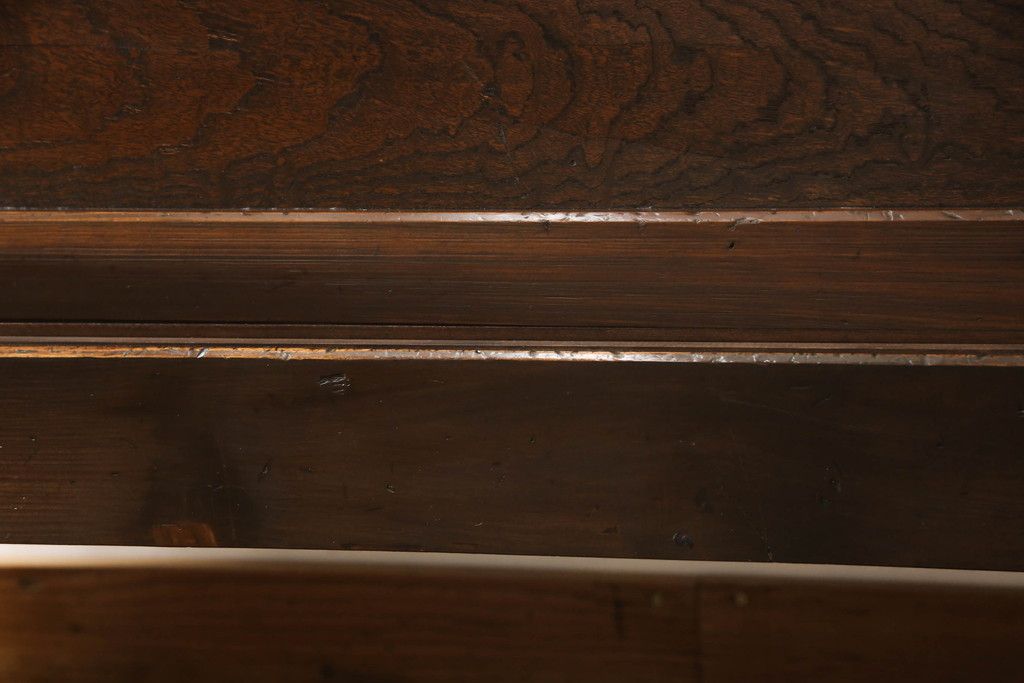和箪笥> 水屋箪笥 > 水屋箪笥サイドボードをリペア&カスタム!前回購入いただいた脚とデザインの同じものを取り付け、棚内部は元からある棚を取り外し、中央で分割して新しく棚を取り付け。色味は現状の色味をベースに仕上げ。新規製作部分は本体に色合わせ。(収納棚、戸棚、キャビネット)