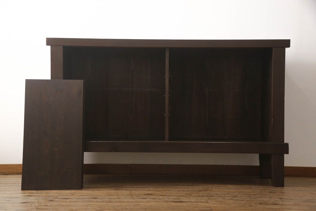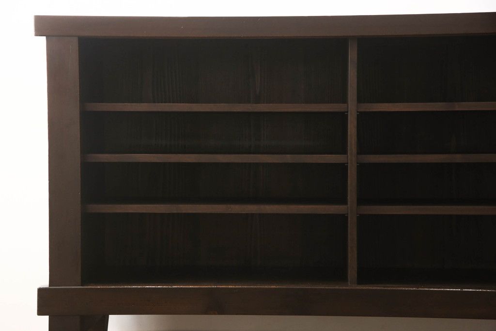 水屋箪笥サイドボードをリペア&カスタム!前回購入いただいた脚とデザインの同じものを取り付け、棚内部は元からある棚を取り外し、中央で分割して新しく棚を取り付け。色味は現状の色味をベースに仕上げ。新規製作部分は本体に色合わせ。(収納棚、戸棚、キャビネット)