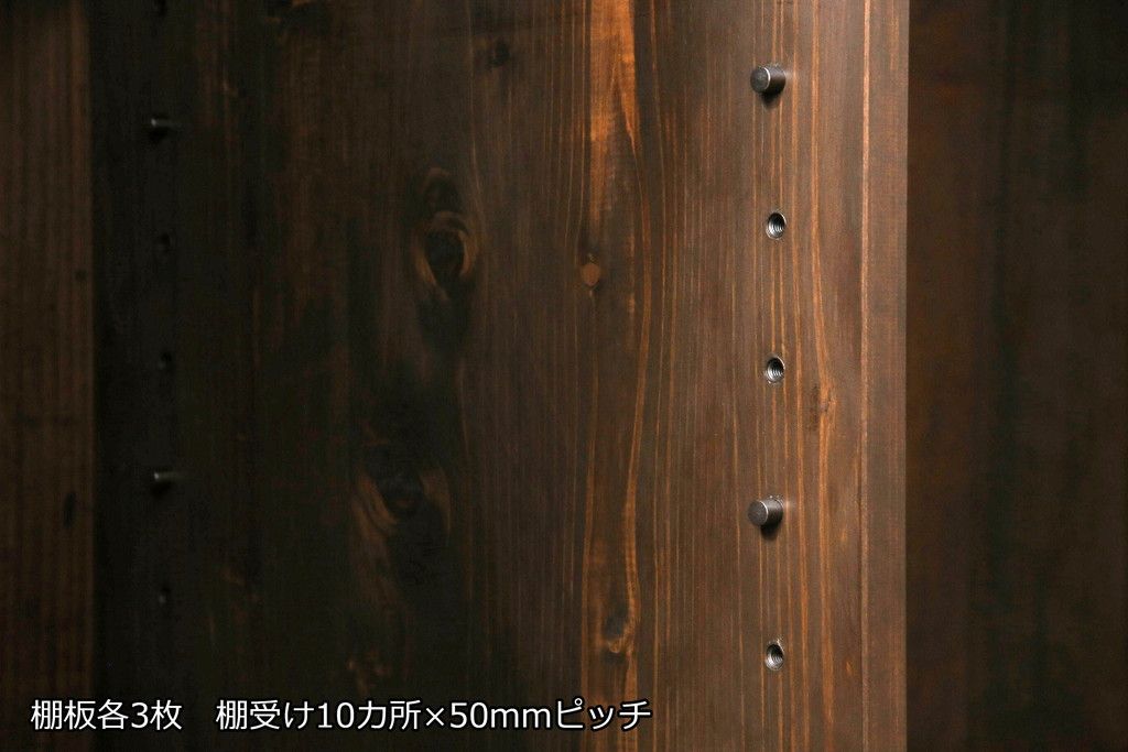 ┗棚板は棚幅サイズのものを左右各3枚ずつの計6枚、取り外しができる仕様に