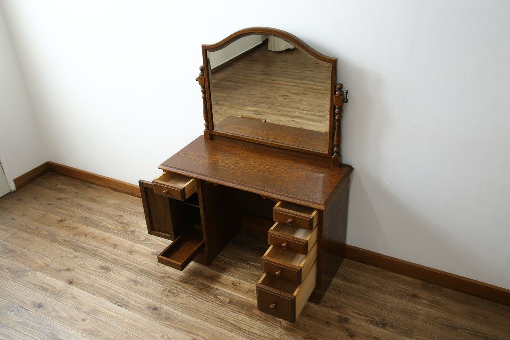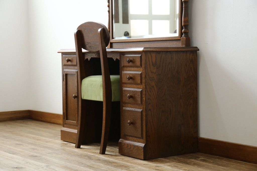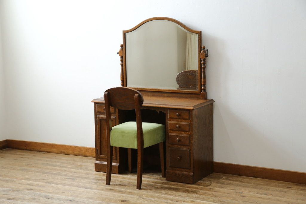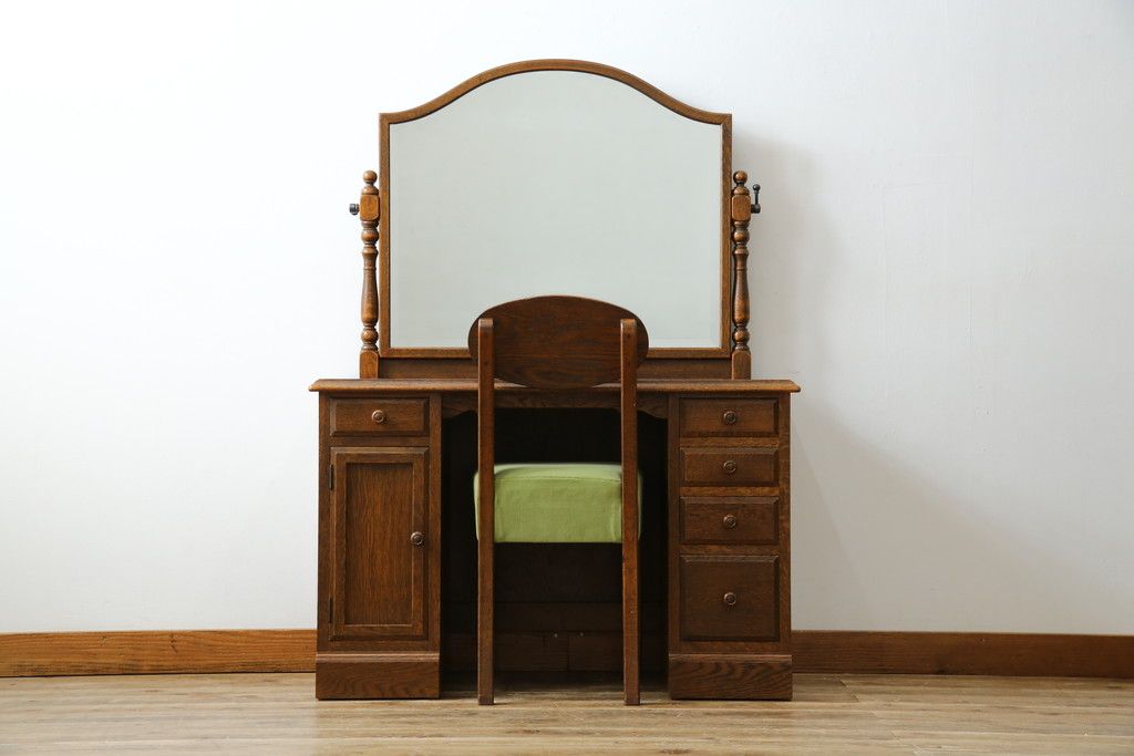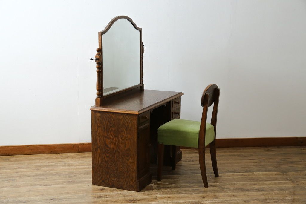中古 三越家具(現カントリーハウス) Brugge(ブルージュ) オーク材 クラシカルな雰囲気漂うドレッサーとチェアのセット(化粧台、鏡台、ミラー、イス、椅子)(R-079202)です。