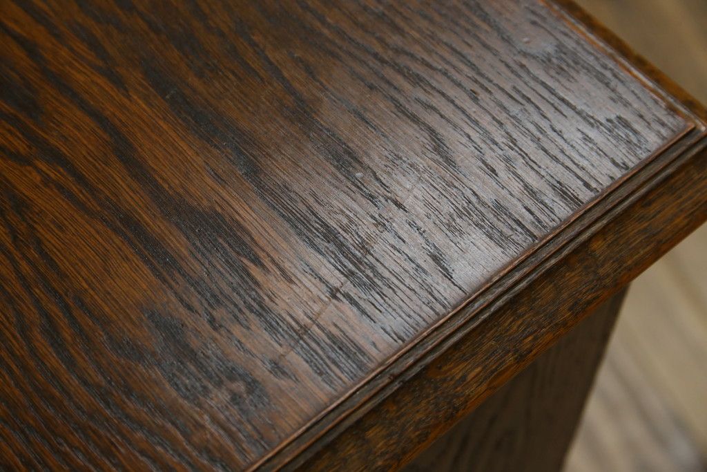 天板は当店でクリア塗装を施しております。小キズ等が目立ちにくく、耐水性と耐久性に優れたお手入れがしやすい仕上げです。