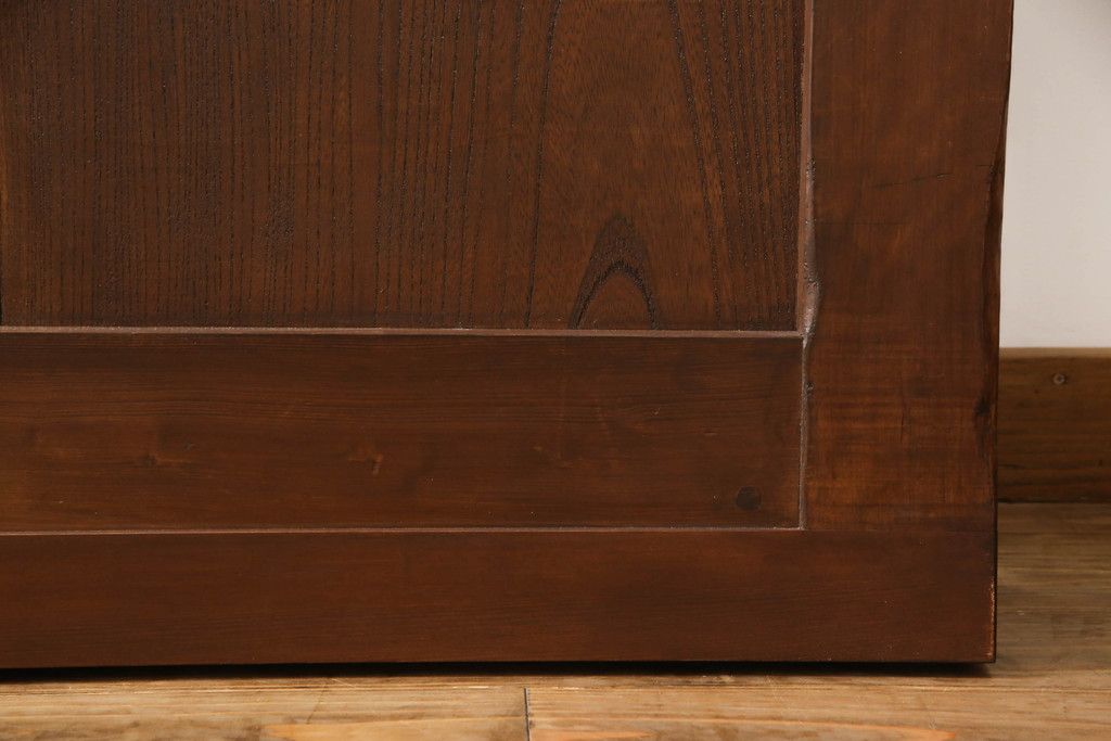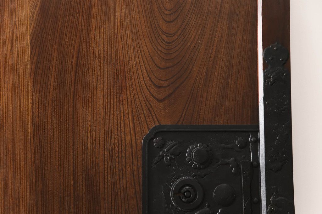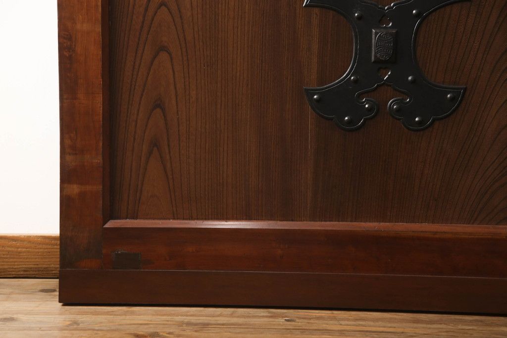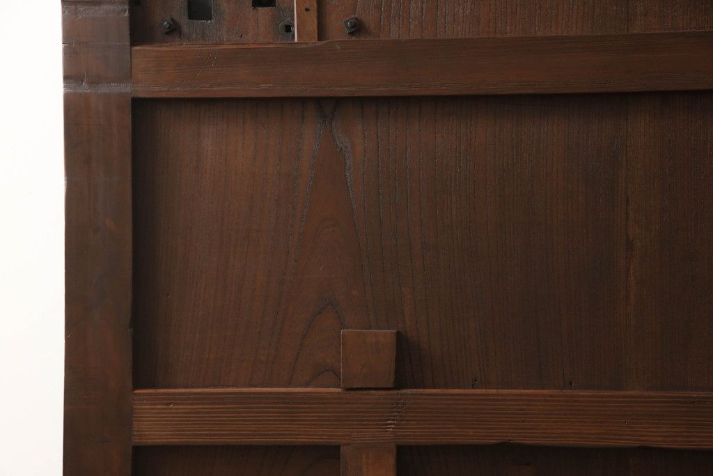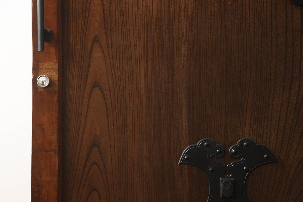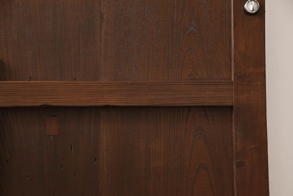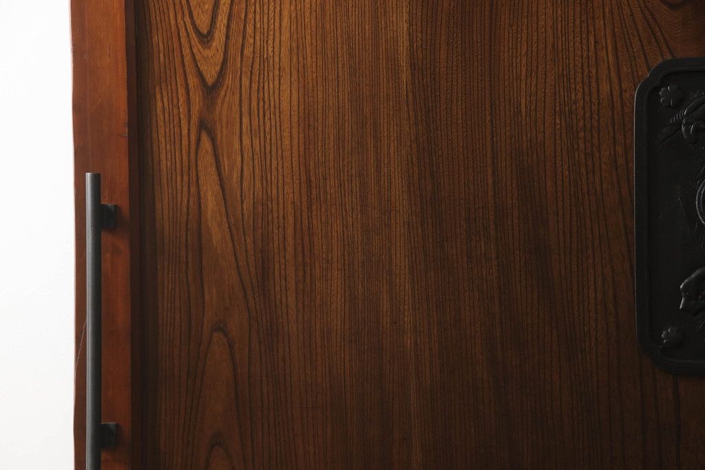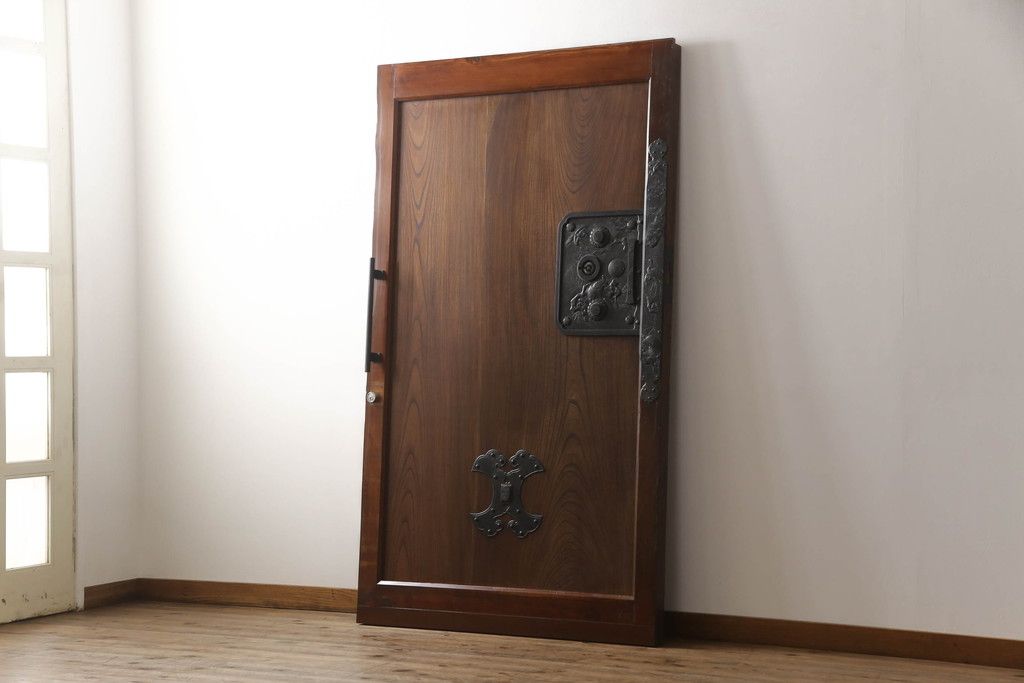 セミオーダー家具実績 > 蔵戸をリペア&カスタム!高さと幅をリサイズし、アイアン製のドアハンドルを取り付け。戸枠を製作し、蔵戸を戸枠に合わせた上下の加工。既存の色味を活かして着色。(引き戸、玄関戸、板戸)