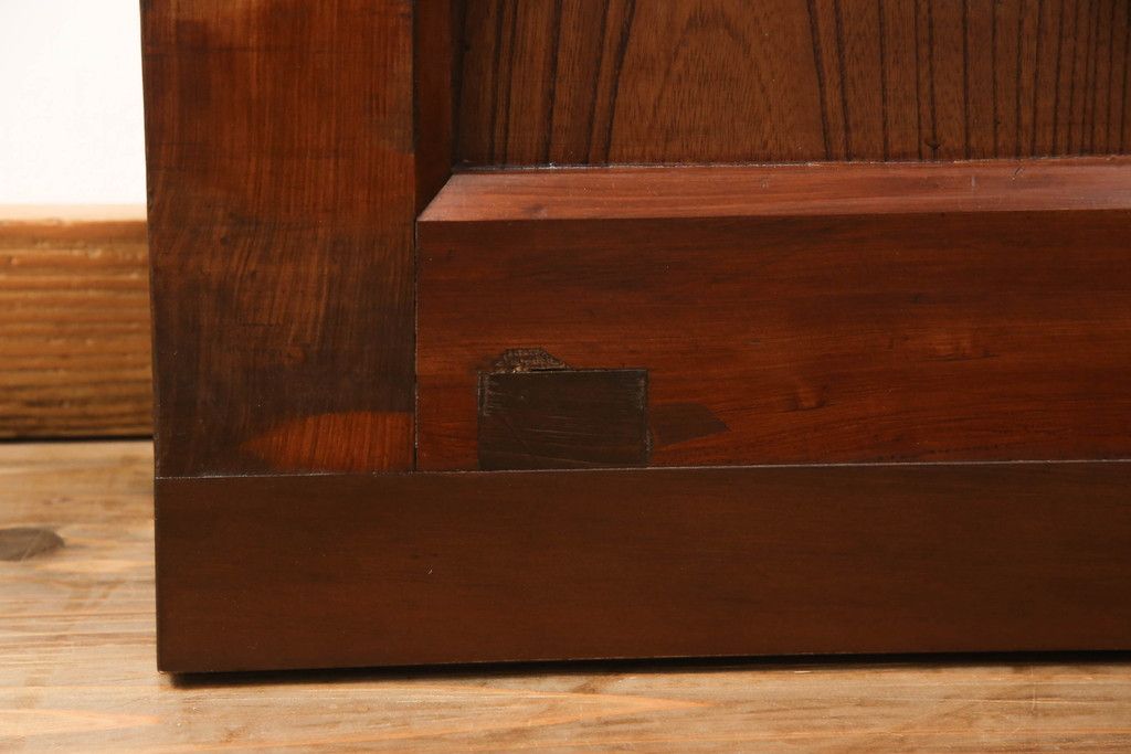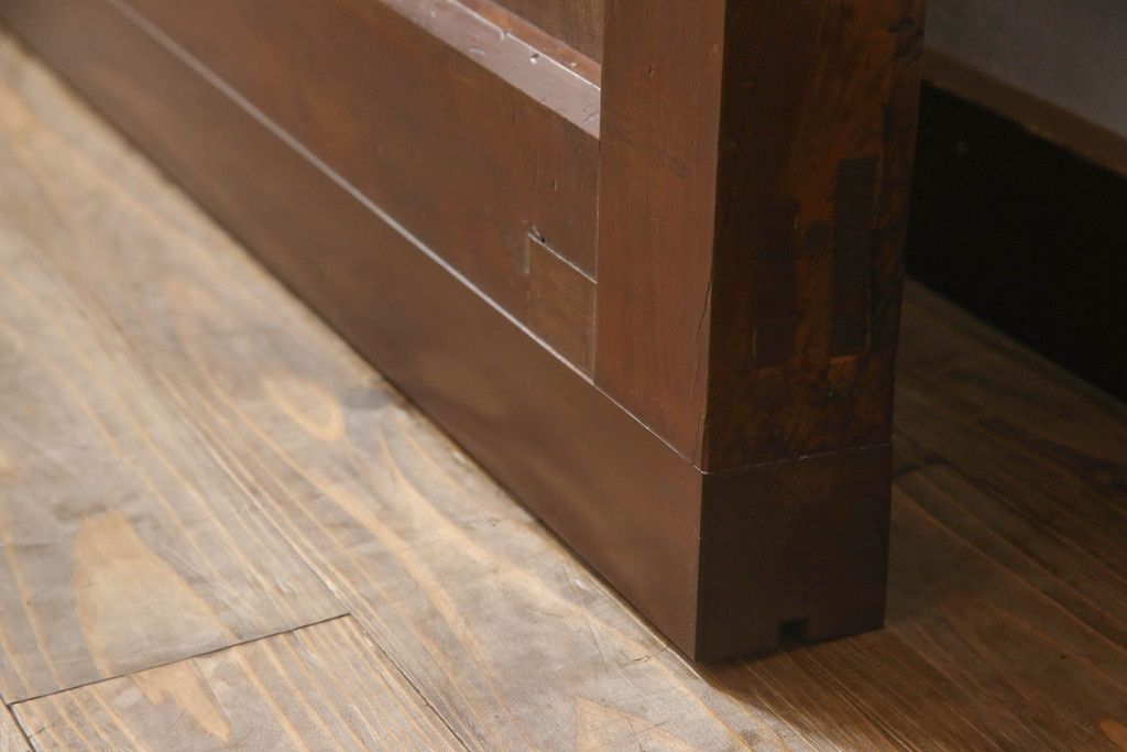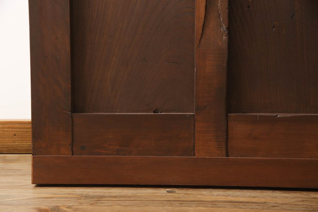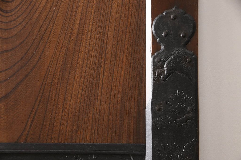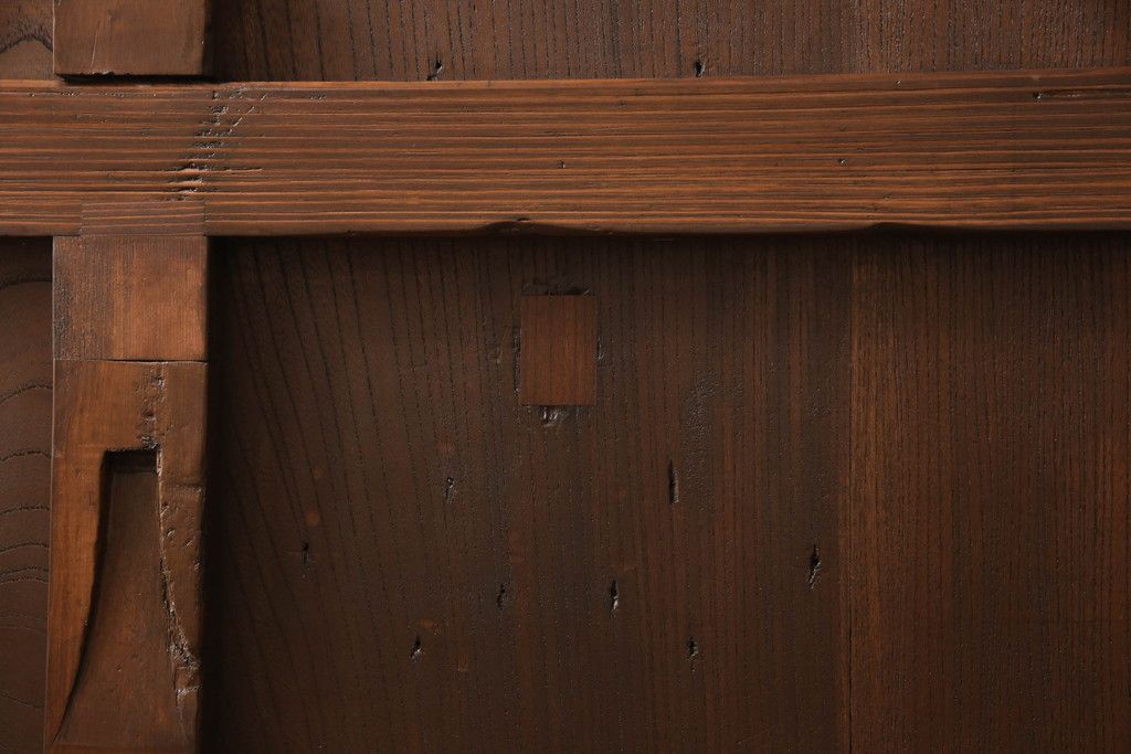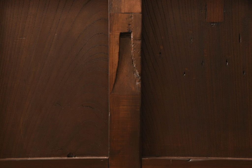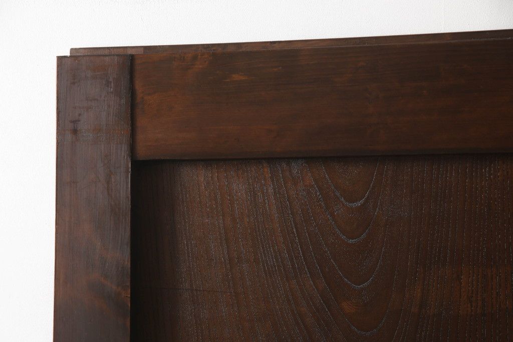 セミオーダー家具実績 > 蔵戸をリペア&カスタム!高さと幅をリサイズし、アイアン製のドアハンドルを取り付け。戸枠を製作し、蔵戸を戸枠に合わせた上下の加工。既存の色味を活かして着色。(引き戸、玄関戸、板戸)