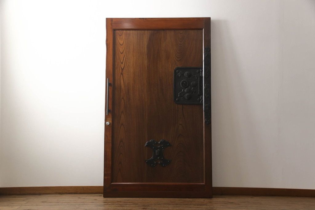 ドア・建具> 玄関ドア・玄関戸 > 蔵戸をリペア&カスタム!高さと幅をリサイズし、アイアン製のドアハンドルを取り付け。戸枠を製作し、蔵戸を戸枠に合わせた上下の加工。既存の色味を活かして着色。(引き戸、玄関戸、板戸)