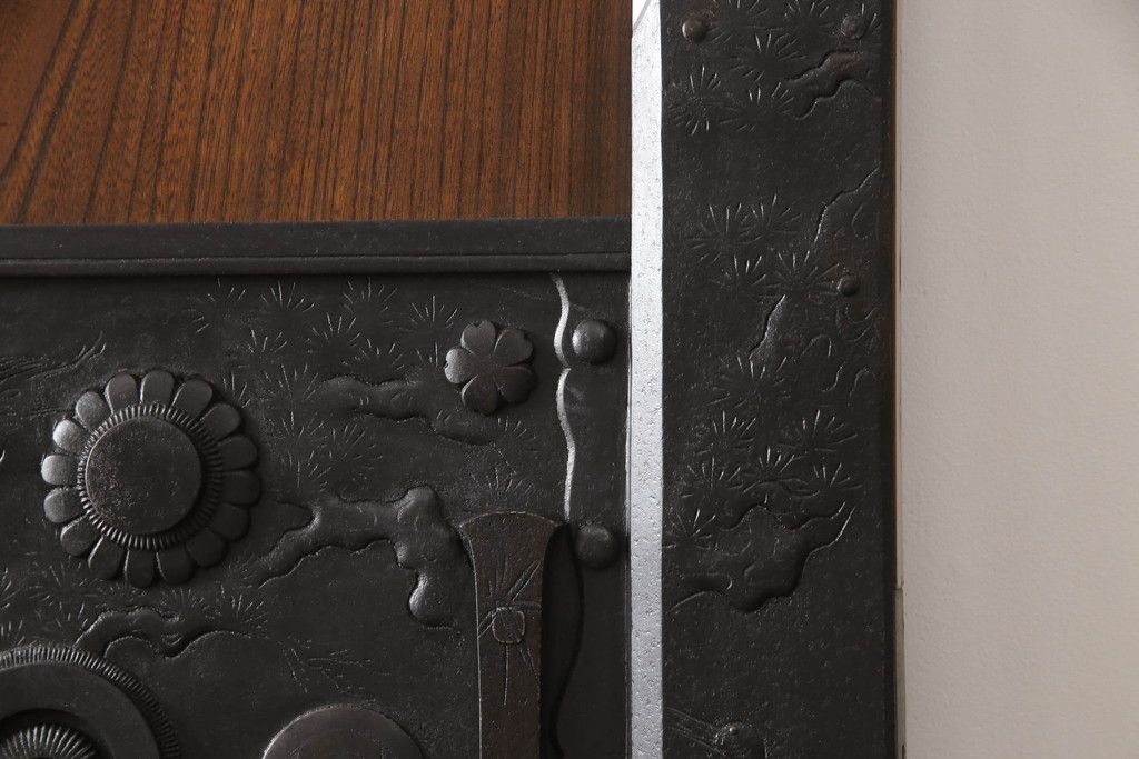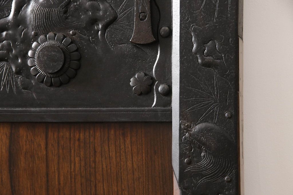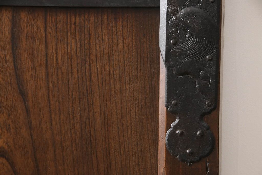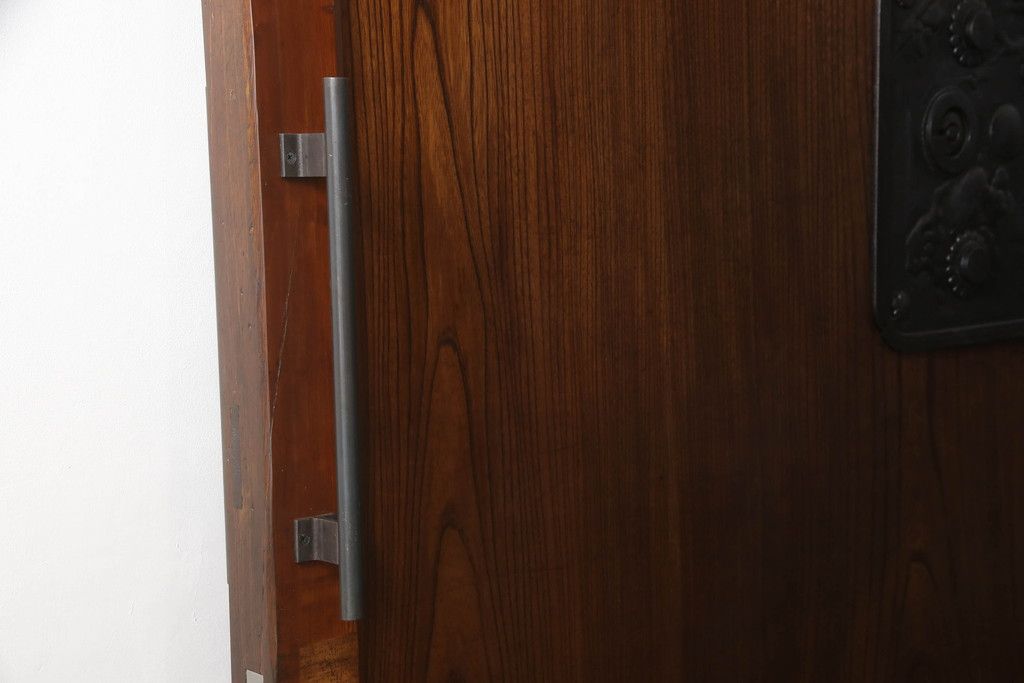 ドア・建具> 蔵戸 > 蔵戸をリペア&カスタム!高さと幅をリサイズし、アイアン製のドアハンドルを取り付け。戸枠を製作し、蔵戸を戸枠に合わせた上下の加工。既存の色味を活かして着色。(引き戸、玄関戸、板戸)