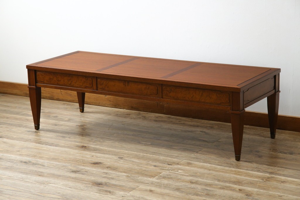 テーブル> センターテーブル・ローテーブル > 中古 DREXEL HERITAGE(ドレクセルヘリテイジ) Triune(トライユン) マホガニー材 クラシカルな佇まいのカクテルテーブル(センターテーブル、リビングテーブル、ローテーブル)(R-079539)