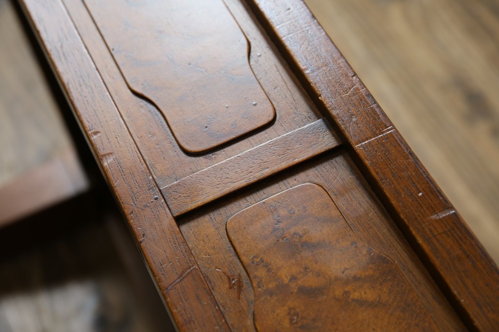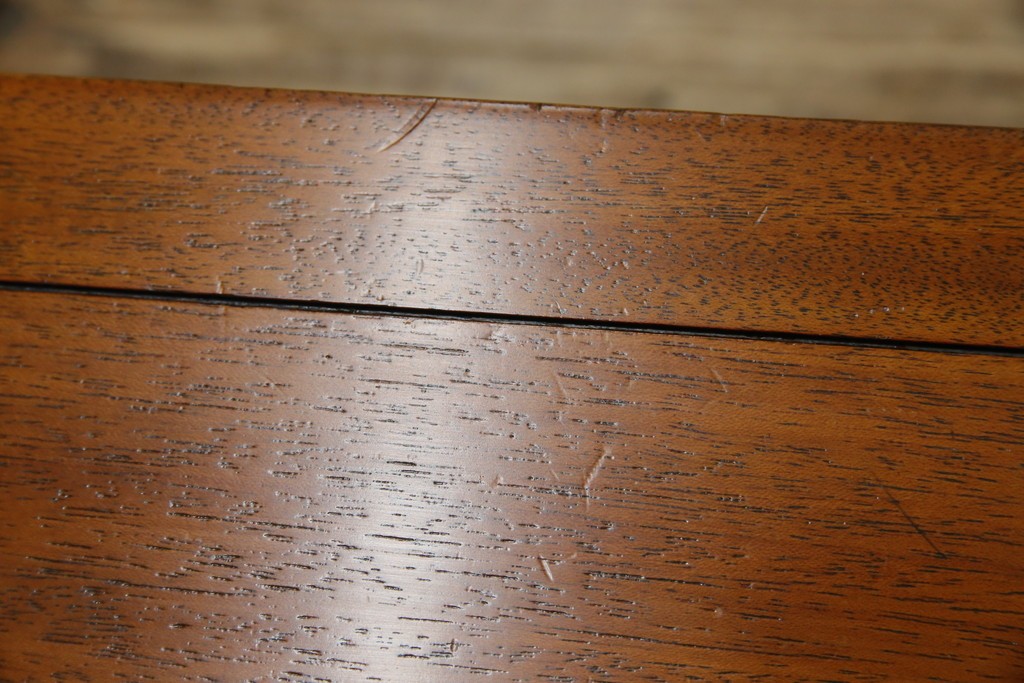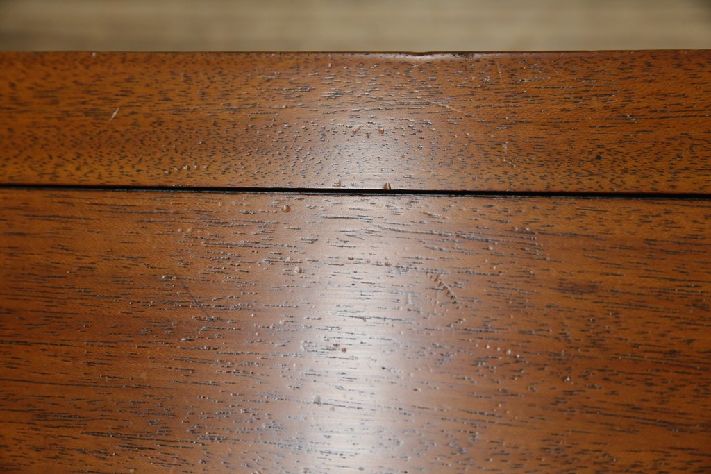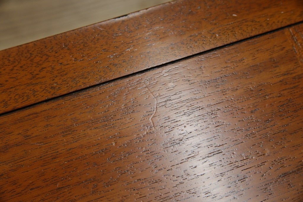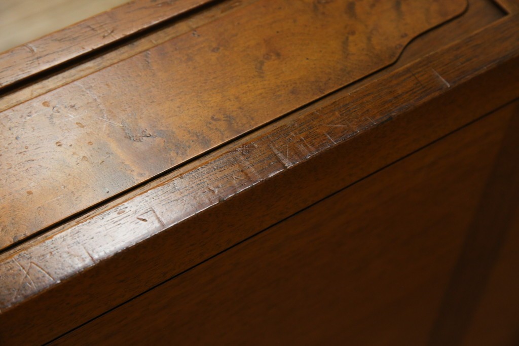・天板は当店でクリア塗装を施しております。小キズ等が目立ちにくく、耐水性と耐久性に優れたお手入れがしやすい仕上げです。