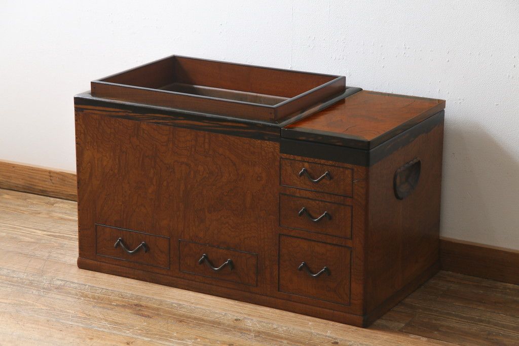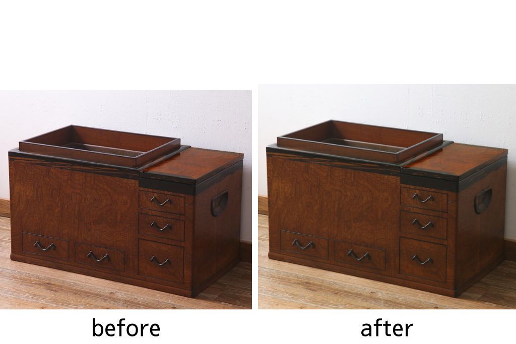 セミオーダー家具実績 > 江戸前長火鉢をリペア&カスタム!おとし(銅張り部分)の上に乗せるガラス天板を製作。(囲炉裏、木製火鉢)