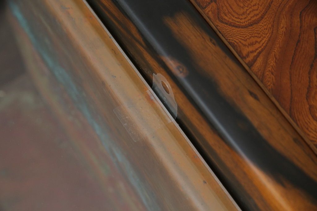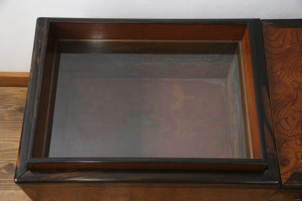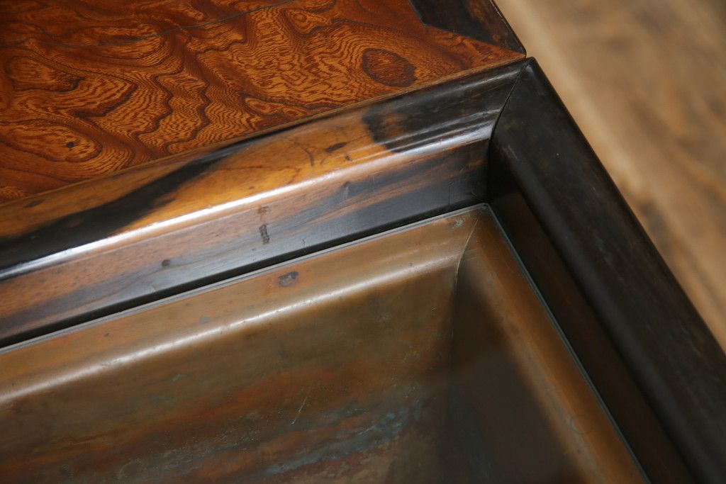 火鉢> 木製火鉢 > 江戸前長火鉢をリペア&カスタム!おとし(銅張り部分)の上に乗せるガラス天板を製作。(囲炉裏、木製火鉢)