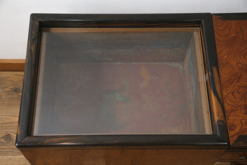 火鉢> 長火鉢 > 江戸前長火鉢をリペア&カスタム!おとし(銅張り部分)の上に乗せるガラス天板を製作。(囲炉裏、木製火鉢)