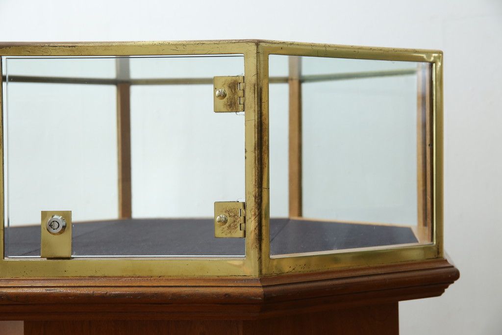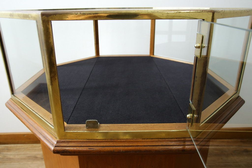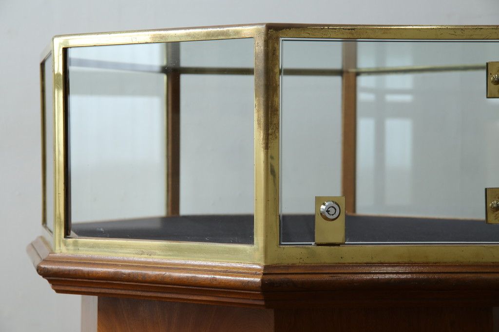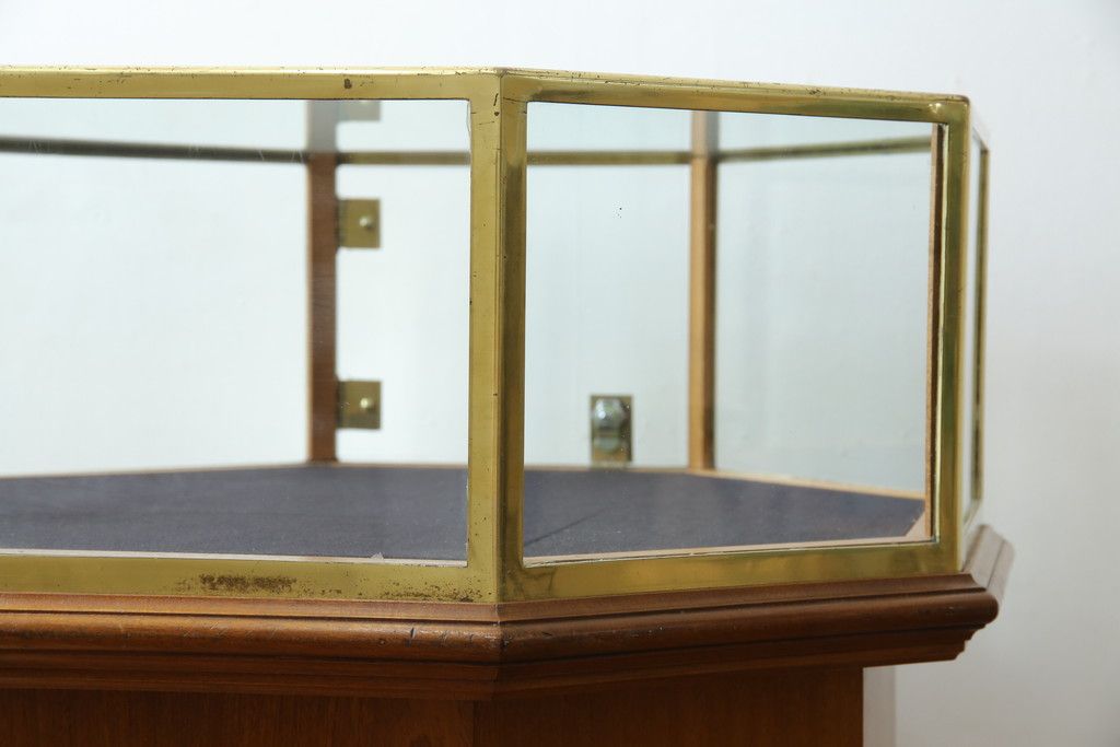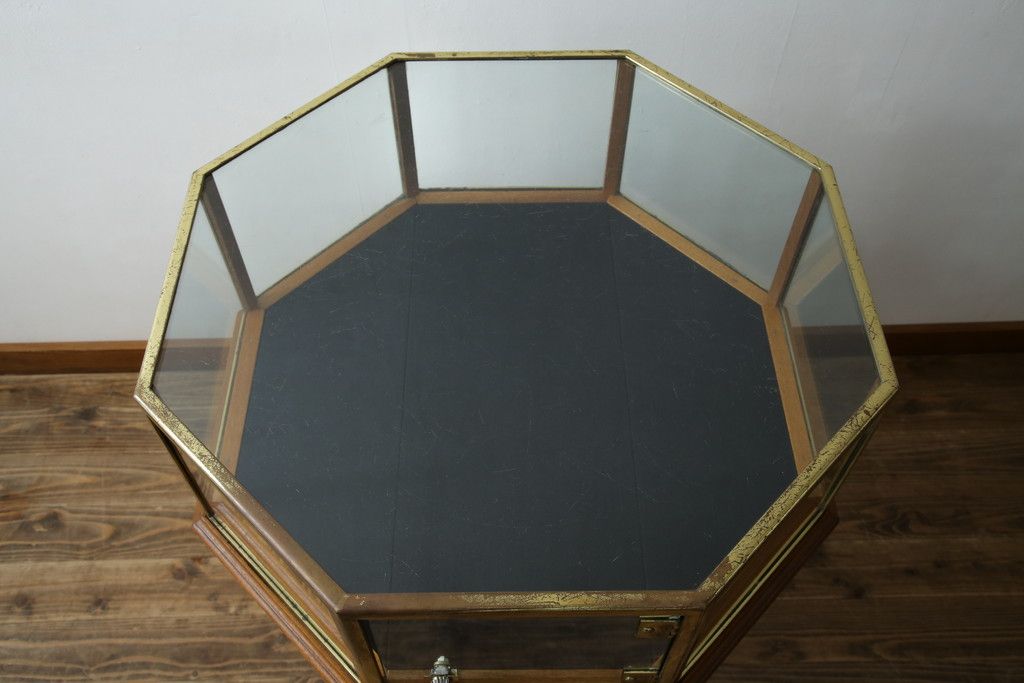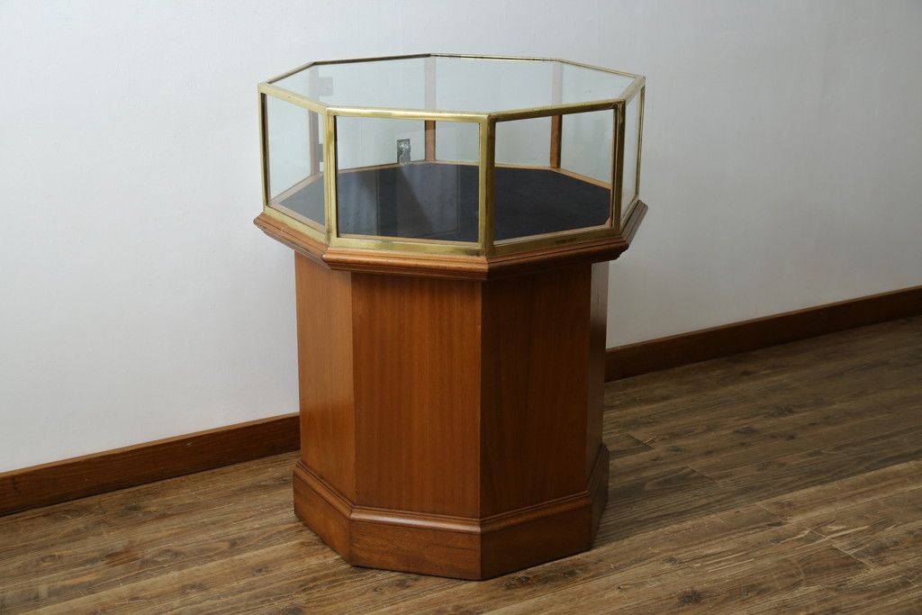店舗什器 > イギリスアンティーク マホガニー材 おしゃれな真鍮フレームのオクタゴンガラスケース(ショーケース、Gケース、ディスプレイケース、コレクションケース、八角形、飾り棚、陳列棚、店舗什器、英国)(R-079717)