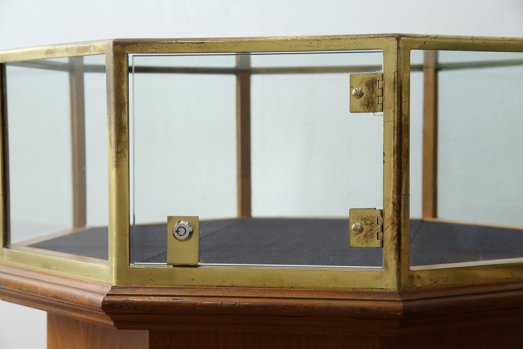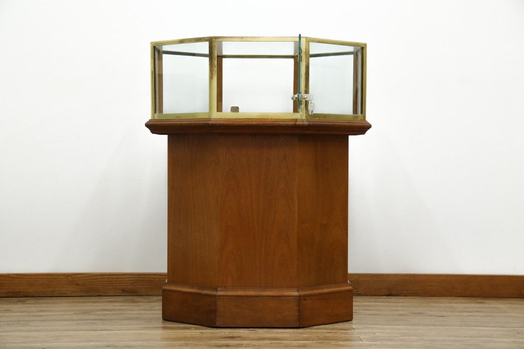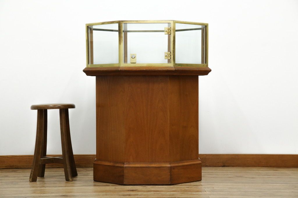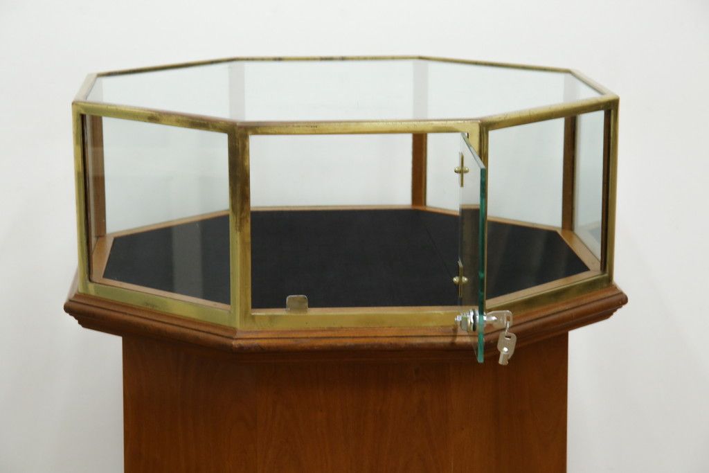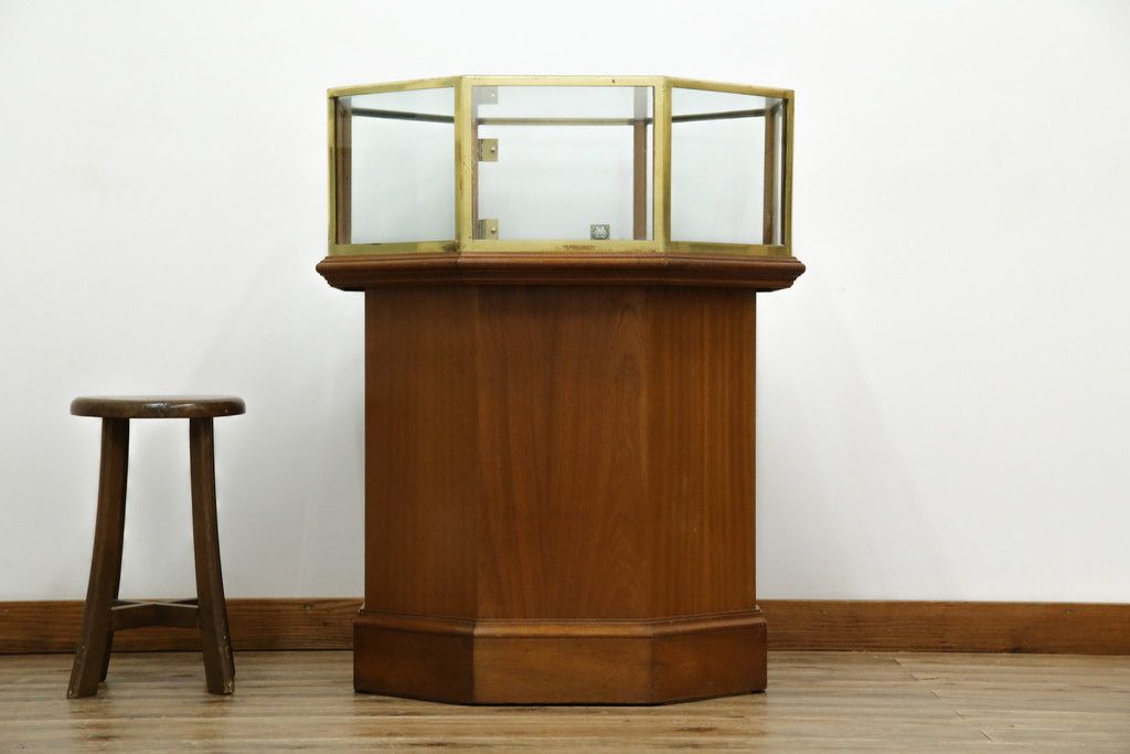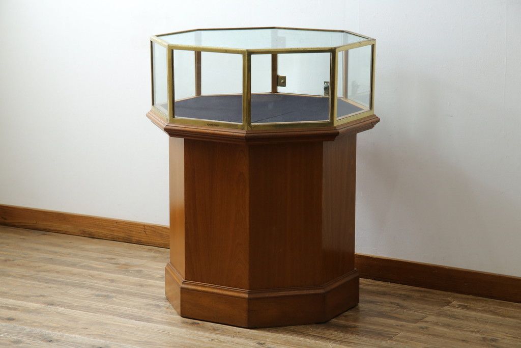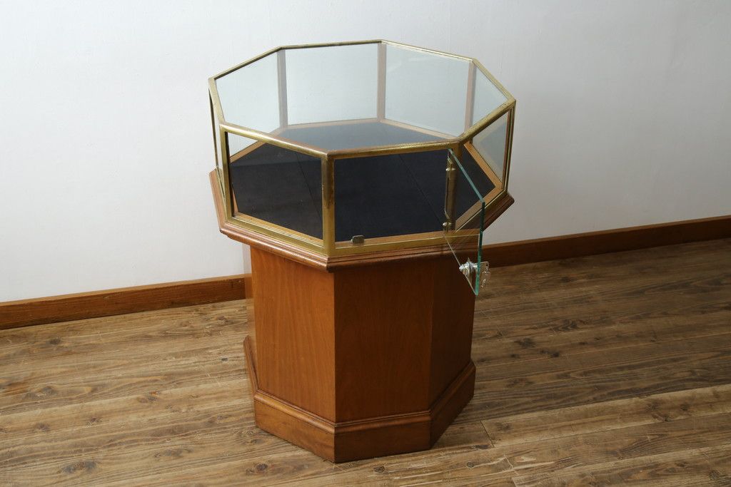 店舗什器 > イギリスアンティーク マホガニー材 おしゃれな真鍮フレームのオクタゴンガラスケース(ショーケース、Gケース、ディスプレイケース、コレクションケース、八角形、飾り棚、陳列棚、店舗什器、英国)(R-079717)