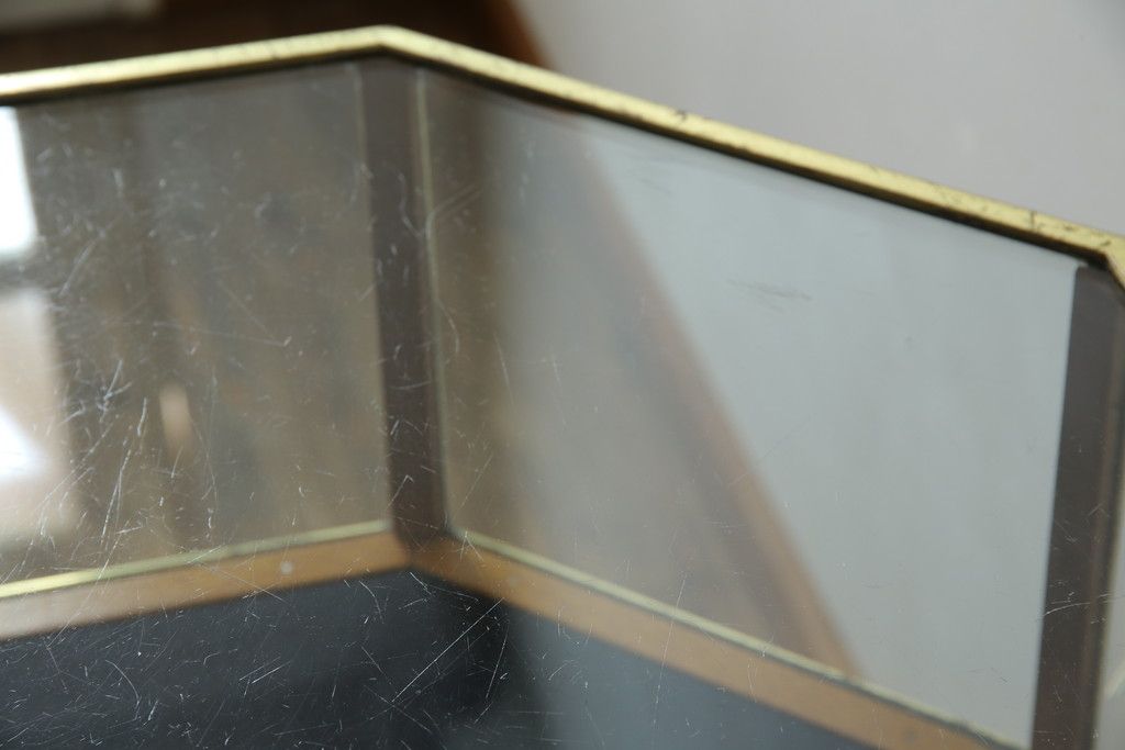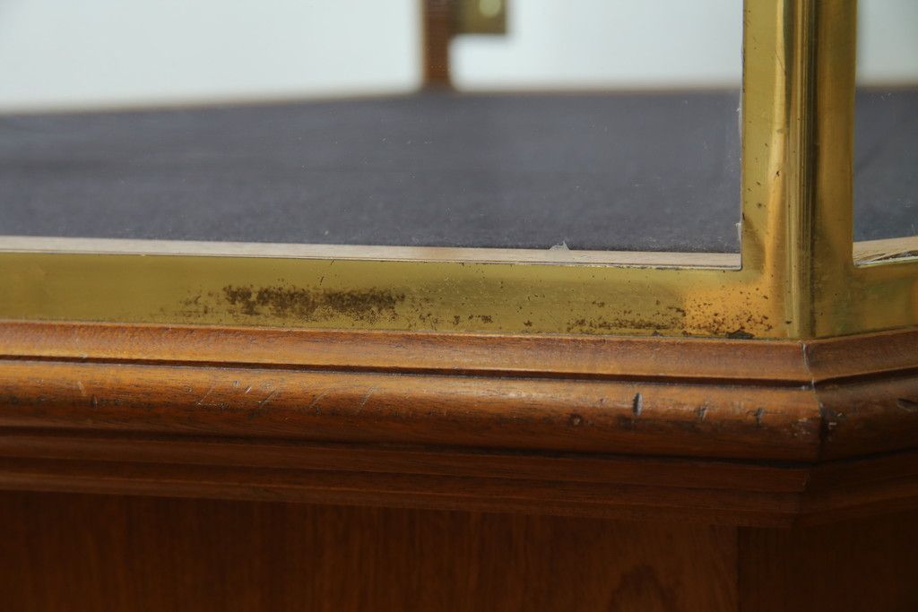ガラスケース・ショーケース > イギリスアンティーク マホガニー材 おしゃれな真鍮フレームのオクタゴンガラスケース(ショーケース、Gケース、ディスプレイケース、コレクションケース、八角形、飾り棚、陳列棚、店舗什器、英国)(R-079717)