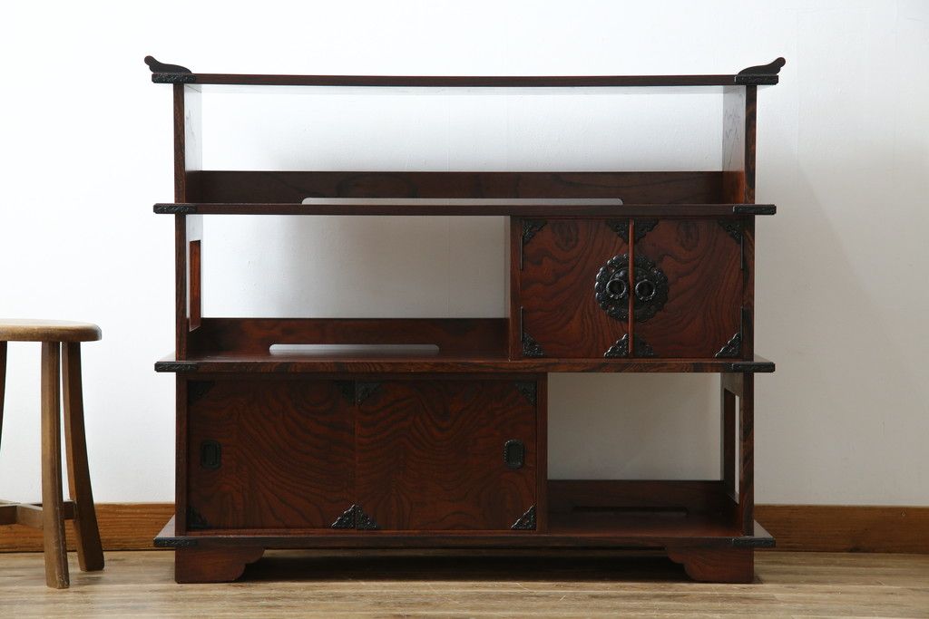 キャビネット・戸棚> サイドボード > 中古 岩谷堂箪笥 力強い杢目が上質な和を演出する北斗3号飾り棚(茶棚、収納棚、戸棚、サイドボード)(R-079753)