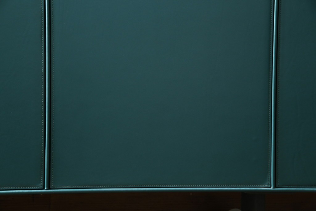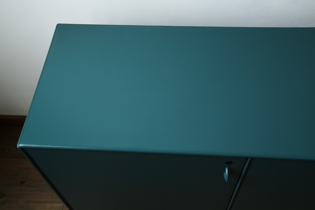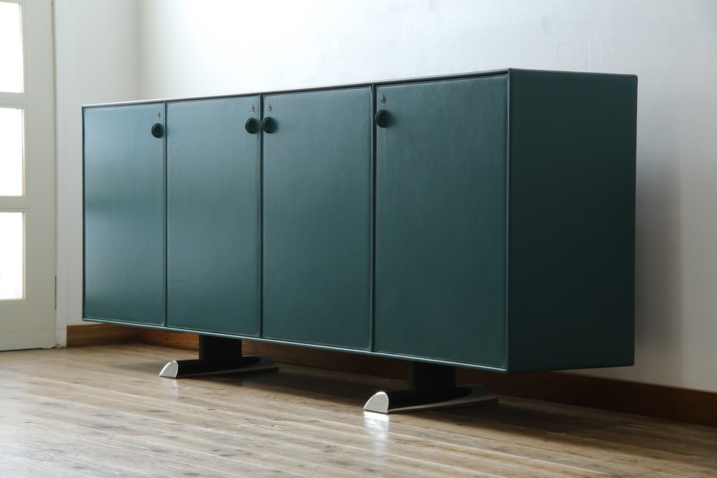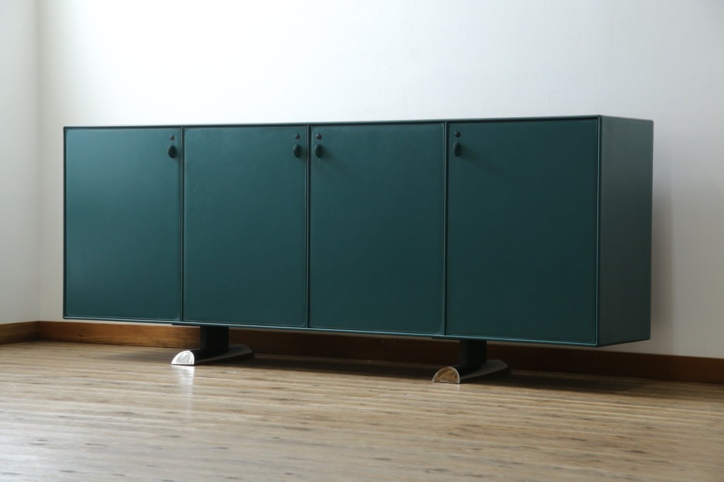 ラフジュ工房> キャビネット・戸棚 > 中古 美品 イタリア製 i4MARIANI(クアトロ・マリアーニ) Guido Faleschini(グイド・ファレスキーニ)デザイン DOLMEN(ドルメン) 本革(レザー)張りの独特の風合いが楽しめるおしゃれなサイドボード 定価約200万円 (R-079764)