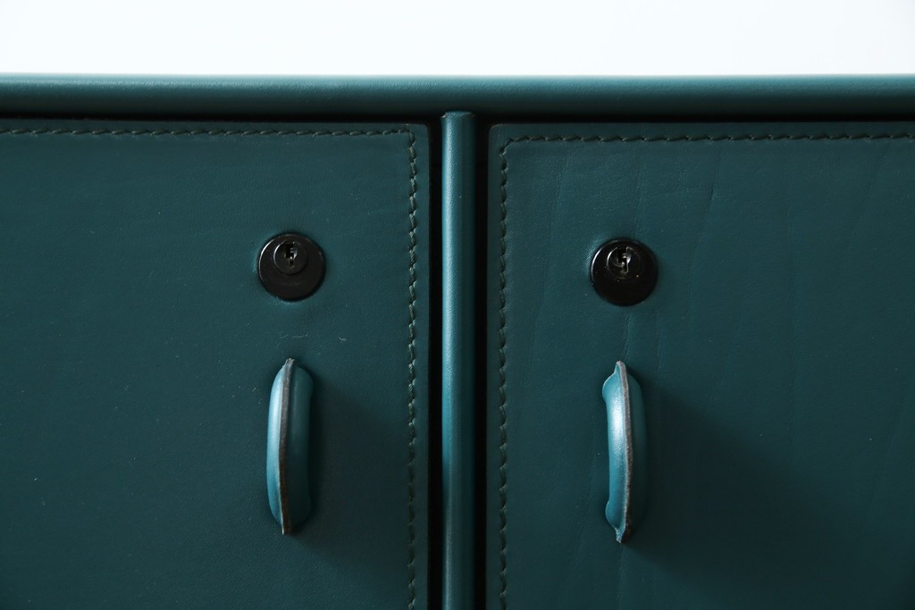 ラフジュ工房> キャビネット・戸棚> サイドキャビネット > 中古 美品 イタリア製 i4MARIANI(クアトロ・マリアーニ) Guido Faleschini(グイド・ファレスキーニ)デザイン DOLMEN(ドルメン) 本革(レザー)張りの独特の風合いが楽しめるおしゃれなサイドボード 定価約200万円 (R-079764)