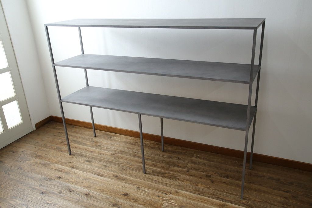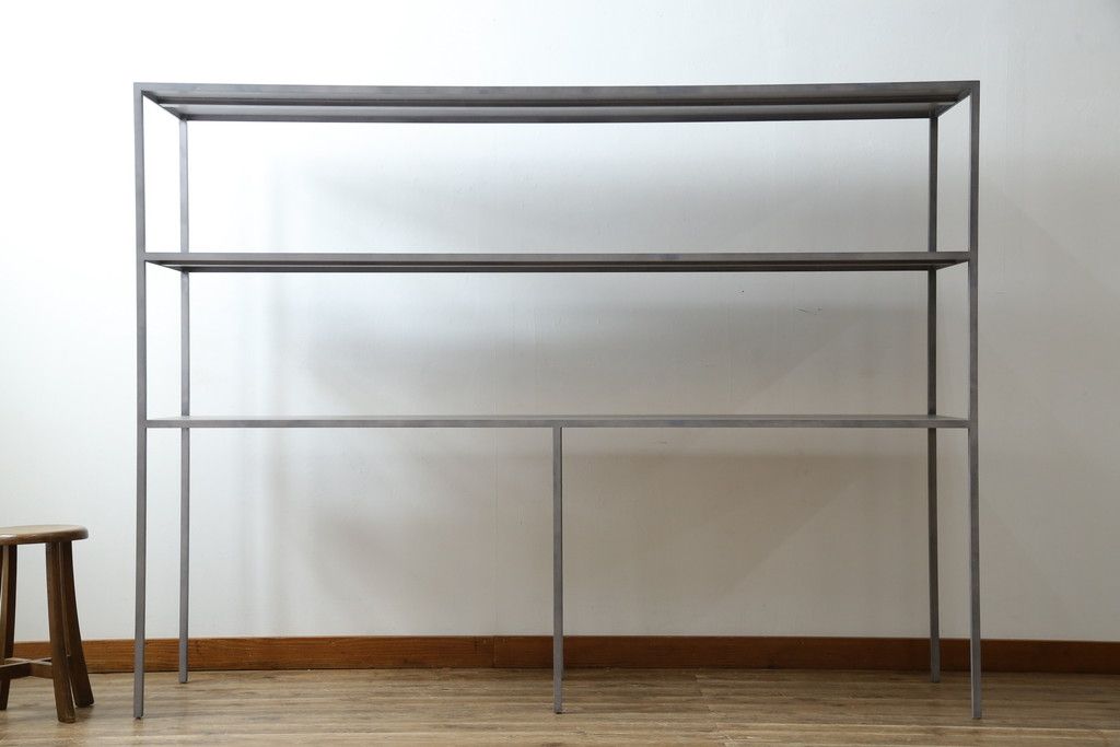 中古 ヨーロッパ ブランド家具 特注 オーダー品!! 美しいシルエットのアイアンラック(オープンラック、シェルフ、店舗什器、飾り棚、陳列棚)(製作費約30万円)(R-079792)