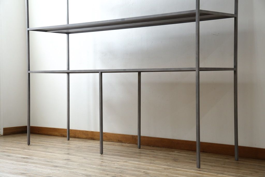 オープンラック・シェルフ > 中古 ヨーロッパ ブランド家具 特注 オーダー品!! 美しいシルエットのアイアンラック(オープンラック、シェルフ、店舗什器、飾り棚、陳列棚)(製作費約30万円)(R-079792)
